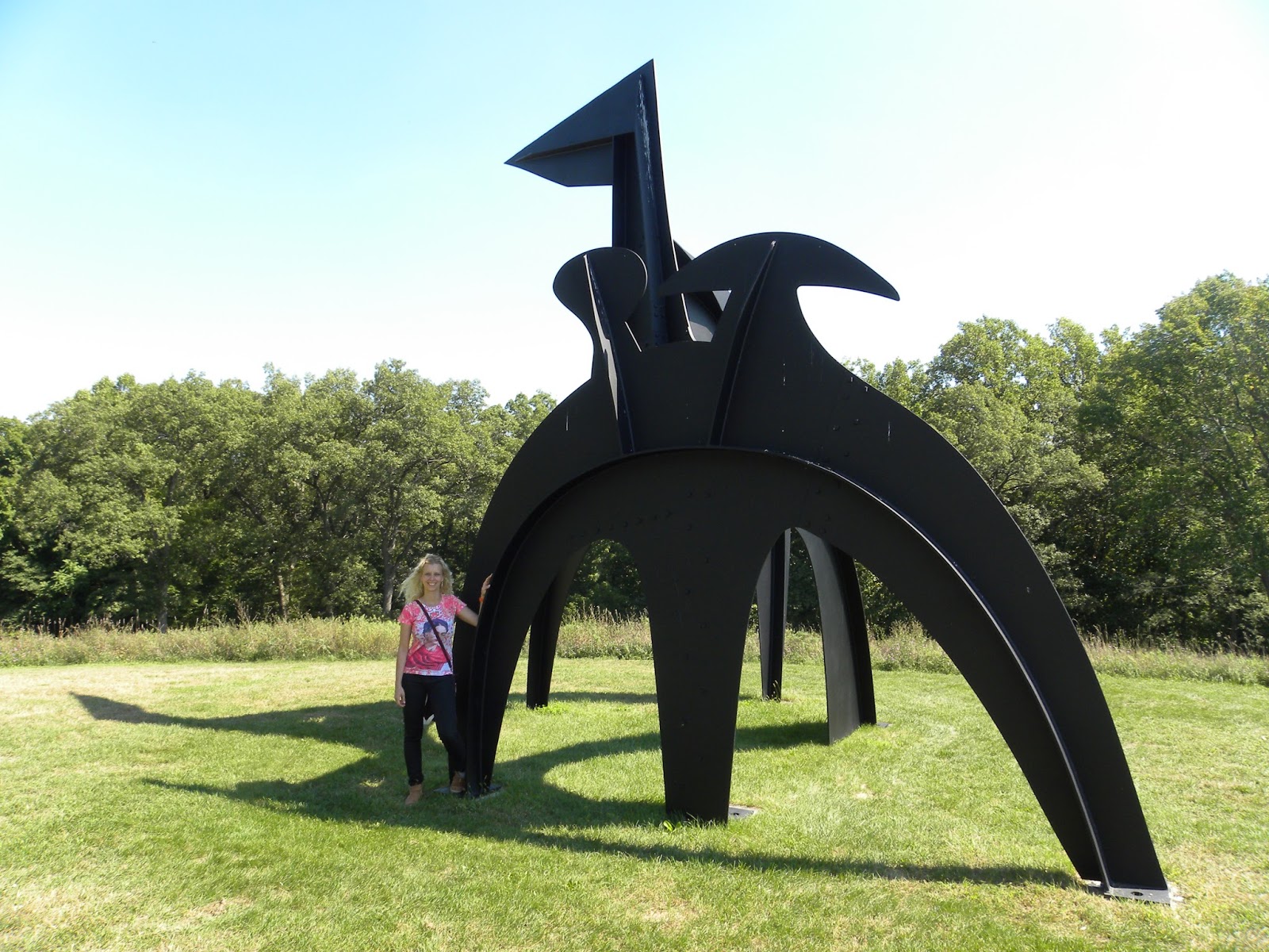 O parque de esculturas é impressionante e merecia um dia inteiro dedicado a ele. Tivemos pouco tempo e não conseguimos ver todas as esculturas. Faltando poucos minutos para tomarmos o ônibus, queríamos tirar foto com o trabalho do Roy Lichtenstein de qualquer jeito. Carol, sem qualquer timidez, pediu a um funcionário que passava, com um carrinho que só cabiam 2 pessoas, se poderia nos levar. Ele pensou e disse que caberia apenas uma pessoa, mas ela insistiu que apertaríamos e dava, pois viemos de um lugar tão distante apenas para apreciar a obra. O rapaz era um doce e muito bonito, típico homem do interior.