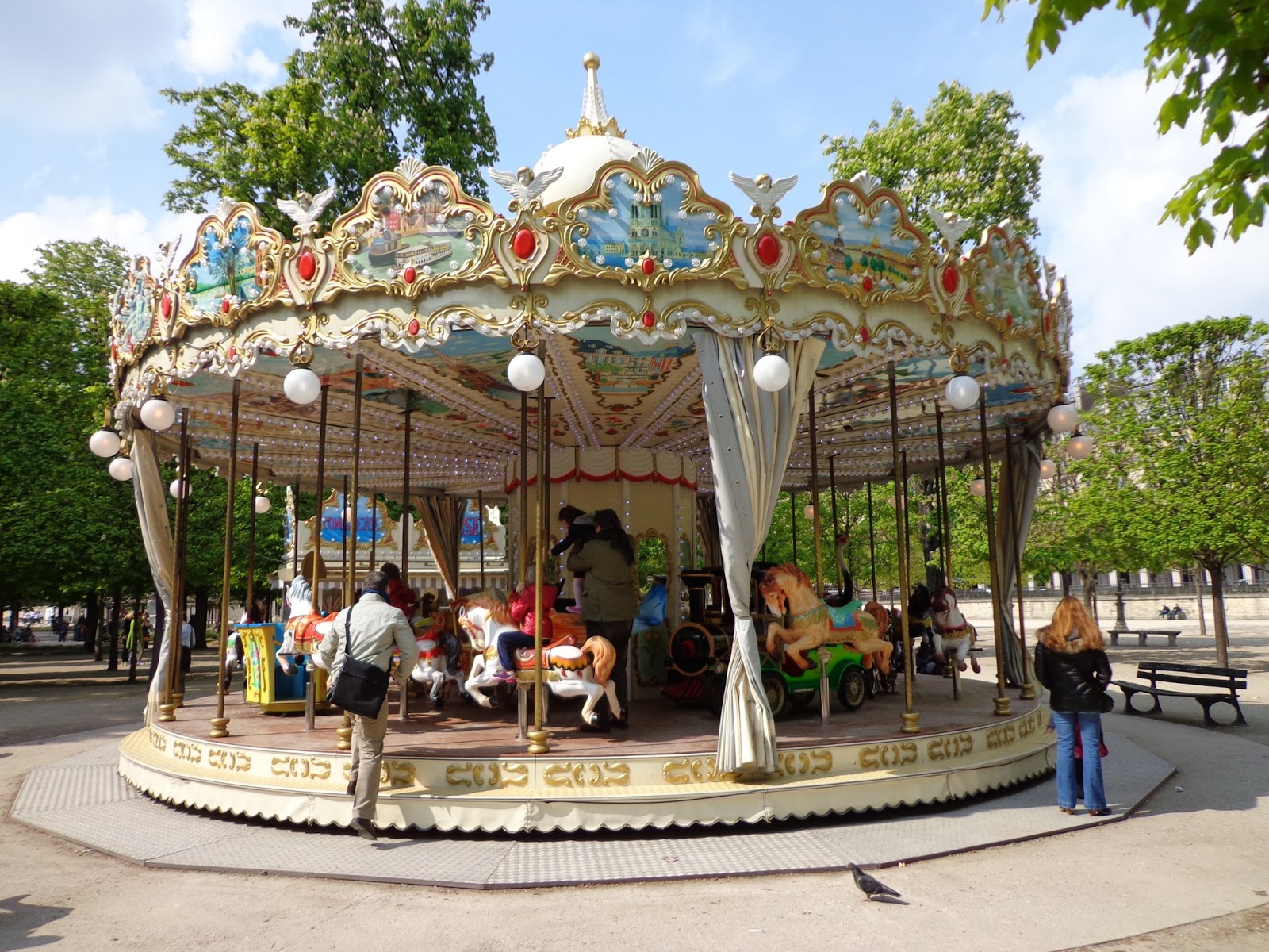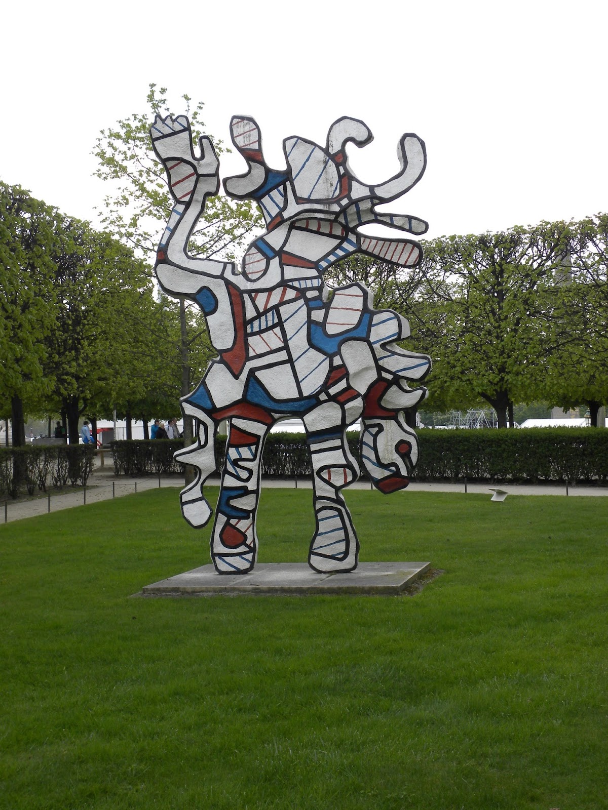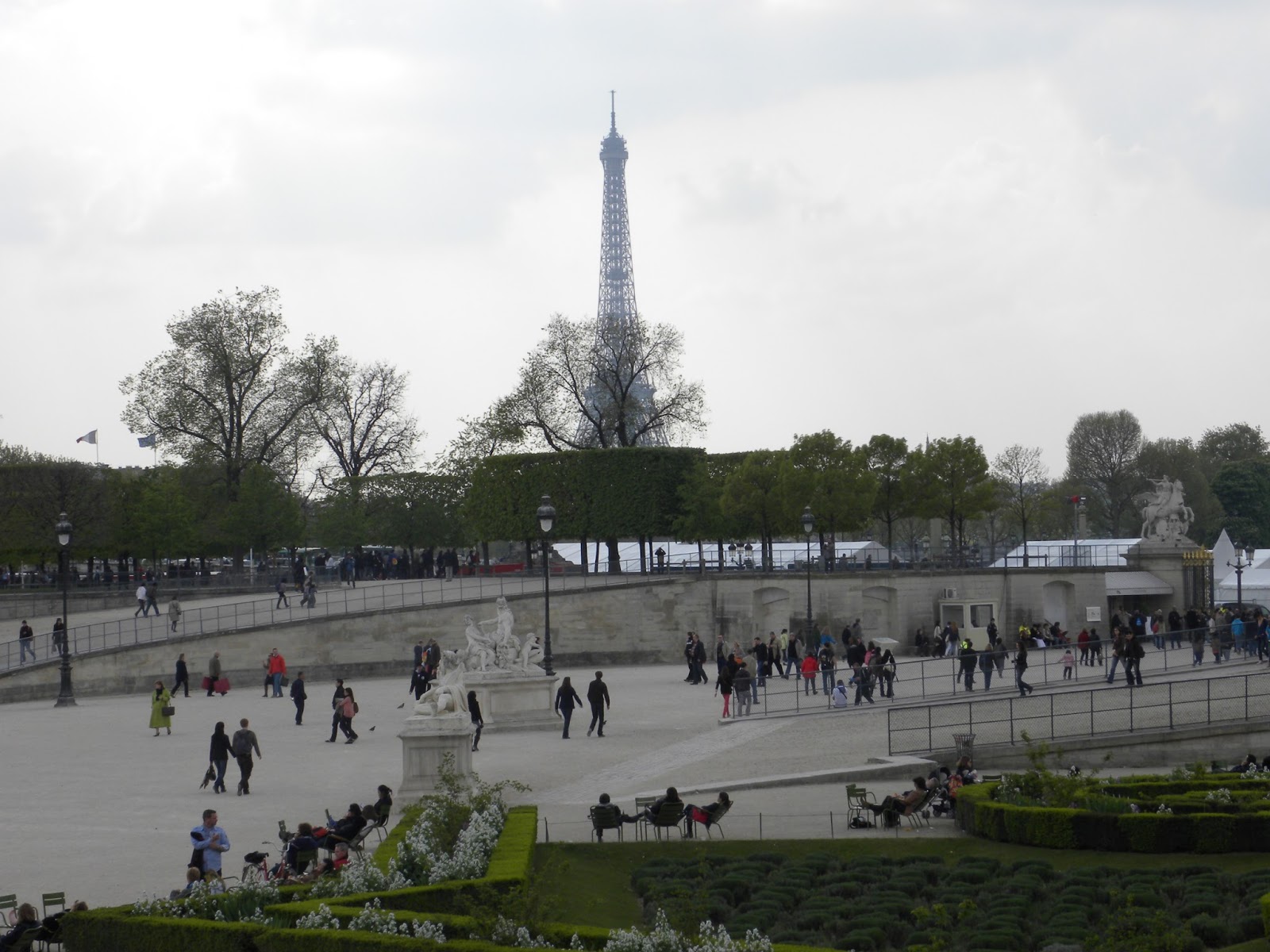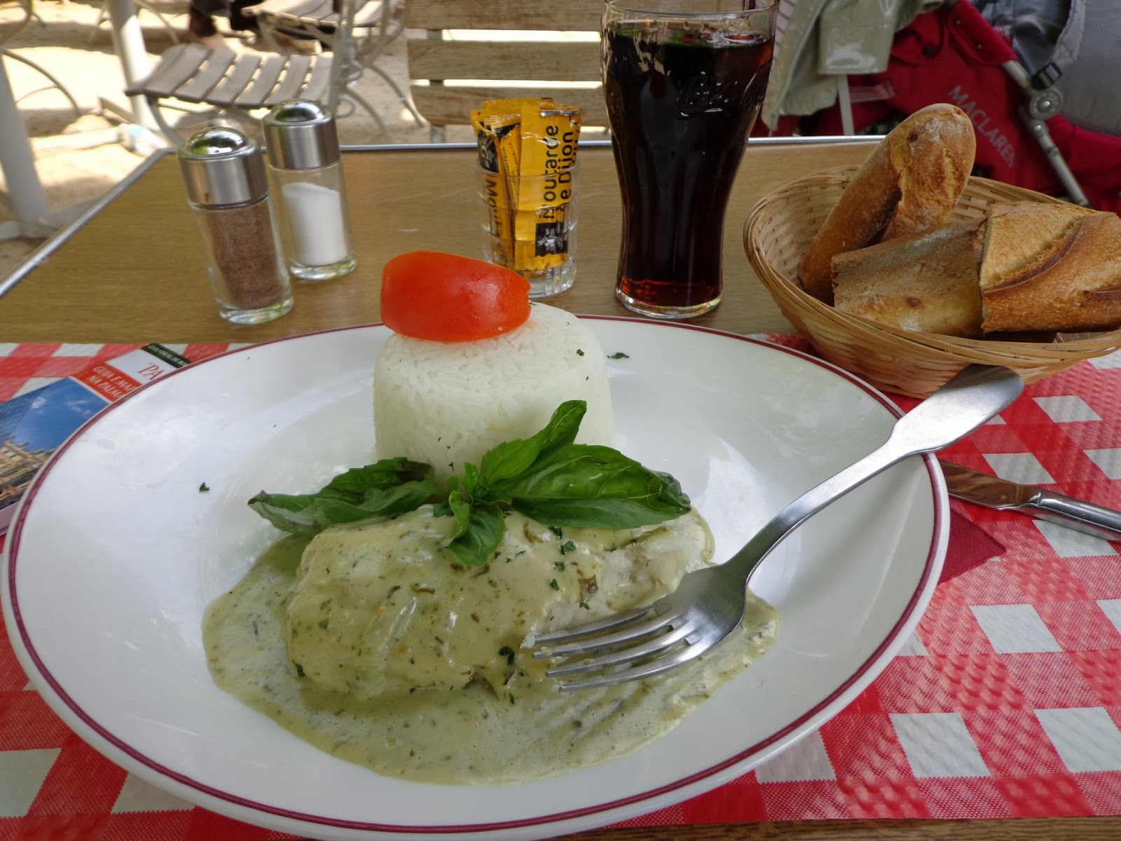 Já por volta das 16 horas, estava faminta e tinha que procurar um lugar para almoçar. Segui caminhando pelo Jardin des Tuileries. Encontrei um restaurante no próprio jardim e num quase-desmaio solicitei um plat du jour, que era peixe com ervas e arroz. Estava delicioso. Custou 17 euros com o refrigerante. O jardim é lindo e aproveitei para apreciar as inúmeras esculturas públicas espalhadas pelo local.