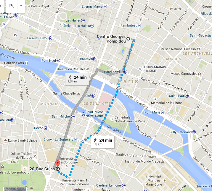 | Caminho do Centre Pompidou até o hotel. |