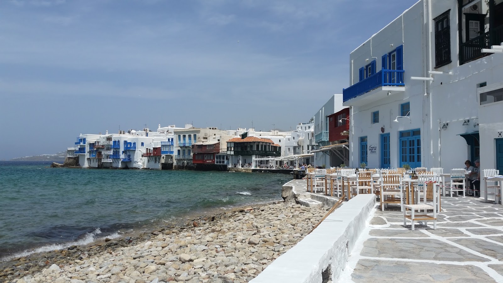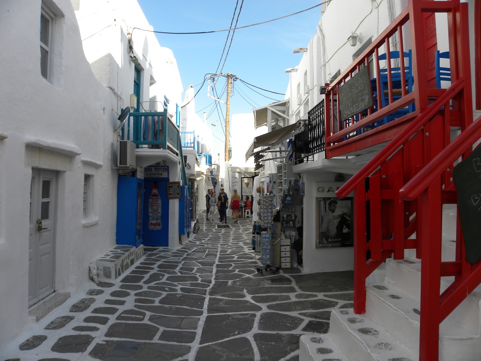 Mykonos pertence ao conjunto de ilhas Cíclades, assim como Santorini. É uma ilha famosa por ser festiva e receber muito bem os LGBT, já que existem vários bares destinados ao público gay, seja no centro ou nas praias Paradise e Super Paradise. Disseram que em Elia beach a metade da praia é destinada aos praticantes do nudismo e a separação é feita com uma bandeira arco-íris.