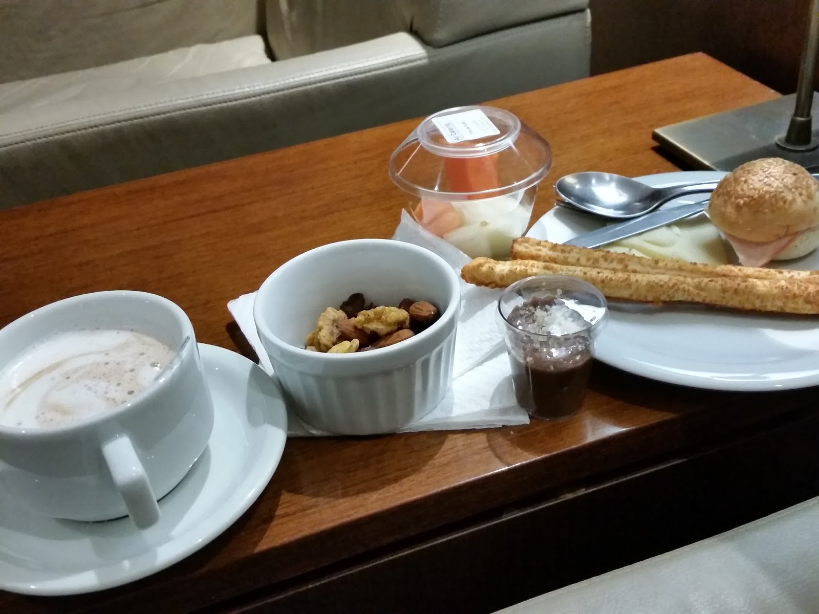 A sala atual é incrível! Uma das melhores que já estive. Cheguei no aeroporto no terminal 2, vindo do Rio num voo da Gol. Por sorte, minha mala seguiria até o destino final. Caminhei até o terminal 3, passei pela imigração, que está muito mais rápida (para quem tem passaporte com chip, basta escanear o passaporte na máquina, que abrirá a catraca, depois olhar para câmera, que a segunda porta se abrirá). Após o controle de passaporte, segui a placa que indicava a direção das salas vip e subi a escada rolante. Fica do lado esquerdo atrás da sala da Latam, no final do corredor.
