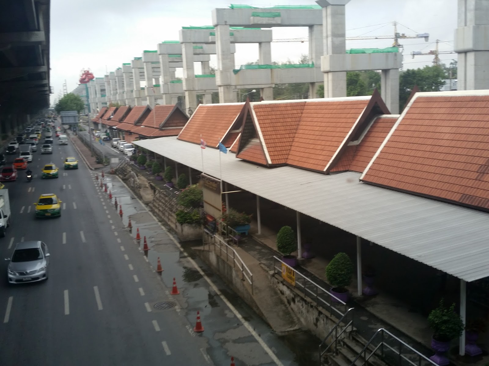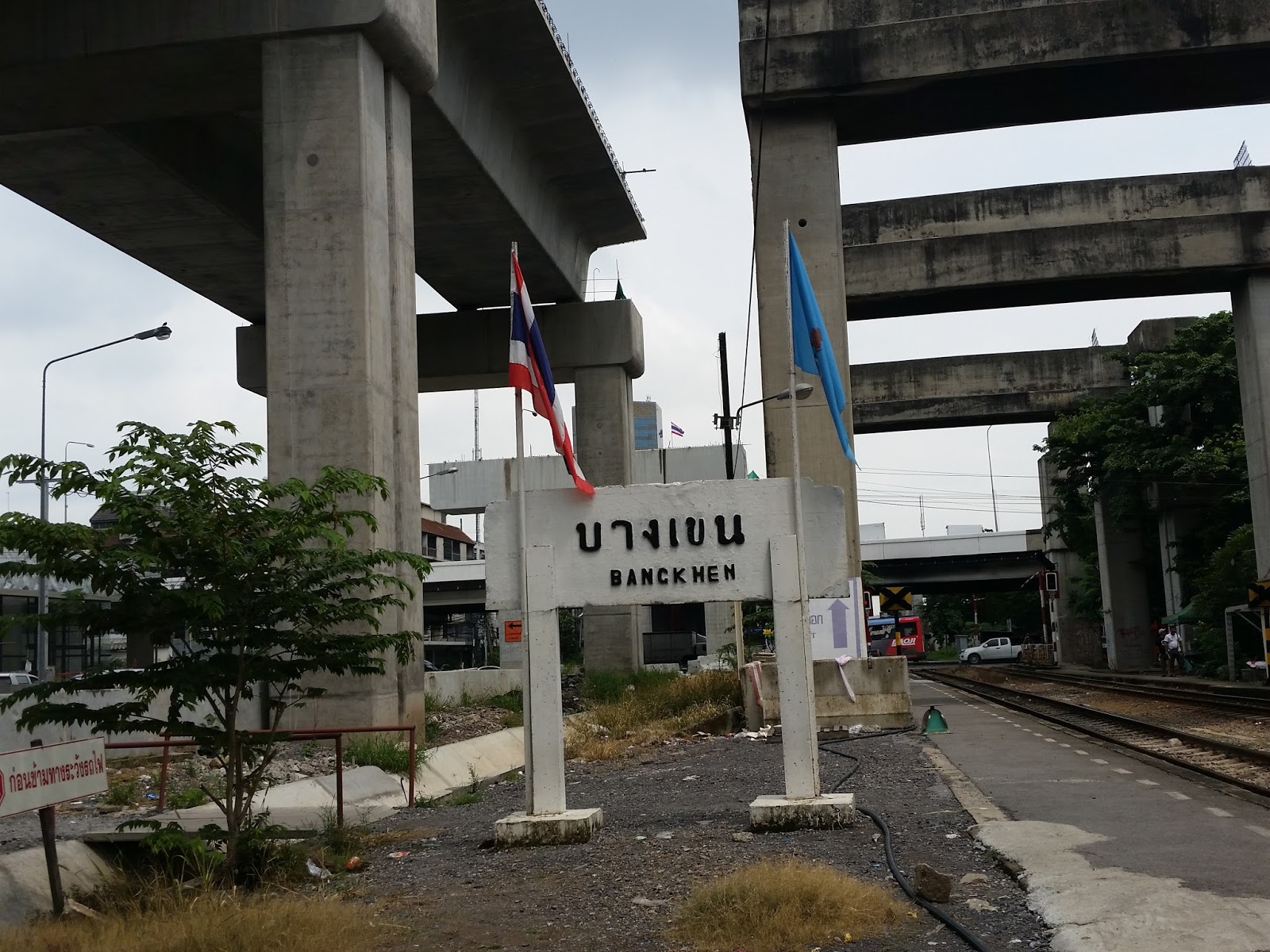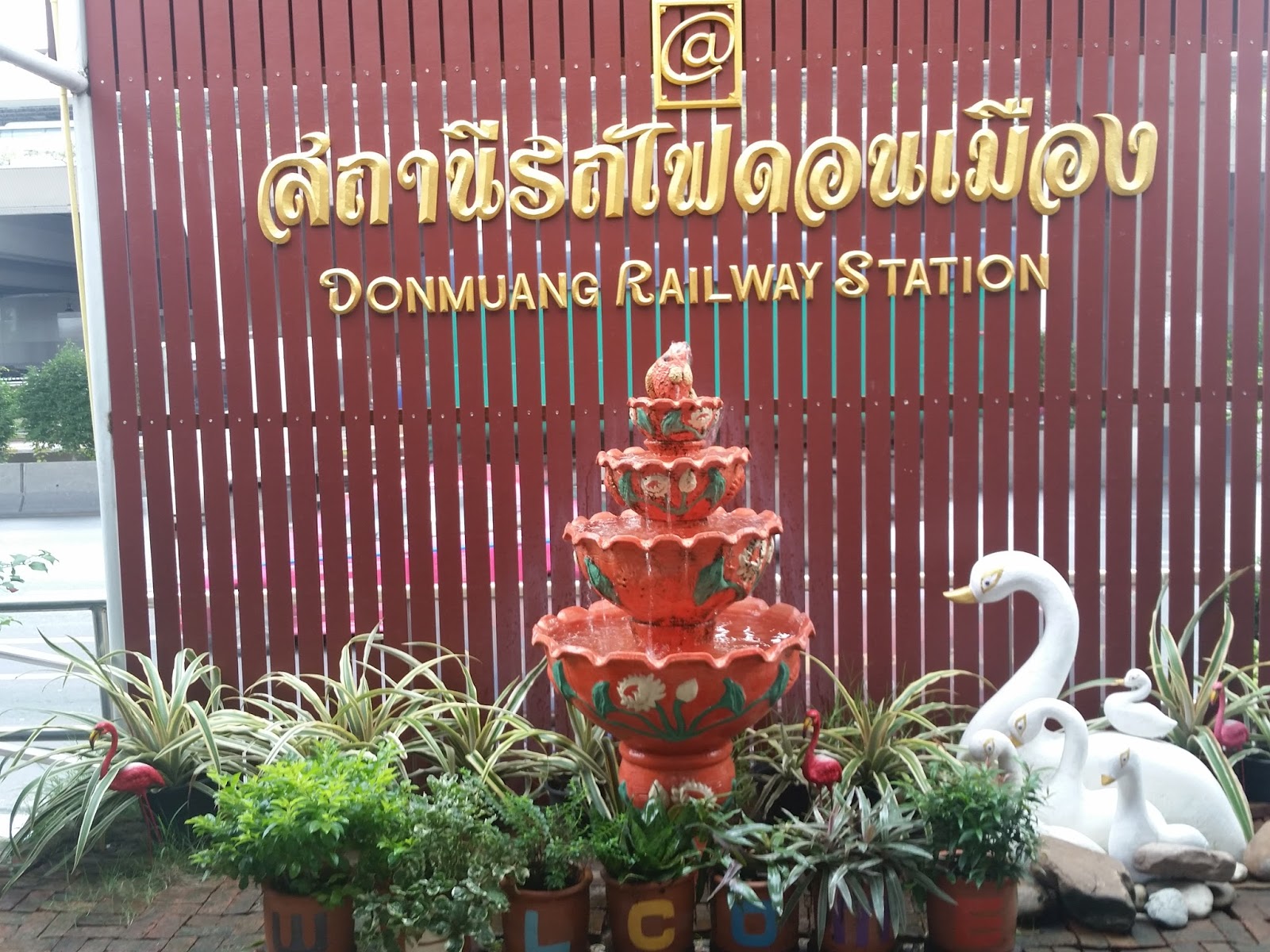 Exatamente na frente do aeroporto Don Muang tem a estação de trem Don Muang! Tanto no embarque quanto no desembarque, basta procurar o elevador com a propaganda do hotel “Amari”. No segundo andar tem uma passarela que dá acesso à estação de trem. Ali passa o trem vindo do subúrbio mesmo, mas também os trens de viagem confortáveis, que usam para ir a Chiang Mai, por exemplo. Peguei o trem popular por 2 baht para ir ao Moca (Museu de Arte Contemporânea), desci na estação Bang Khen, quando fiquei hospedada no hotel do aeroporto, entre um voo e outro.