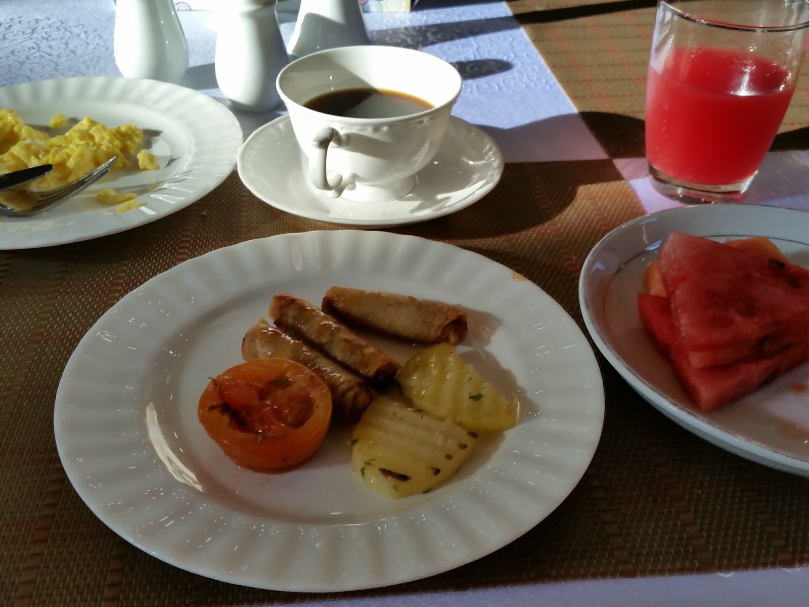 Nos post anterior contei sobre o longo caminho que percorri para chegar em Bagan. No dia seguinte, levantei às 7h, tomei meu banho e fui para apreciar o café da manhã. Escolhi o hotel pela localização, não exatamente pelos elogios na avaliação e não esperava um café da manhã tão bom. Por incrível que pareça, tinha pães e todos feitos na propriedade. A responsável pelo café da manhã estava sempre sorrindo e interagia, queria saber se eu tinha gostado de cada acepipe servido. Essa senhora foi uma pessoa que me emocionou naquele país em decorrência da sua dedicação e simpatia. Havia duas mesas, uma com comidas ocidentais e outra com as preferências orientais, pois costumam comer macarrão, arroz, frituras em geral.