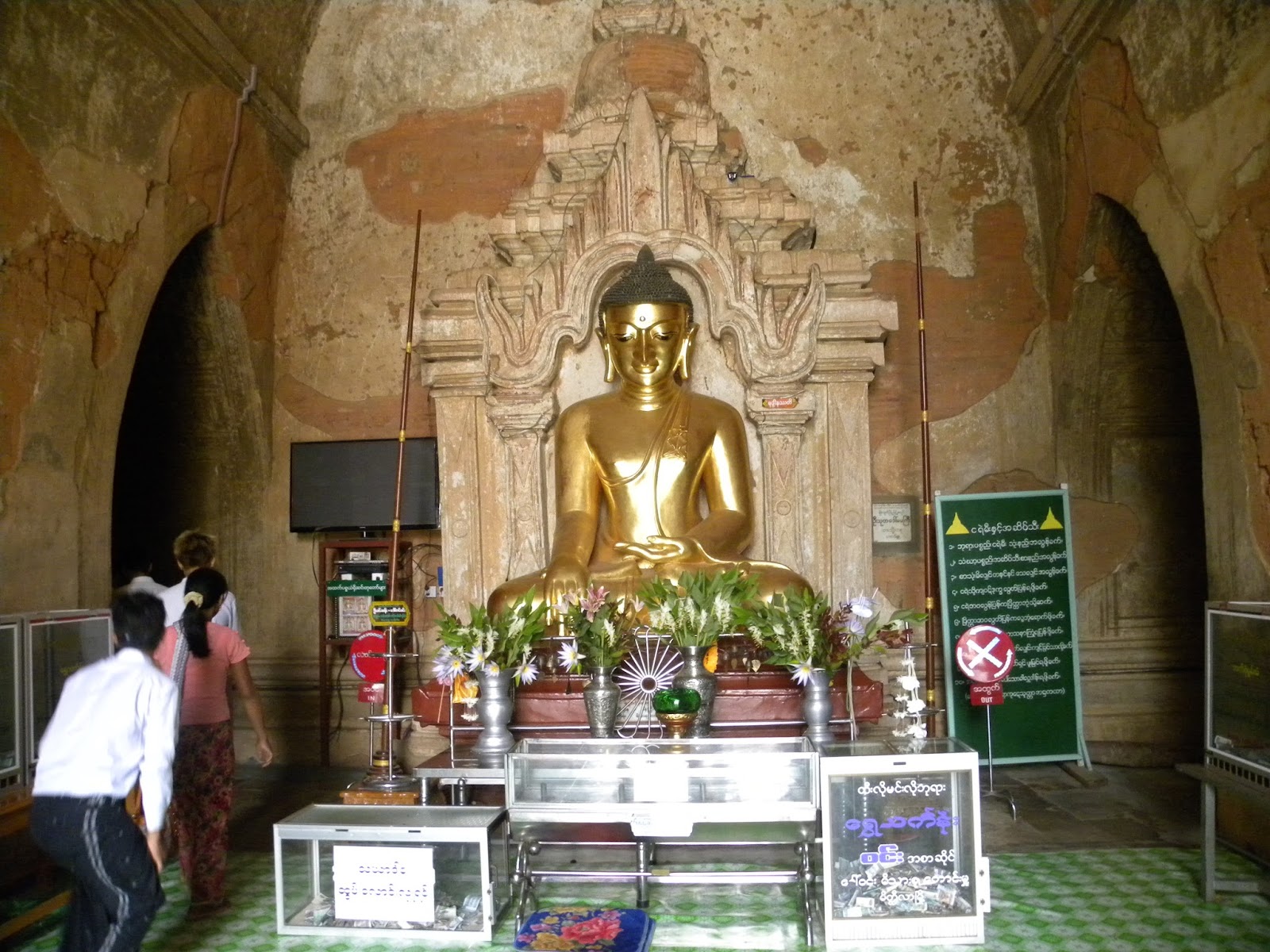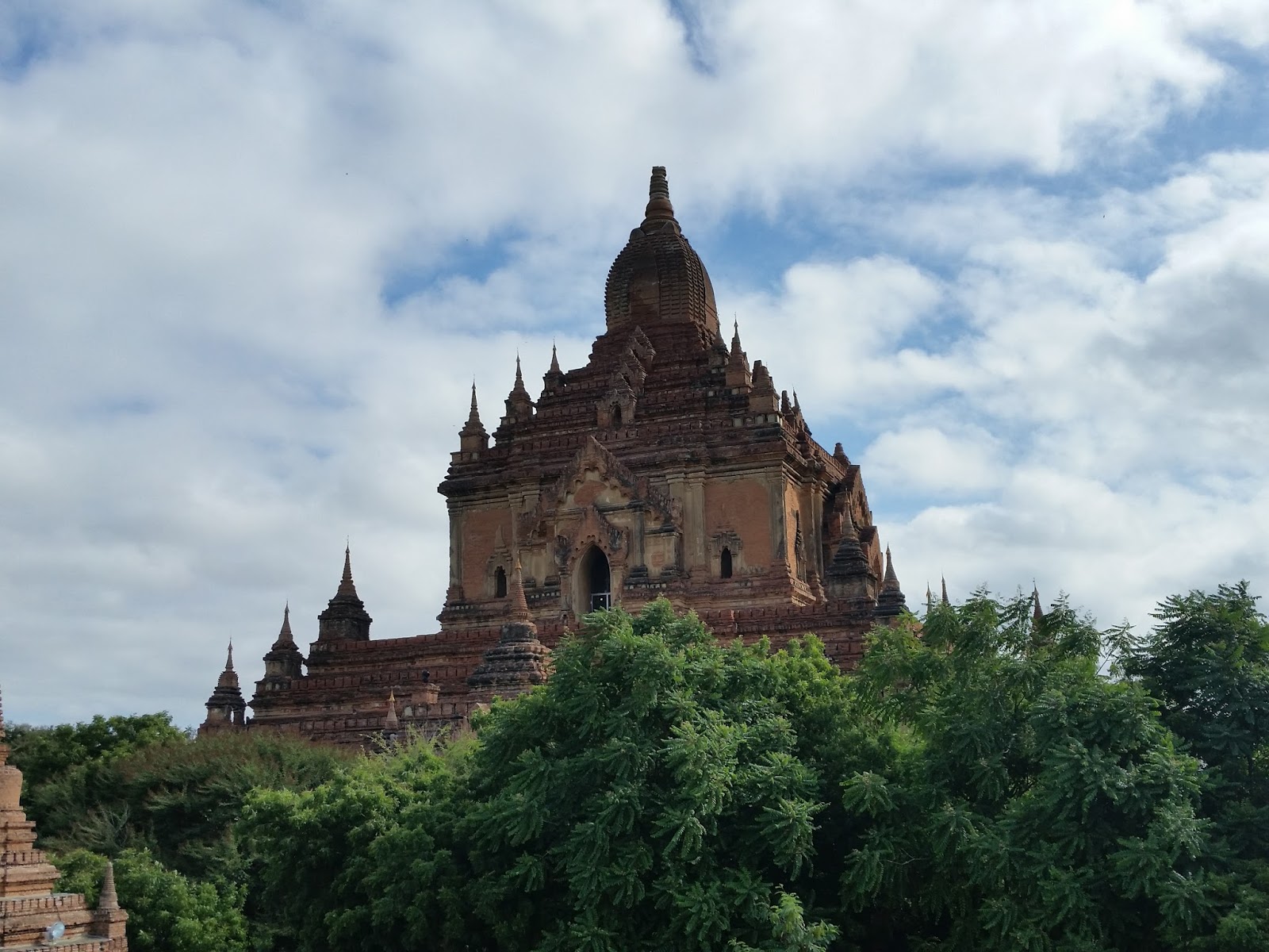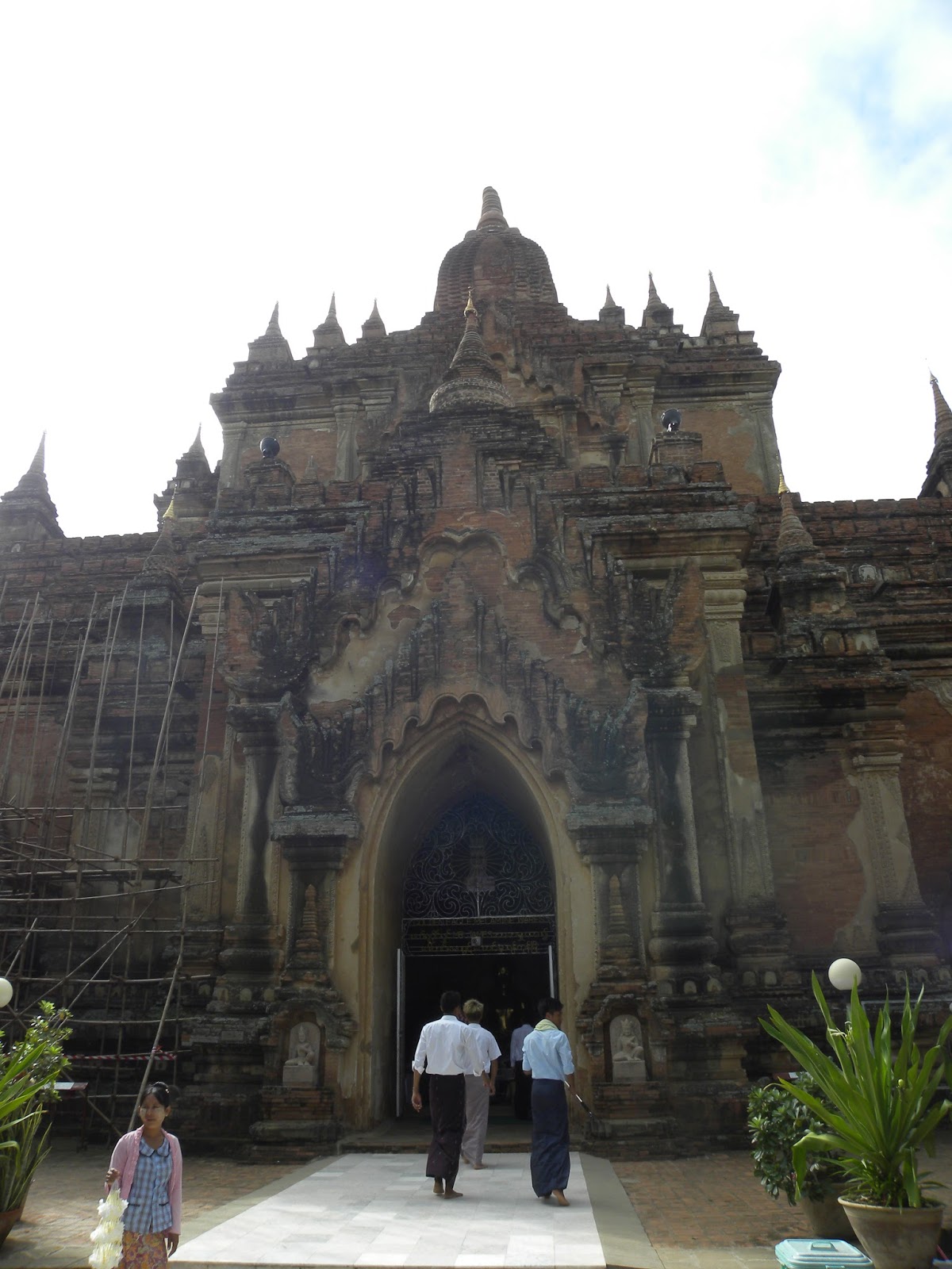 O primeiro templo que conheci foi o “Hti-lo-min-lo“ – o último desse estilo a ser construído na cidade por volta de 1208. O nome significa “bênçãos dos três mundos”. Fica localizado entre Old Bagan e Nyaung-U. Tem 46 metros de altura e dois andares. Encontramos 4 Budas nos andares superiores e inferiores. Existem vestígios de murais e fragmentos de esculturas.