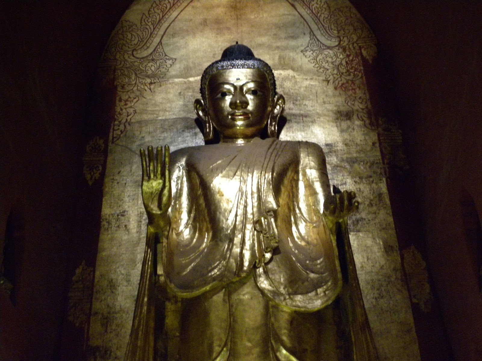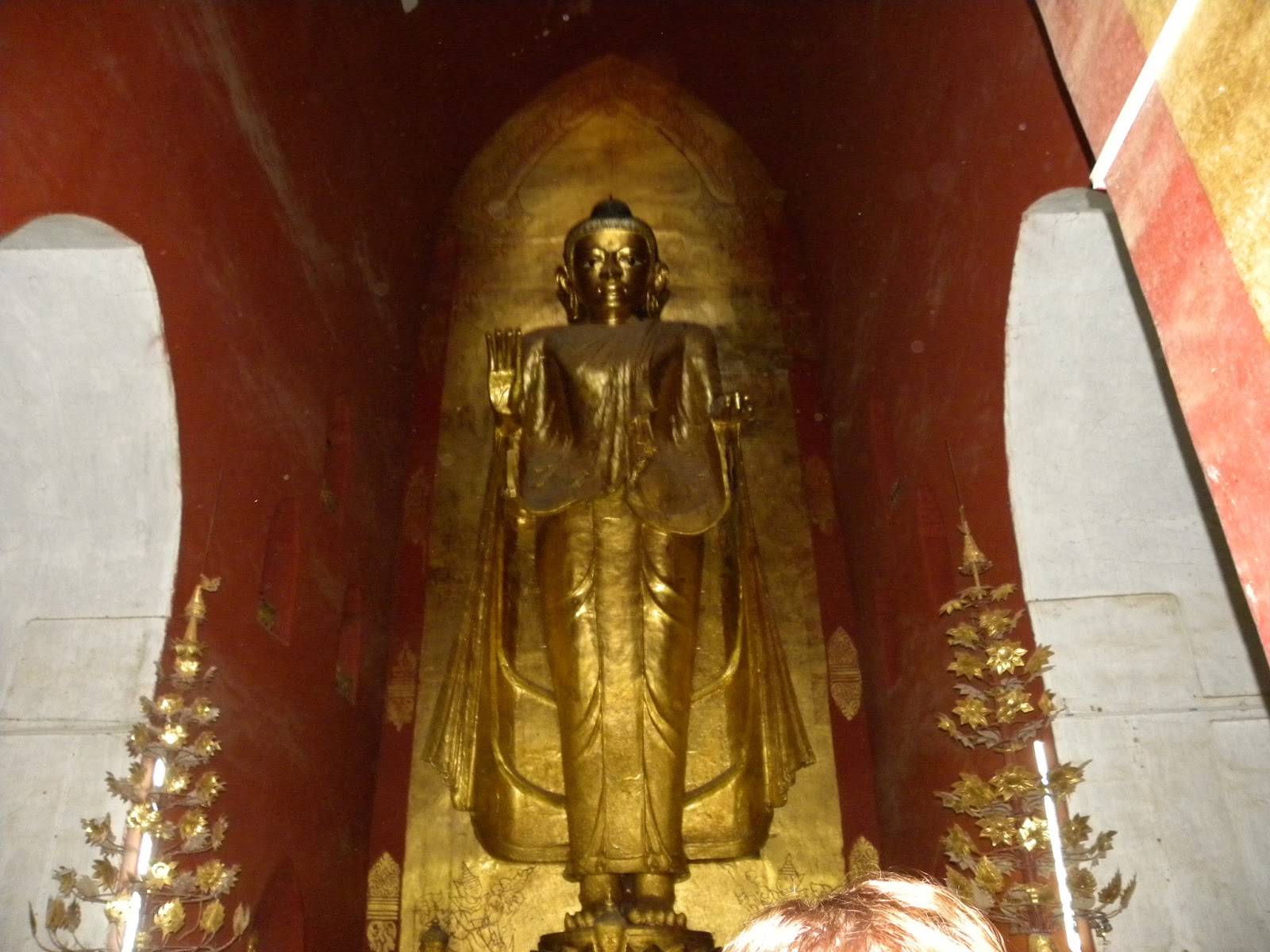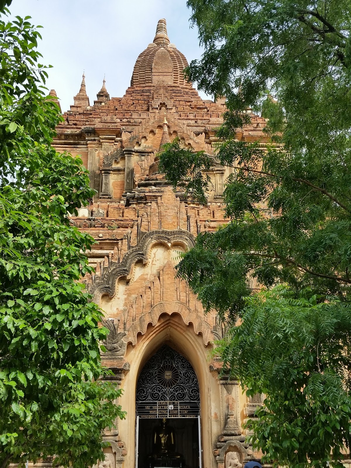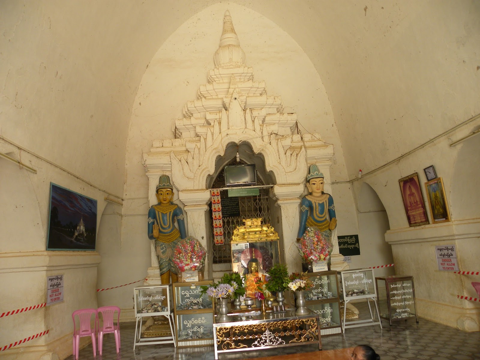 O primeiro templo que conheci foi o “Hti-lo-min-lo“ – o último desse estilo a ser construído na cidade por volta de 1208. O nome significa “bênçãos dos três mundos”. Fica localizado entre Old Bagan e Nyaung-U. Tem 46 metros de altura e dois andares. Encontramos 4 Budas nos andares superiores e inferiores. Existem vestígios de murais e fragmentos de esculturas.