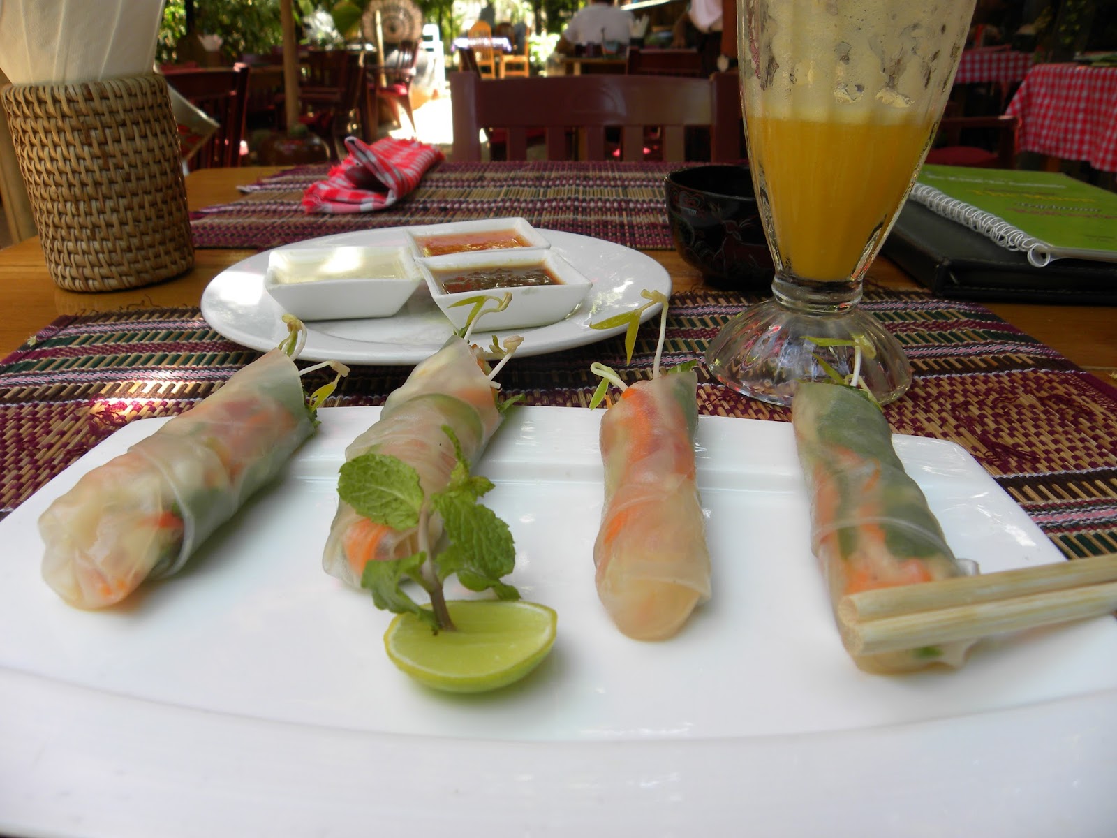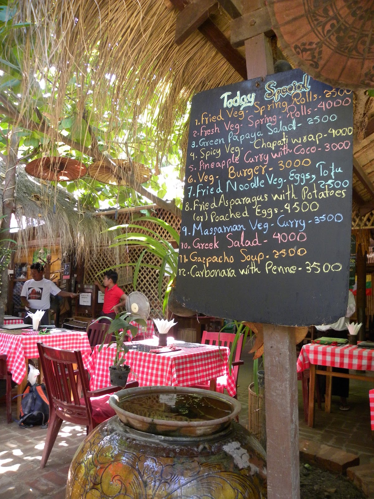 No caminho de Old Bagan, vi a placa que indicava o restaurante com a melhor avaliação no tripadvisor: The moon, be kind to animals. Resolvi seguir uma dieta vegetariana durante a viagem. O ambiente era simples, mas muito charmoso. O chão é de terra batida, tem umas sombrinhas típicas da região junto com as árvores. O menu é internacional, mas sempre vegetariano. Os preços eram ótimos. Solicitei um “Fresh spring roll” (existe o rolinho primavera fresco, feito com folha de arroz, além do mais conhecido, que é feito com uma massa de trigo e frito) com um suco de laranja. O fresh spring roll (muito comum no Vietnã) vinha com 3 molhos deliciosos: coco, tamarindo e pimenta. Após a refeição, me ofereceram uma deliciosa bala de tamarindo. Na mesa ao lado tinha um brasileiro, só soube após um guia local perguntar, pois tinha traços orientais (era filho de pai japonês). Estava com um amigo tailandês. Começamos a conversar, disse que morou 8 anos em Tóquio e estava há 4 em Bangkok, mas iria retornar, pois não se acostumou com a desordem tailandesa.