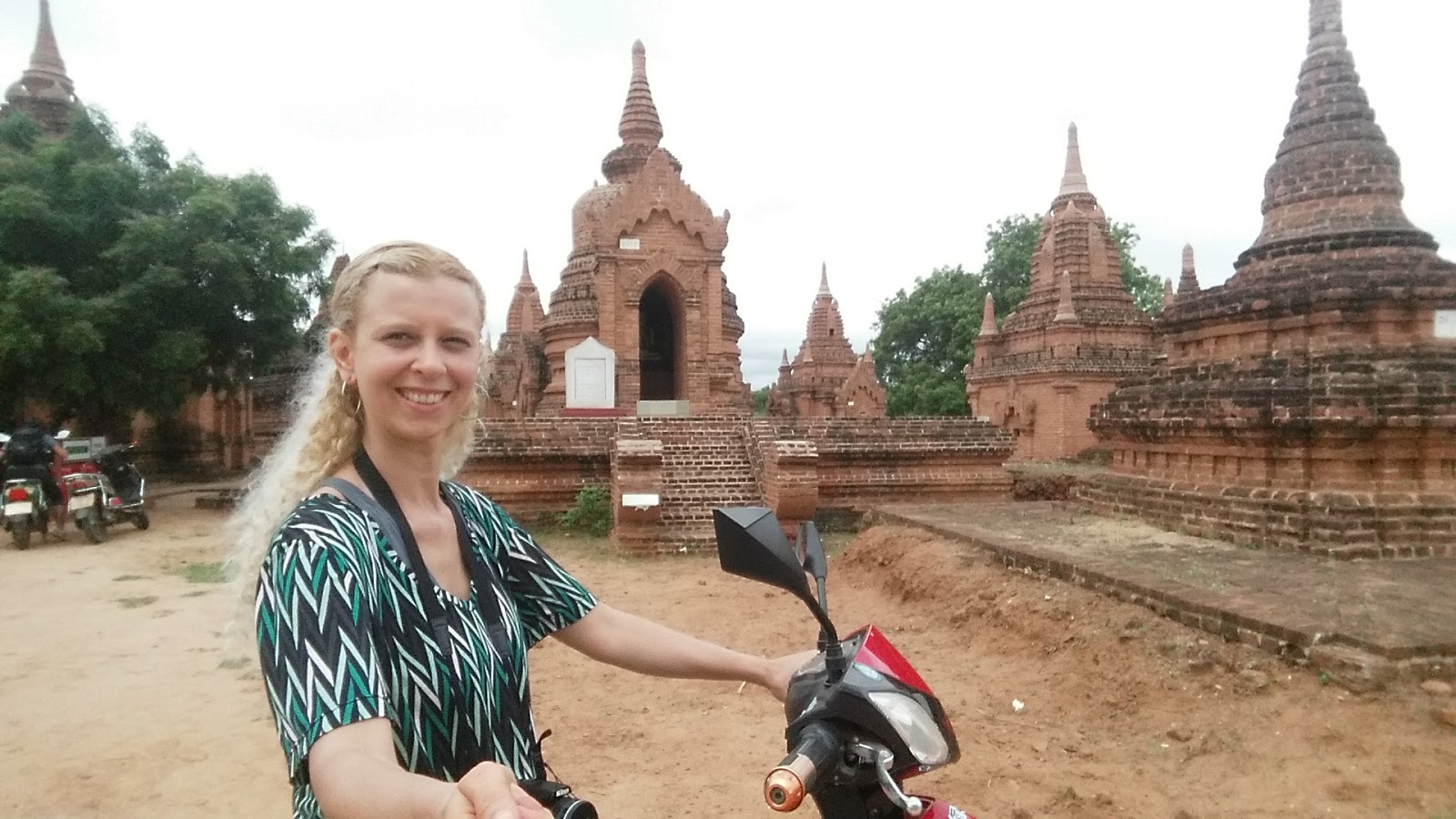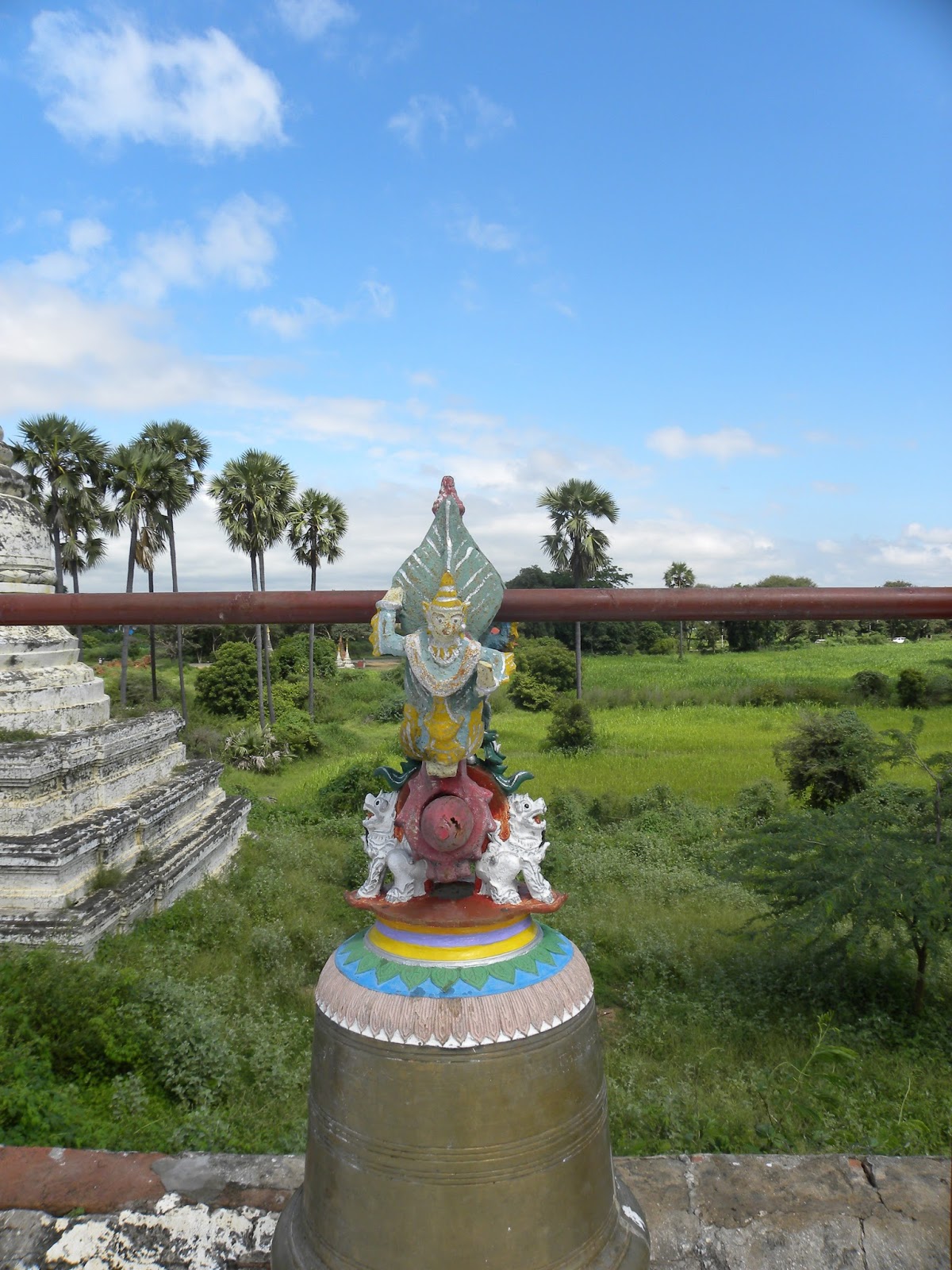 No caminho existem centenas de estupas, pagodas. Parava para registrar e muitas vezes estava sozinha, sem qualquer outro ser humano por perto. Alguns templos possuem a inscrição apenas em birmanês, na entrada, dificultando a localização no mapa. Passei pelo “That-buin-nyu”, que foi atingido pelo terremoto, “Chatu-Mukha”, “Ananda Pagoda”. Fico fascinada pelas esculturas de Buda.