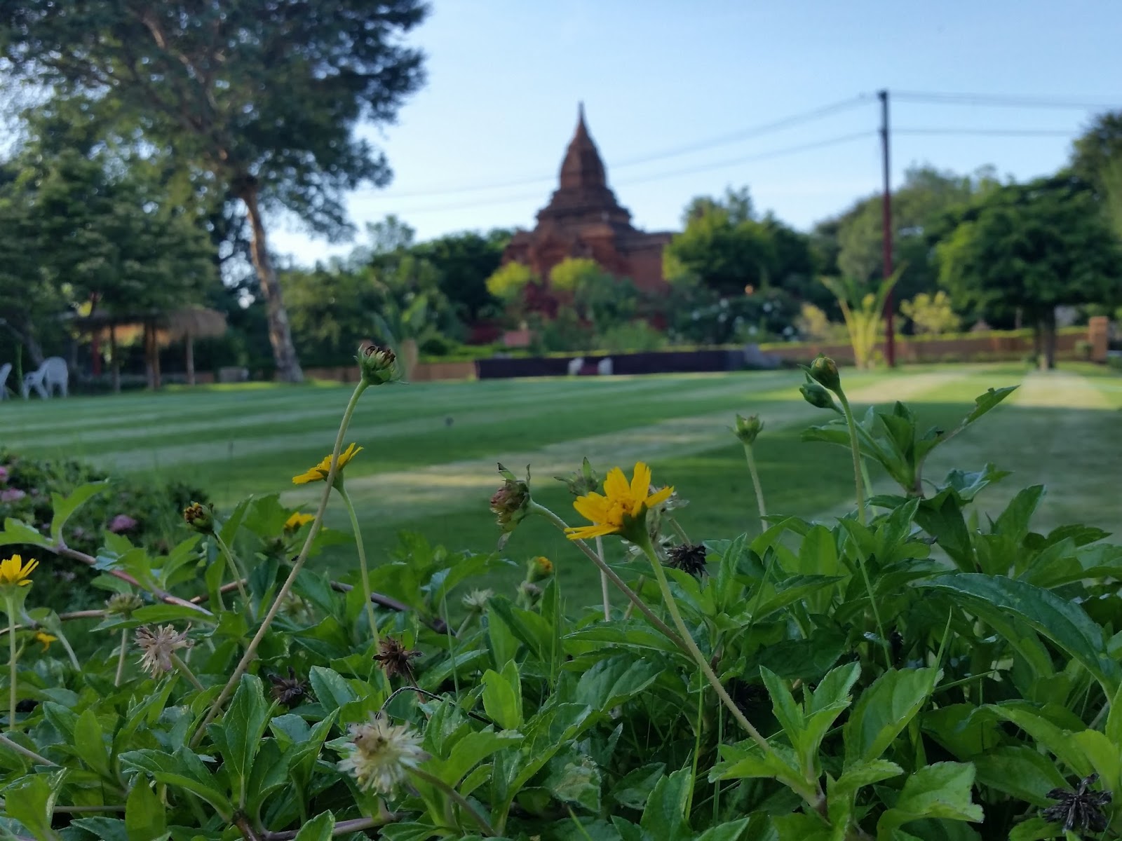 Observei que Bagan é dividida em 3 “bairros”: Old Bagan (templos), New Bagan (parte nova) e Nyaung-U (aeroporto e alguns templos). Definitivamente não é uma das cidades mais baratas do Sudeste Asiático no que diz respeito à hospedagem, mas também não tinha valores exorbitantes (cerca de 130 reais a diária). Primeiro pesquisei Old Bagan, mas naquela localidade tem apenas uns 3 resorts caros. O hotel mais próximo era o Bagan Umbra Hotel. Li que ficava a uns 3km dos primeiros templos e conclui que seria possível acessá-los de bicicleta.