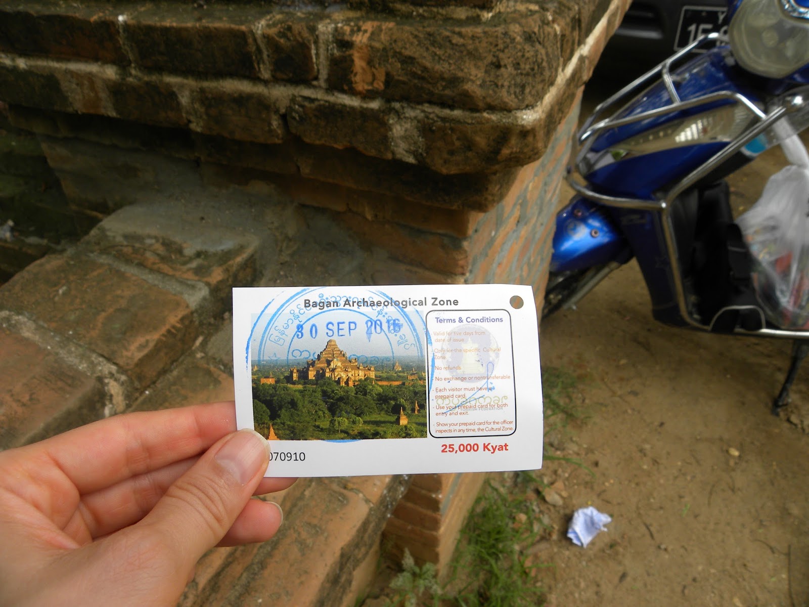 Li previamente que a cidade cobra uma taxa de 25 dólares (o valor subiu de 10 para 25 em pouco tempo) assim que o turista entra na cidade. Quem chega pela via aérea já paga no aeroporto. Cheguei de van e ninguém entrou no automóvel. Uma garota me parou e pediu o cartão “Bagan Archaeological Zone”. Na minha frente um casal fazia um escândalo (risos), pois estavam ali há três dias e ninguém tinha pedido e agora teriam que pagar no último dia da viagem. Perguntei se poderia pegar no hotel, mas não adiantou, pois não sairia do local sem o cartão. Paguei os 25 mil kyats. O cartão é válido por 5 dias. Sinalizo que em nenhum outro templo tinha qualquer pessoa cobrando o tal documento! Tenho dúvidas se o dinheiro é utilizado na preservação do patrimônio, pois os monumentos parecem abandonados.