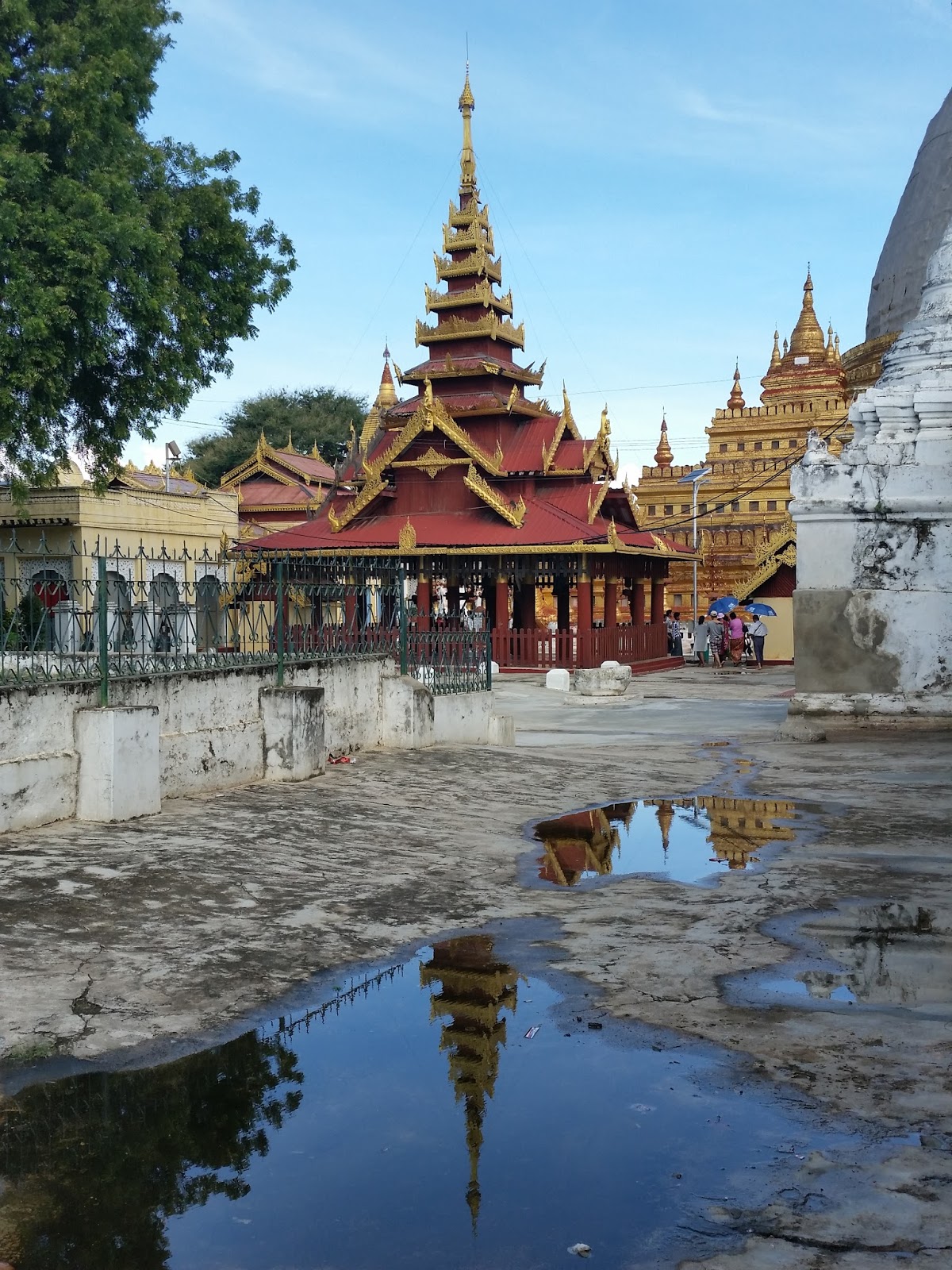 No caminho fui percorrendo várias estupas, pagodas, etc. Parei no templo TaWaGu (construído em 1.190 por um ministro que doou o templo, escravos e terras, segundo inscrição no interior), de repente o céu escureceu, mas segui até o Shwebonthar, Myet Taw Pyay.