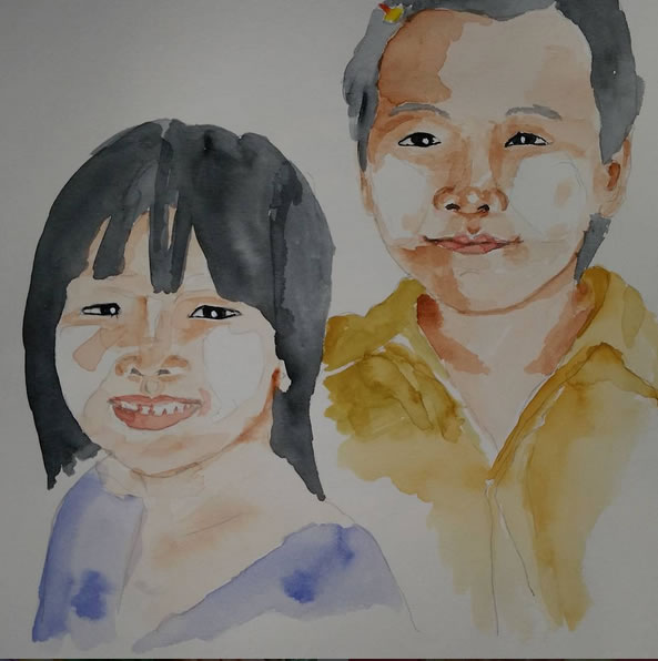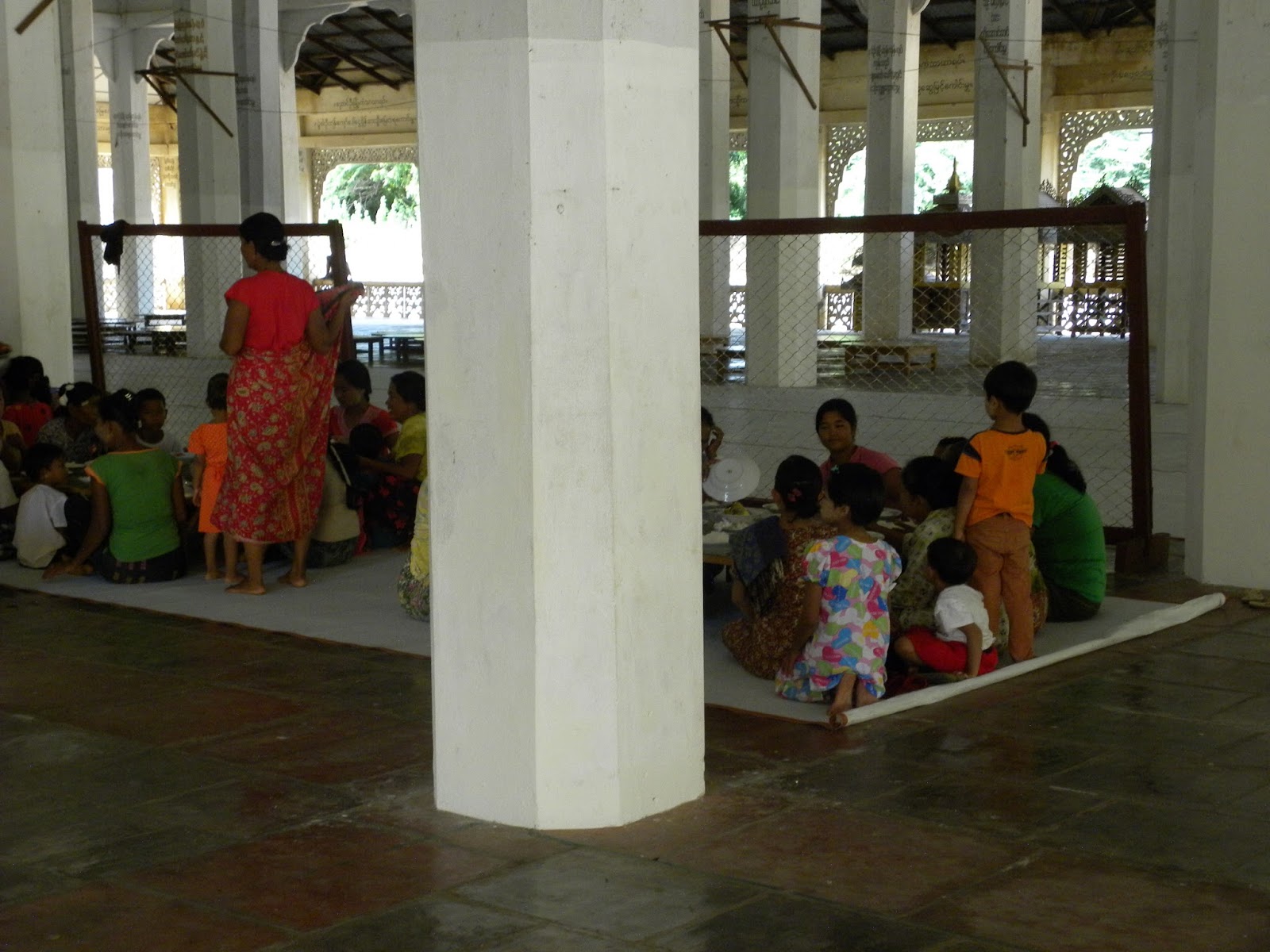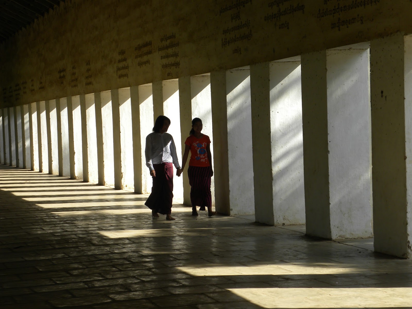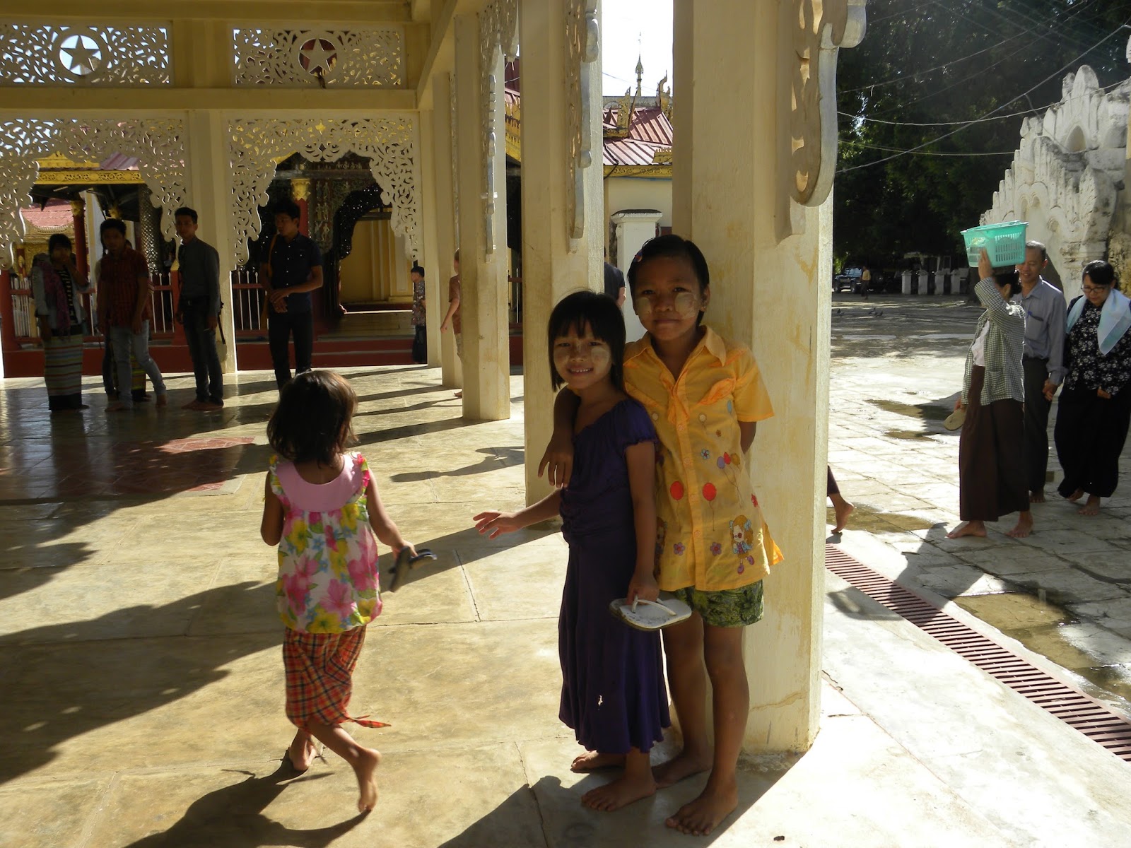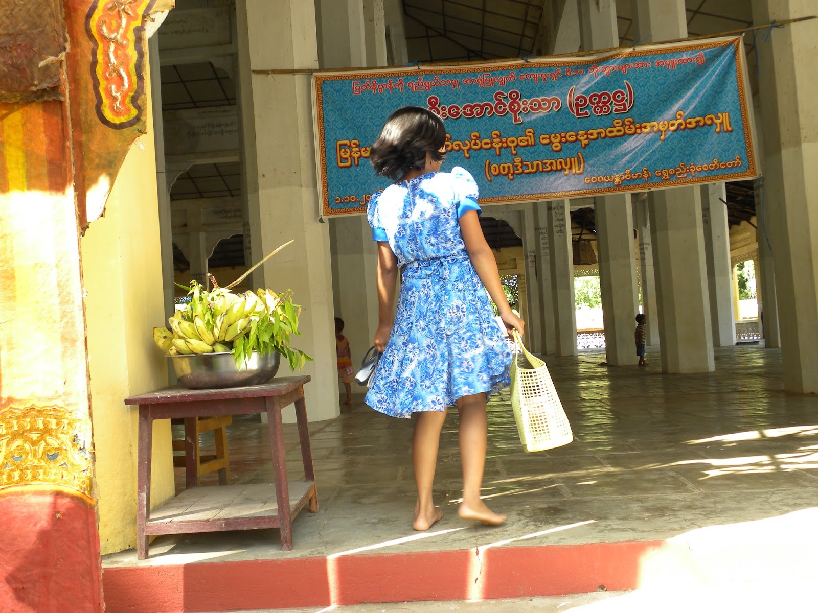 As pessoas foram muito atenciosas em Shwezigon. Assim que entrei, três meninas se aproximaram e começaram a mandar beijos para mim. Pena que só tirei uma foto quando já se afastavam. Todos cumprimentavam com um sorriso tímido ou com um olhar fraterno.