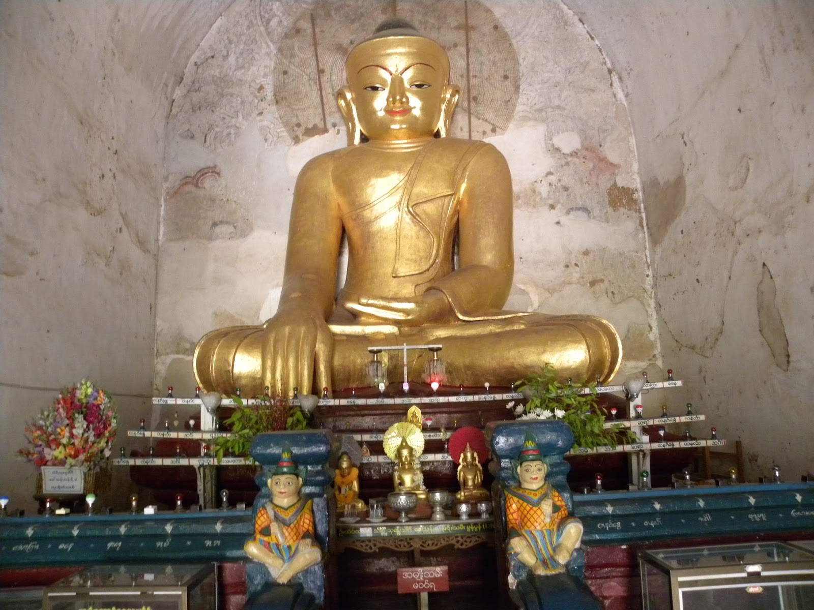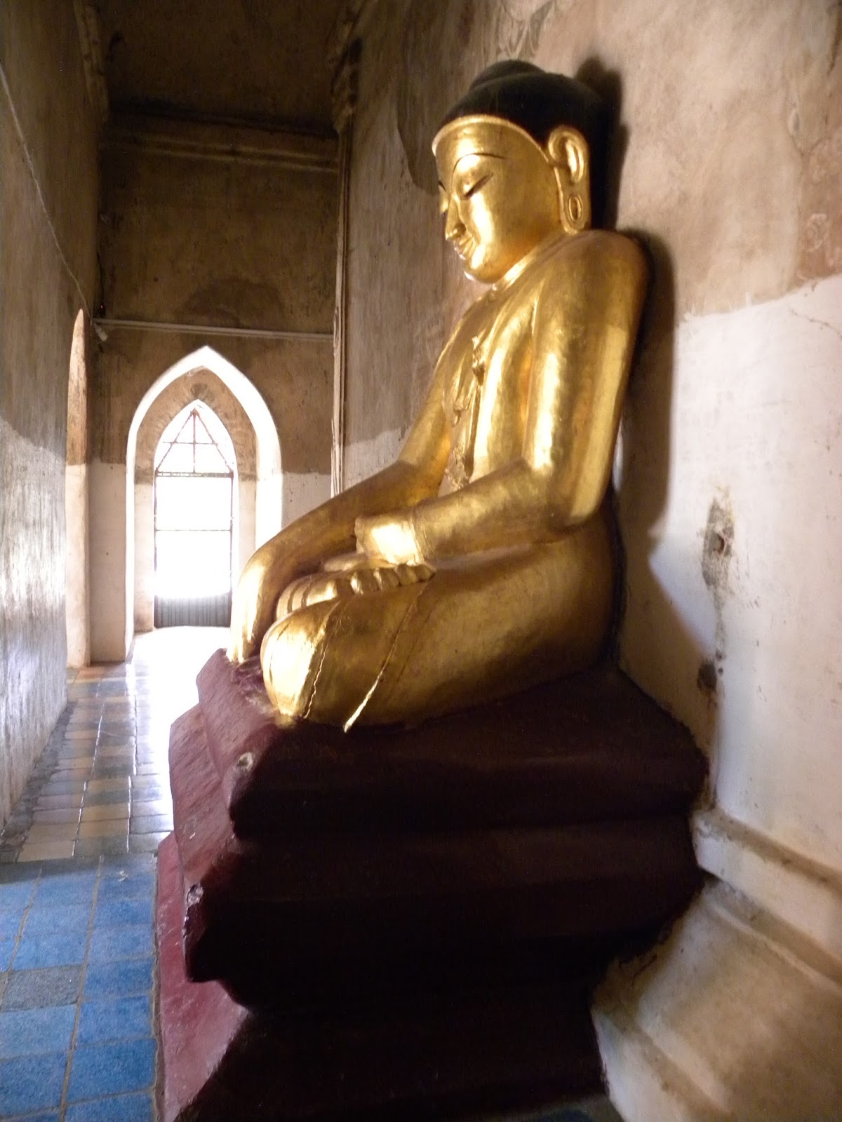 Após o merecido repouso, segui para o templo Gawdawpalin, que tem dois andares, típico do estilo tardio, foi construído no século 11. O plano é quadrado com pórticos nos quatro cantos, no primeiro andar encontramos 4 imagens de Buda.