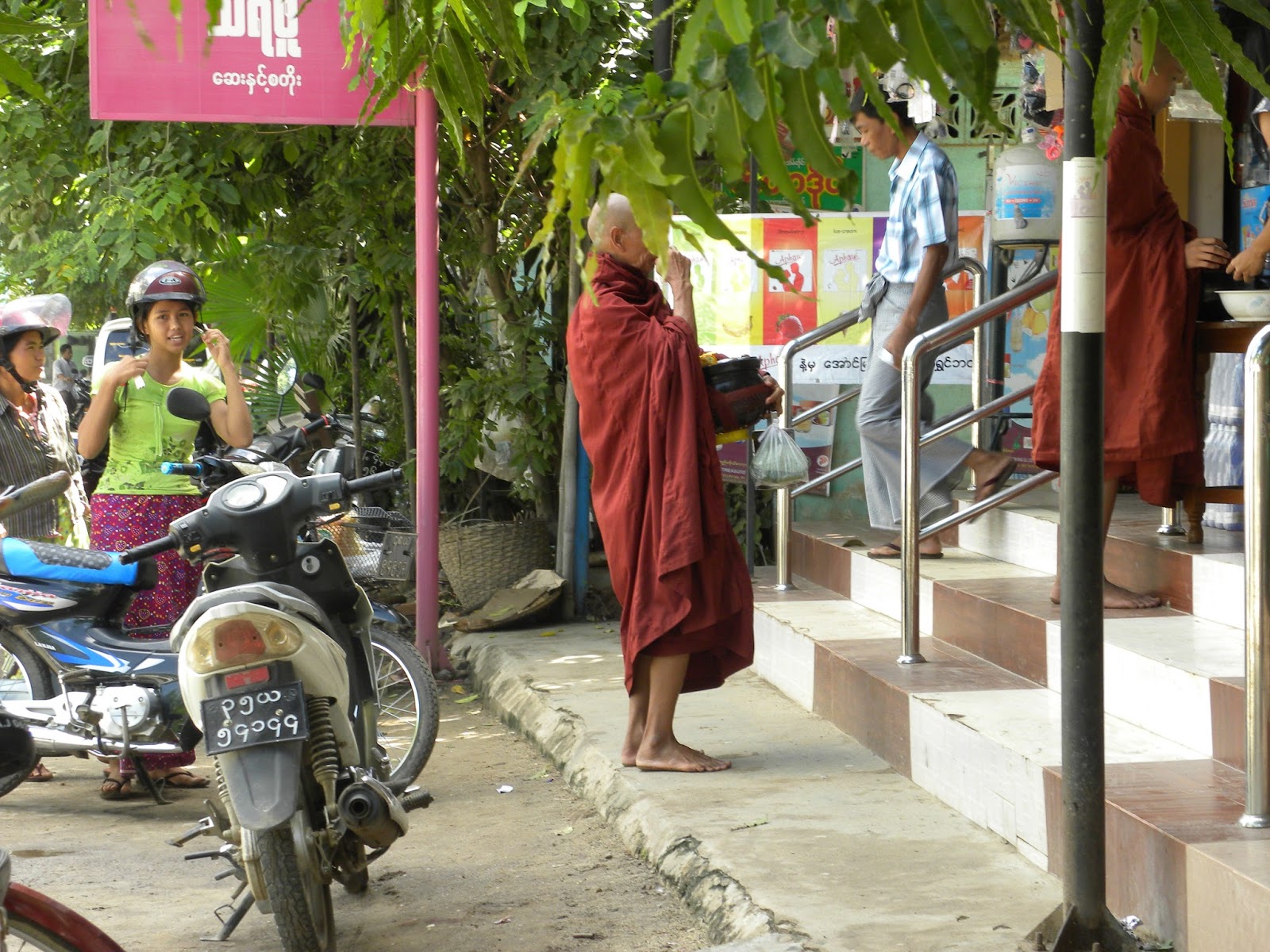 Na volta, tive que suar a camisa para pegar a moto, pois estacionaram atrás de mim. Passado o sufoco, retornei para Old Bagan com o intuito de descansar. Parei no restaurante “Queen” e tomei um suco de laranja. Atravessei a rua, pois tinha uma agência do outro lado, e perguntei sobre excursões. A resposta foi que só fazem tour privado.