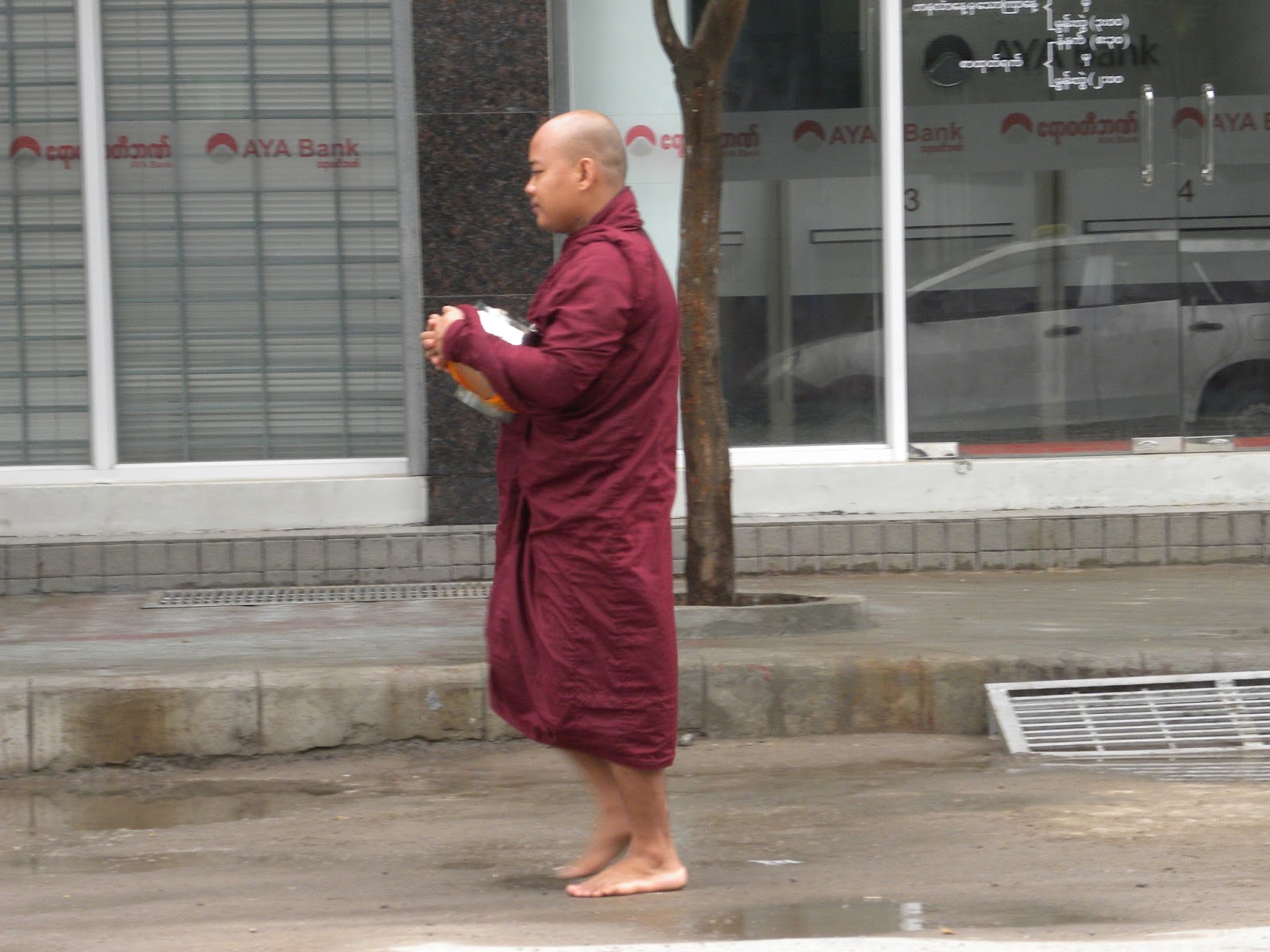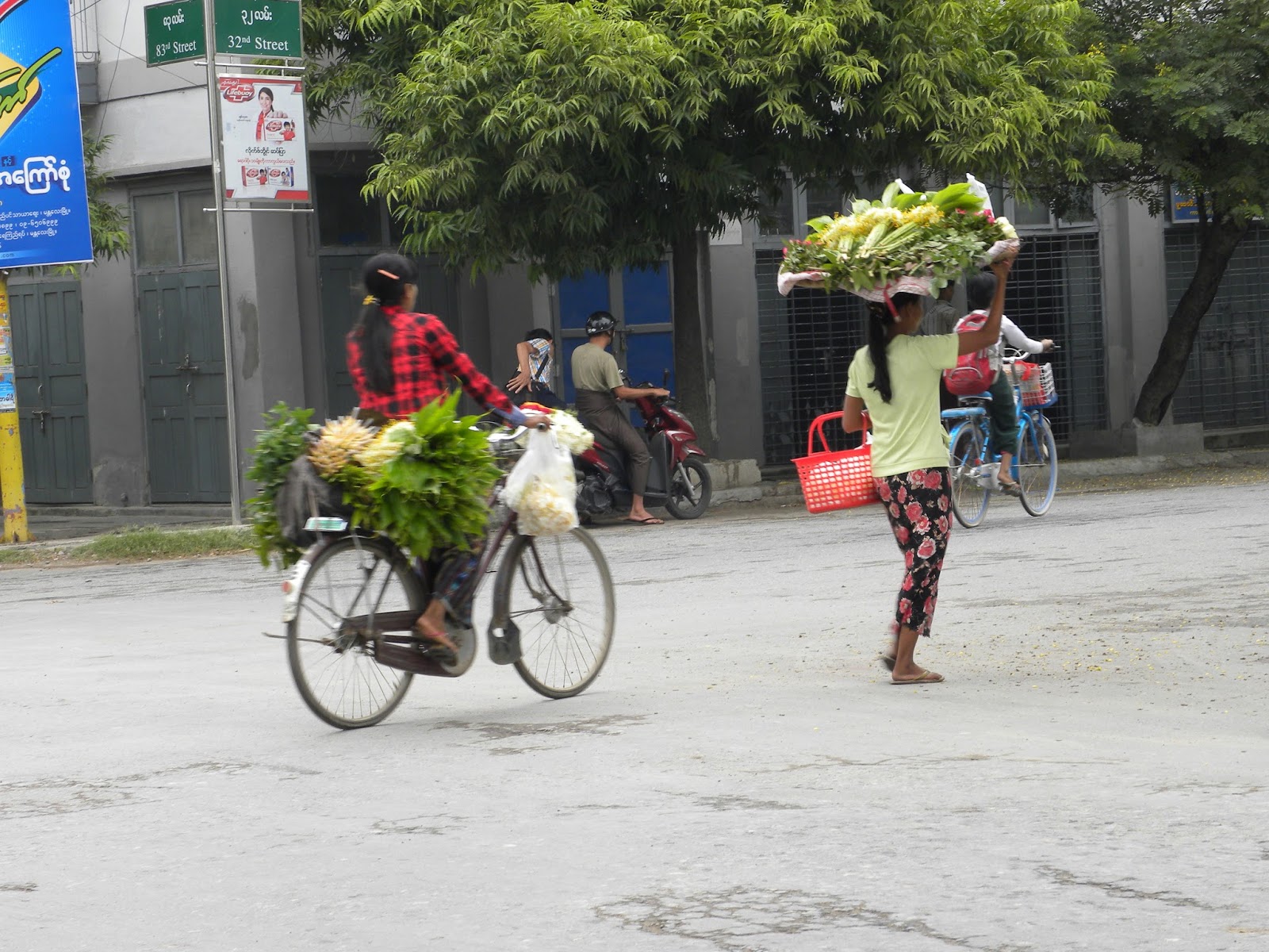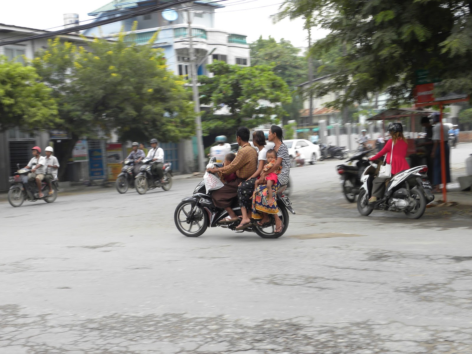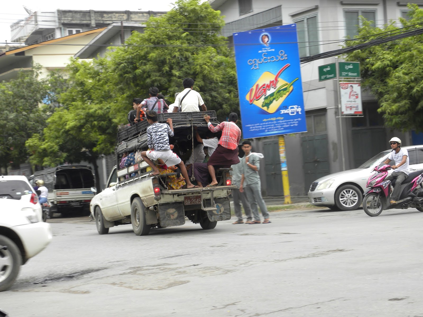 Acordei cedo e subi para o terraço com o intuito de tomar o café da manhã, mas não era dos melhores. Apesar da fome que estava sentido, só comi uma torrada com café e um refresco. Desci e fiquei na frente do hotel para apreciar o caos. Tinha uma escola na esquina e o trânsito de motos e bicicletas era abundante. Monges. Mulheres com flores. Caminhonetes lotadas de pessoas.