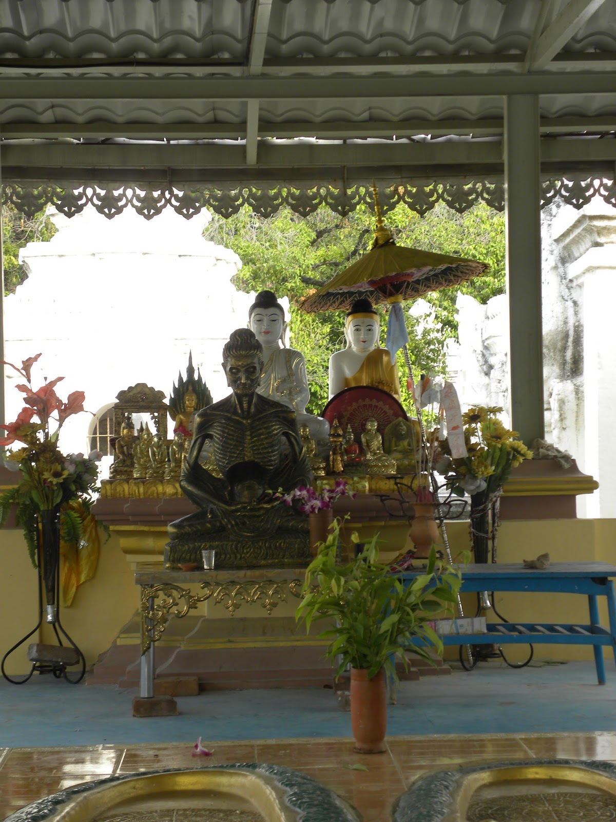 A próxima parada foi em Mandalay Hill. Confesso que o lugar não me deixou muito confortável. Logo na entrada uma moça disse que para pegar meus chinelos de volta teria que pagar. Acredito que seja uma espécie de golpe, pois se soubesse teria colocado o calçado dentro da bolsa antes de entrar.