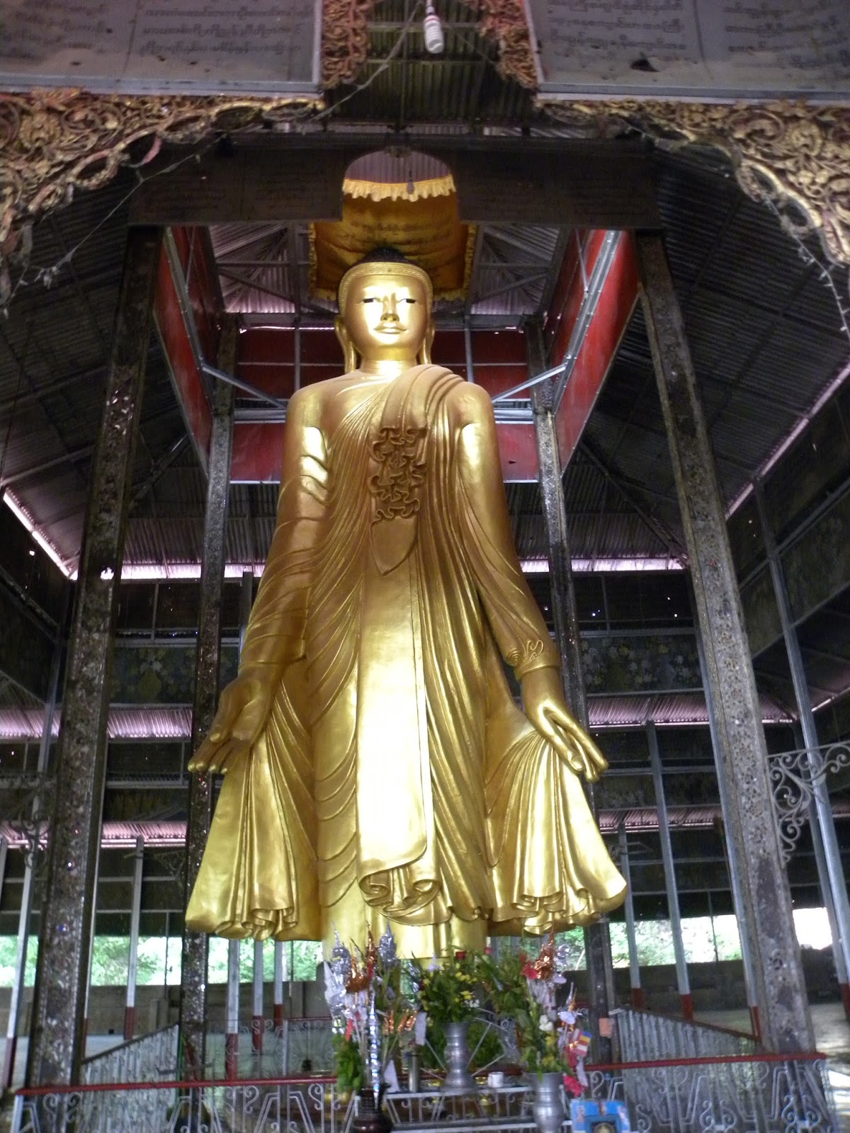 Saí de Bagan por volta das 09:30h. O percurso foi realizado no tempo previsto (ao contrário da viagem de ida), levando cerca de quatro horas e meia para chegar no destino – a viagem também foi um pouco mais agradável. No caminho, mirando pela janela, muitas vezes um templo surgia no meio do nada.