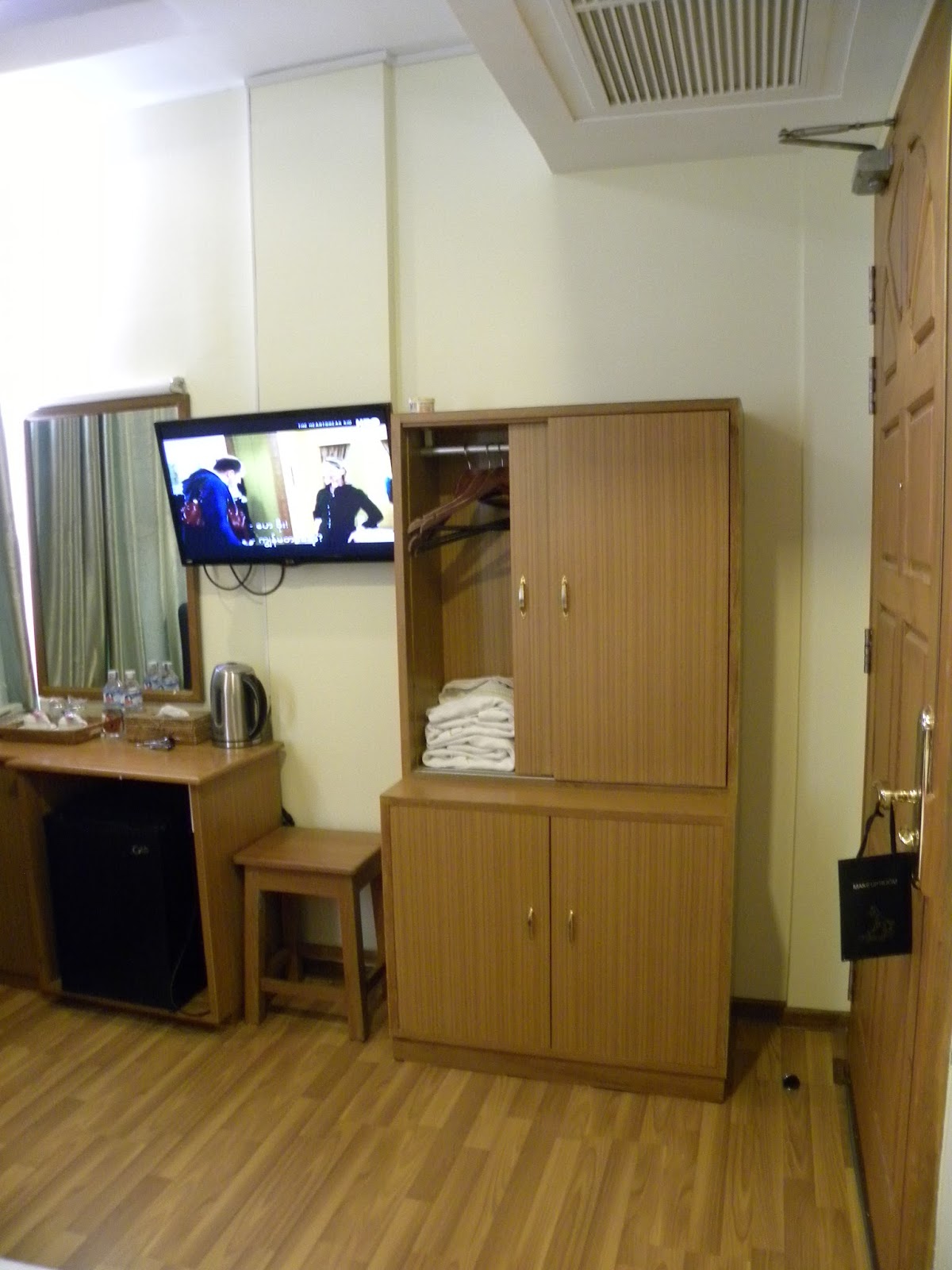 O segurança do hotel foi me levar até o quarto, localizado no 4º andar. O senhor era tão dedicado, me apresentou todos os itens dispostos no ambiente. Abriu o cofre, me mostrou que tinha café e cafeteira, ligou a tv e o ar-condicionado. Tudo o que não encontrei no hotel de Bagan estava presente em Mandalay. Senti-me em casa.