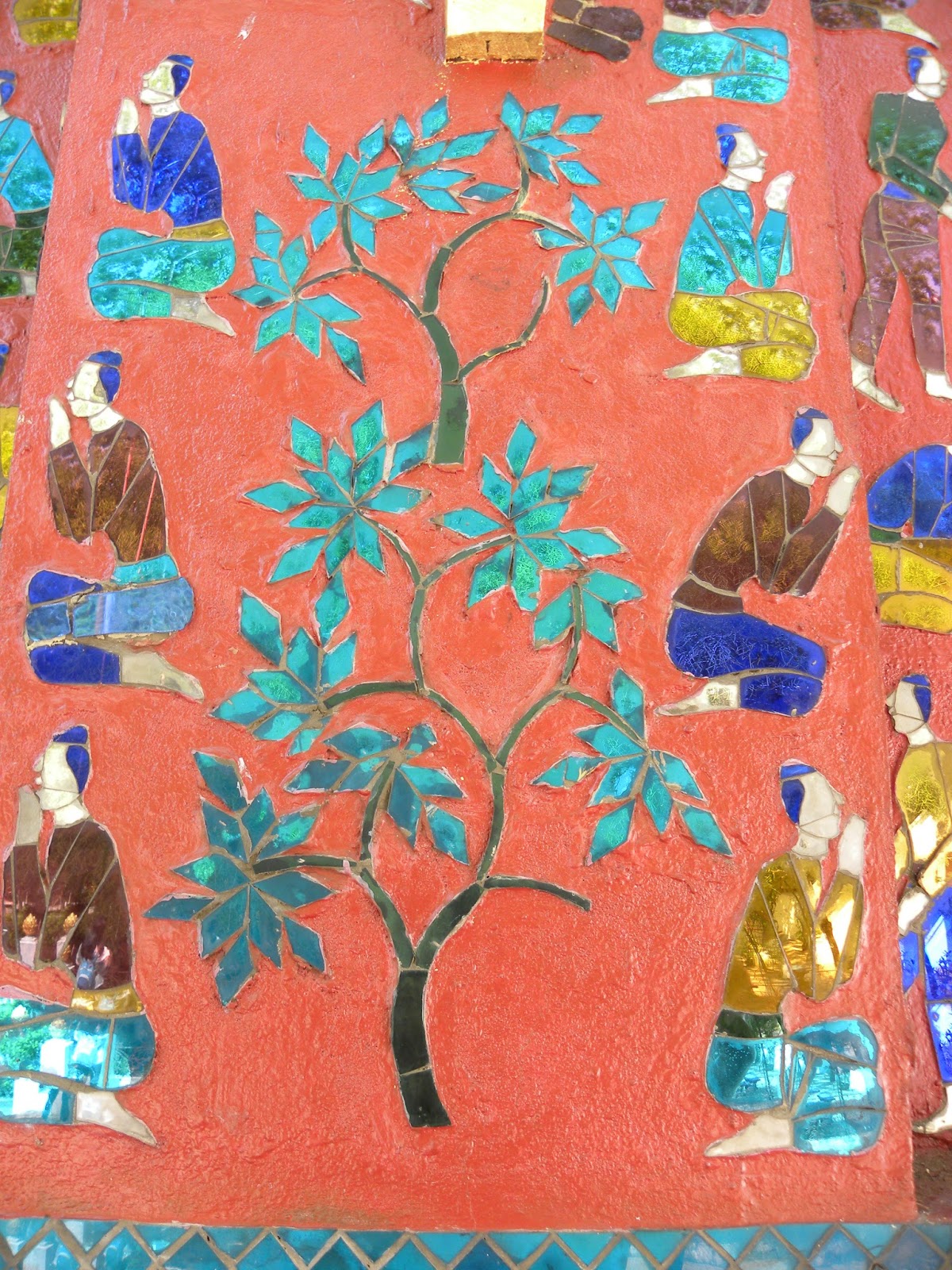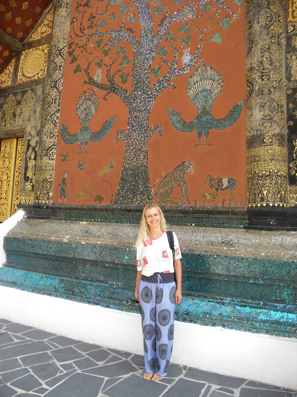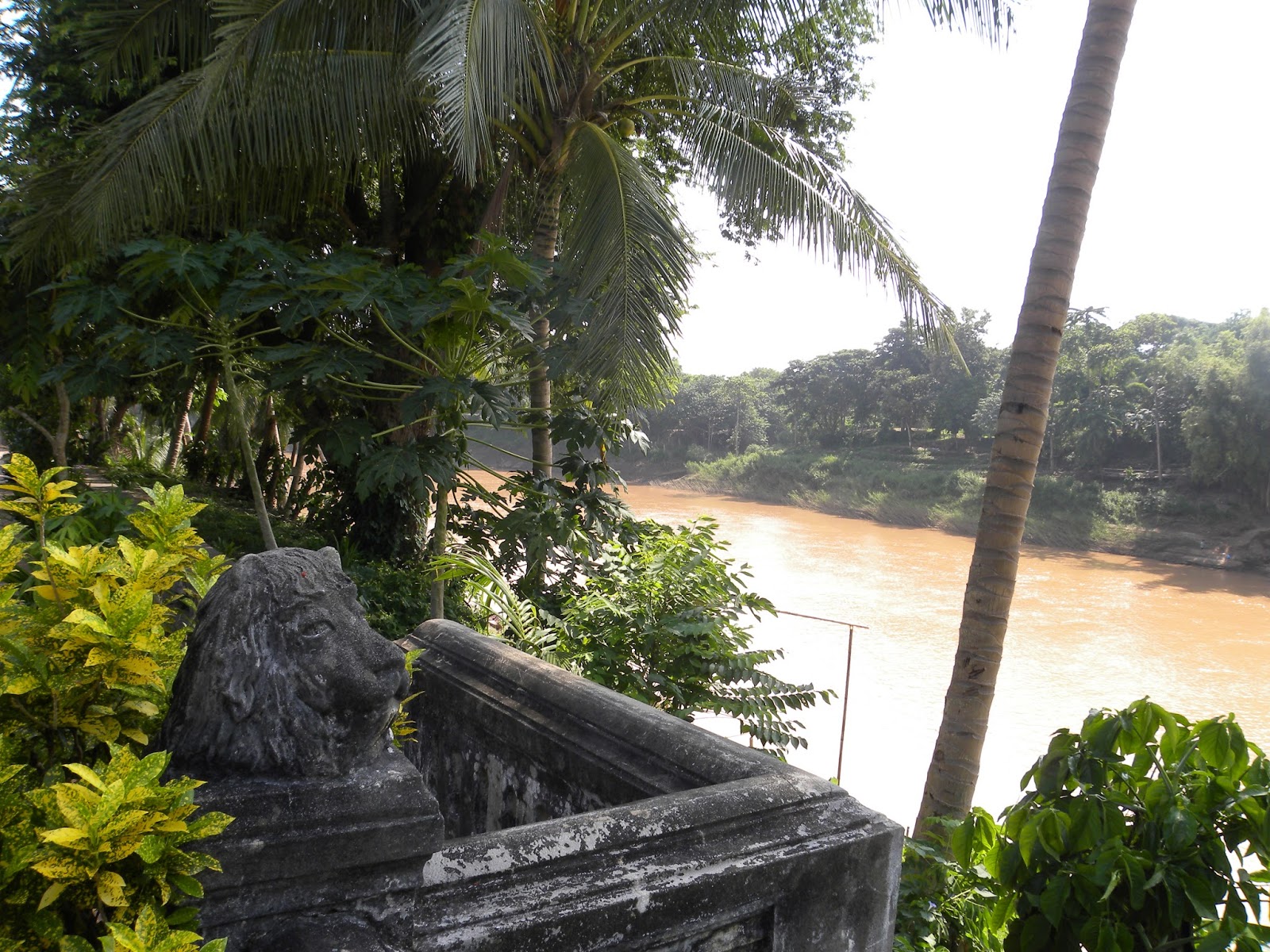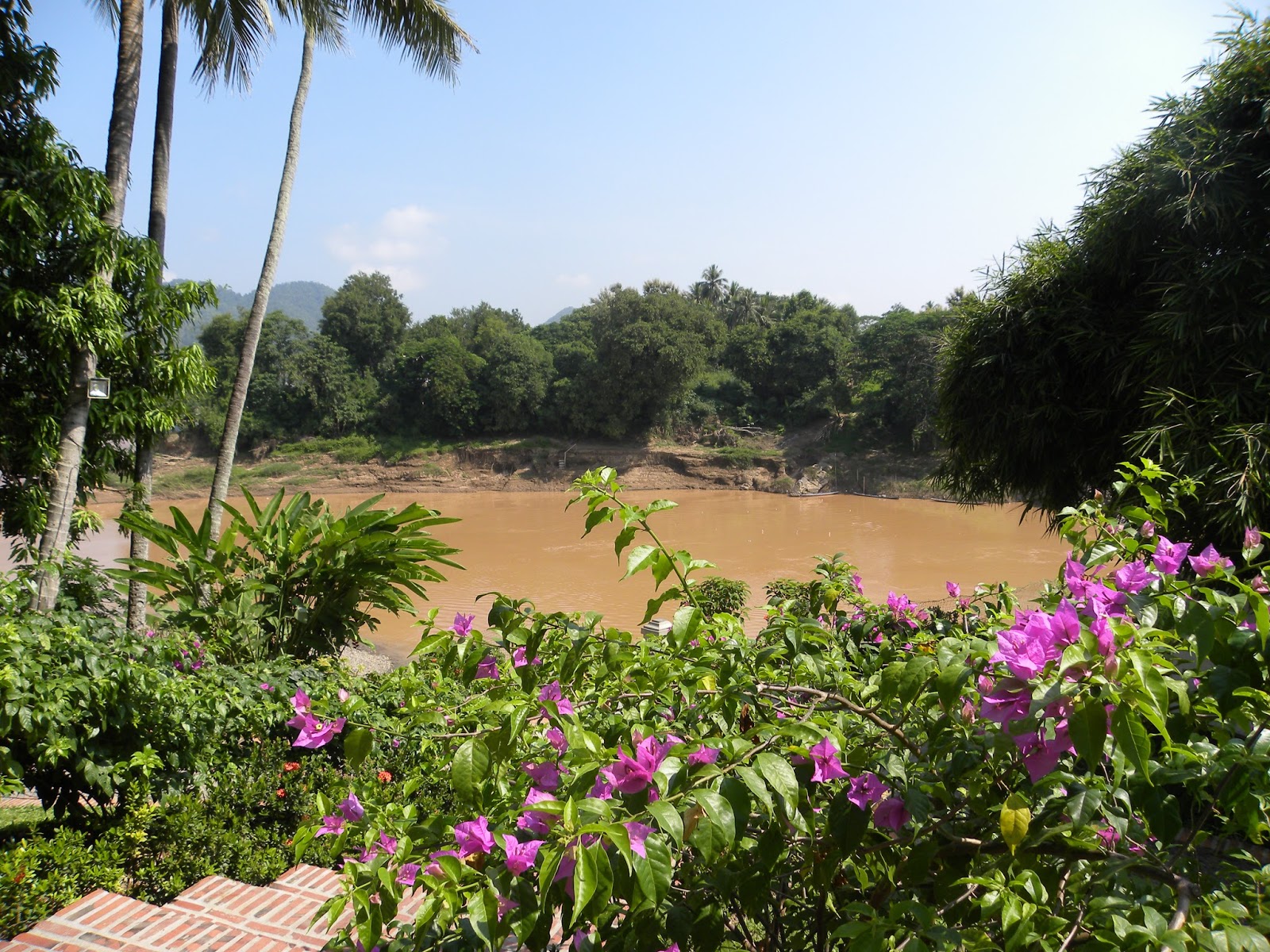 Meu objetivo era visitar o templo Wat Xieng Thong, conhecido por um enorme mosaico da Árvore da Vida, mas fui apreciando a bela arquitetura e vegetação nas margens do rio. A distância do hotel até o templo é de 2,1 km.