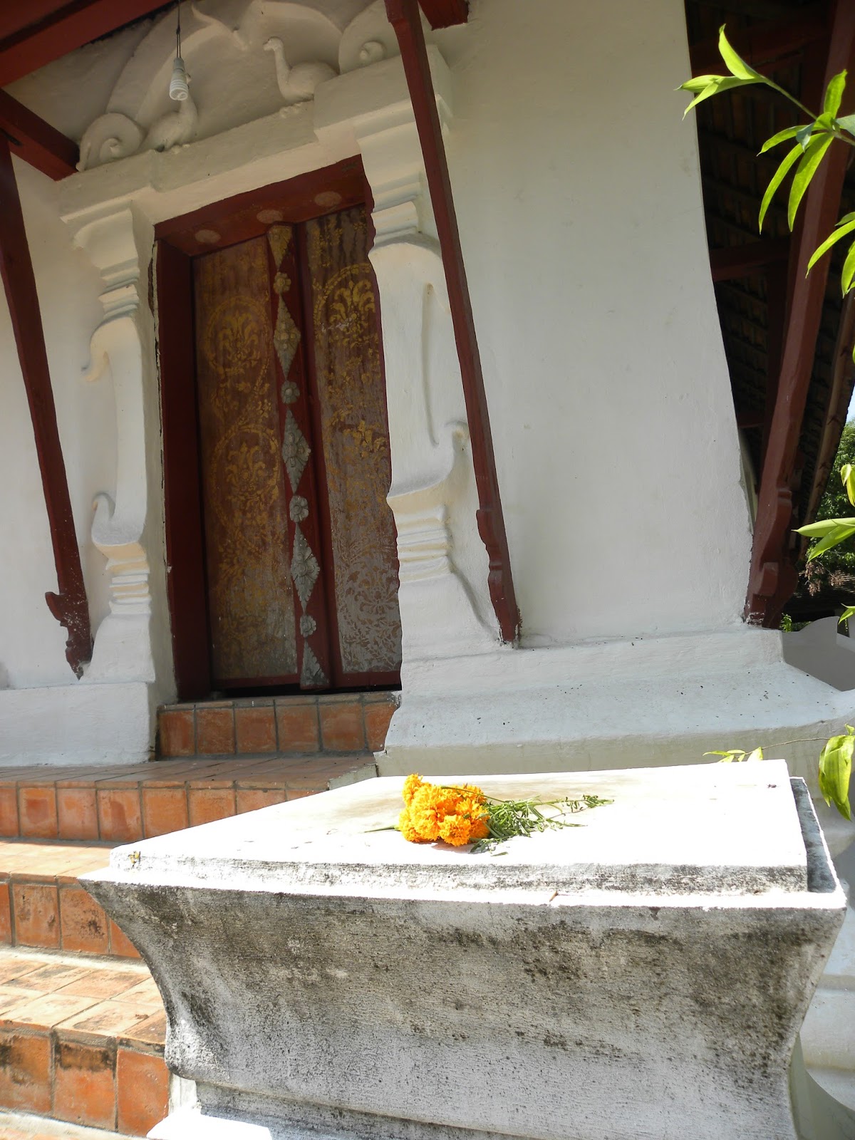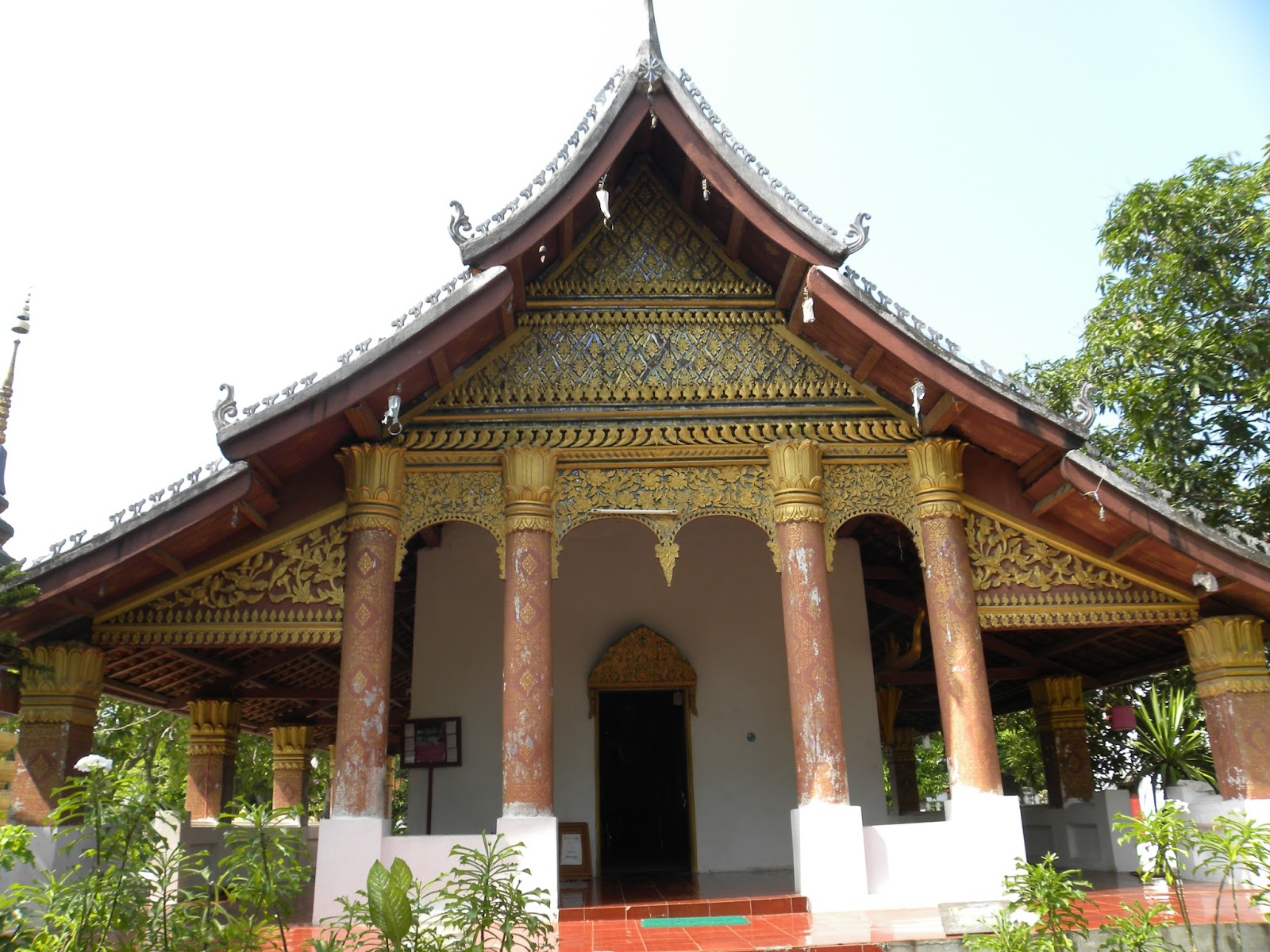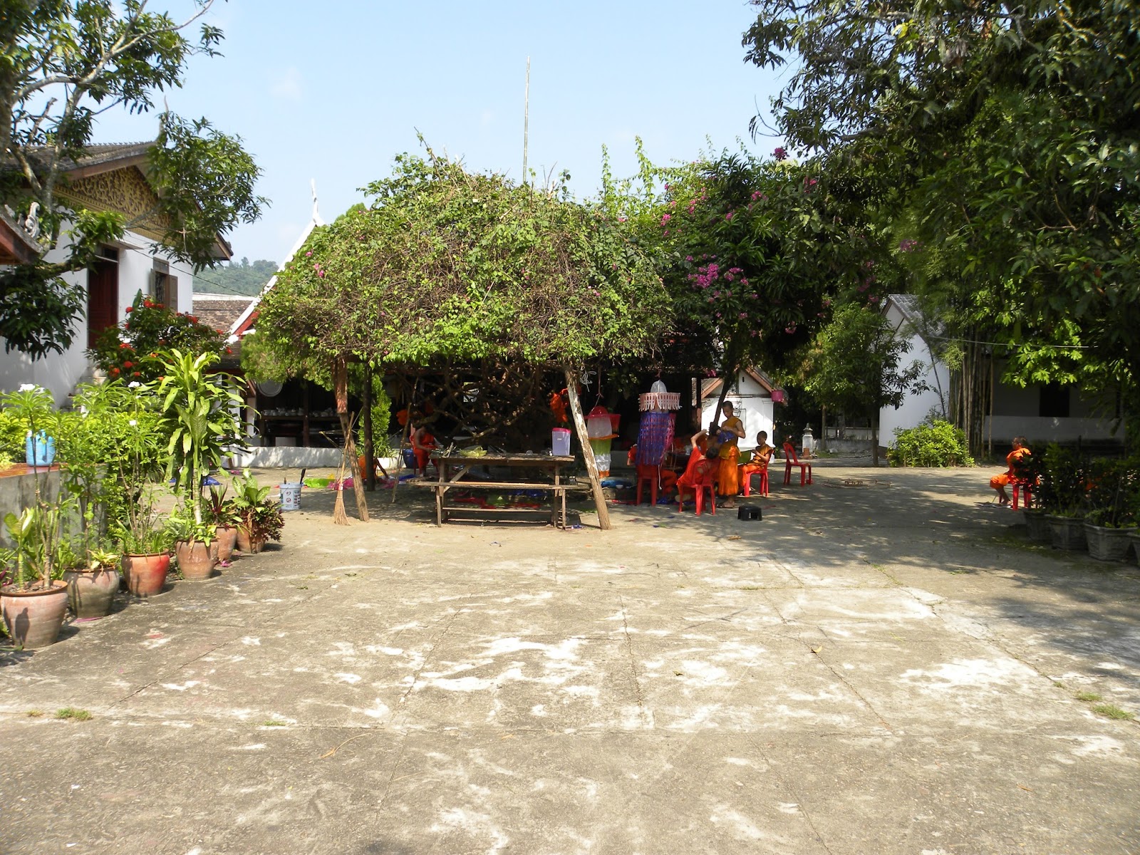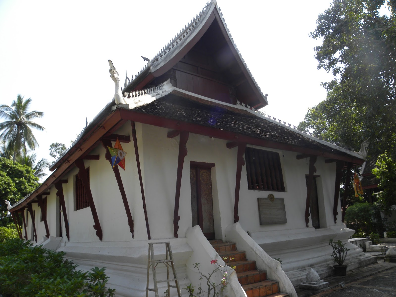 E, por último, o Wat Sibounheuang. O que mais me chamou a atenção nesse templo: na varanda havia dois monges tecnológicos, que utilizavam celular. Não sabia que tinham acesso à tecnologia.