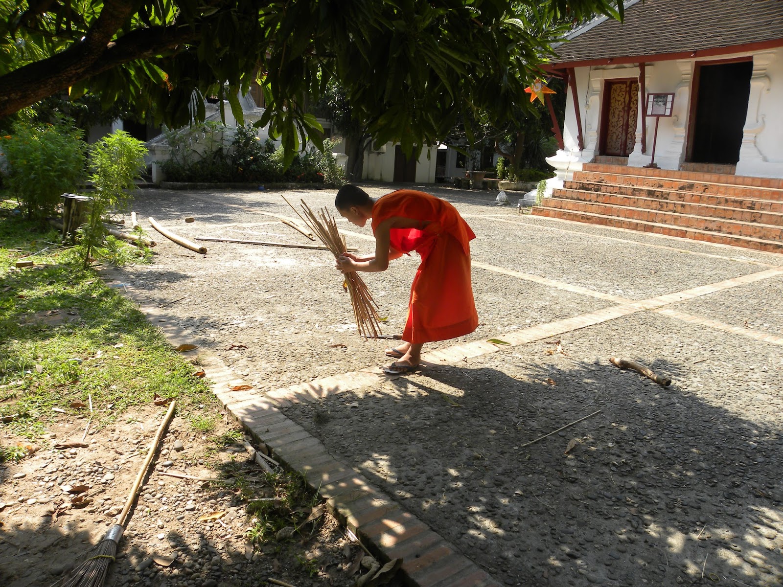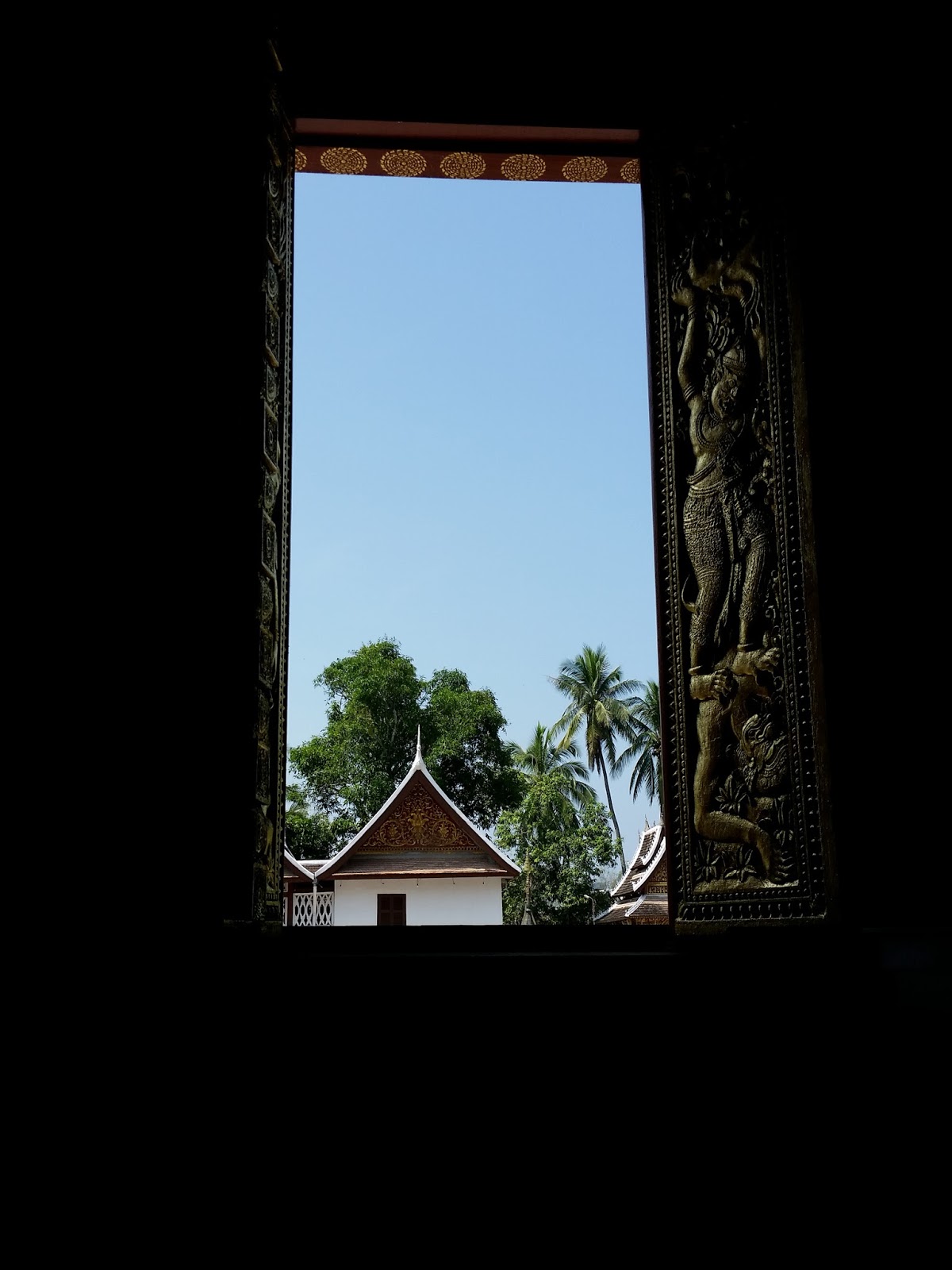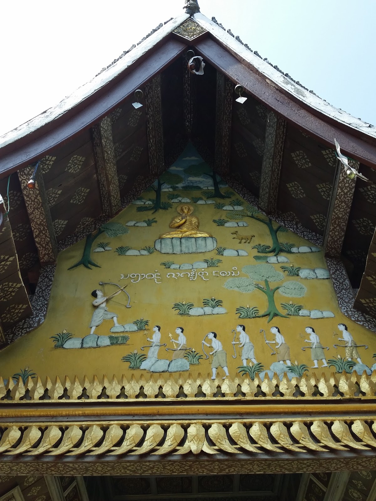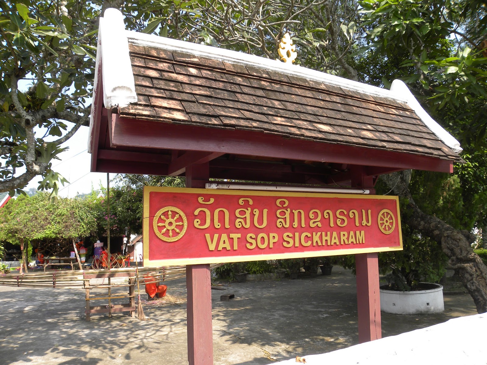 E, por último, o Wat Sibounheuang. O que mais me chamou a atenção nesse templo: na varanda havia dois monges tecnológicos, que utilizavam celular. Não sabia que tinham acesso à tecnologia.