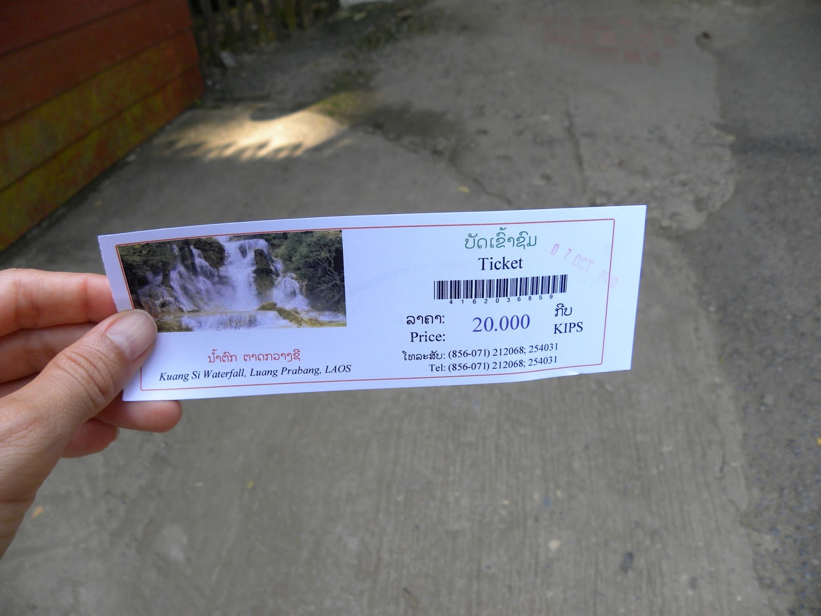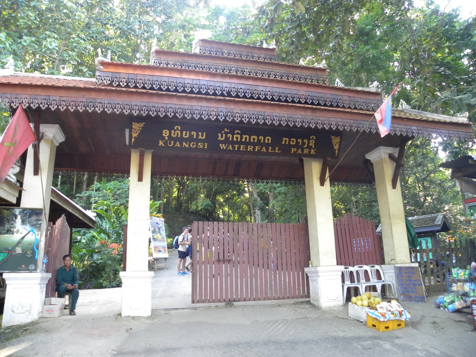 A turista alemã, que encontrei no dia anterior, disse que não visitaria a cachoeira pois estava com a água escura. Esperava encontrar a água clara, como tinha visto na maioria das fotos. Para entrar no parque, tivemos que pagar 20.000 kips. Seguimos eu, a tailandesa e a coreana, que pouco falava inglês, mas era simpática.