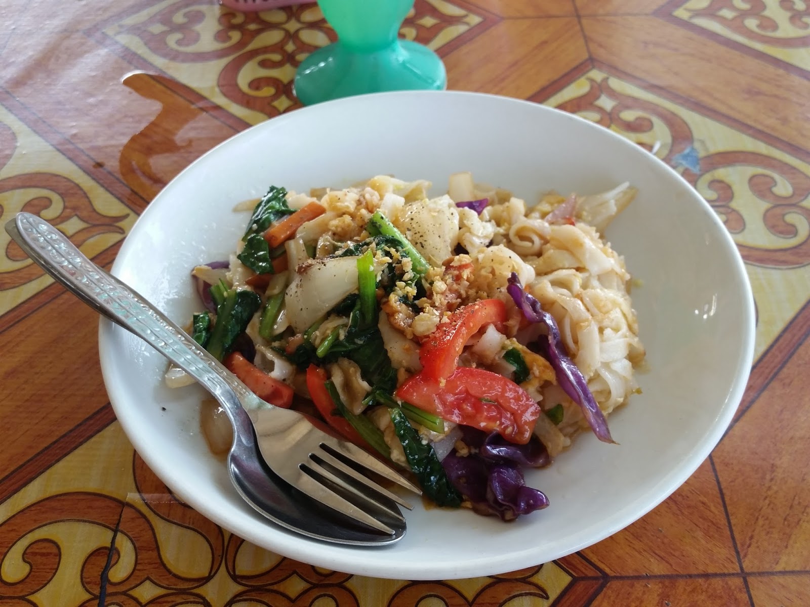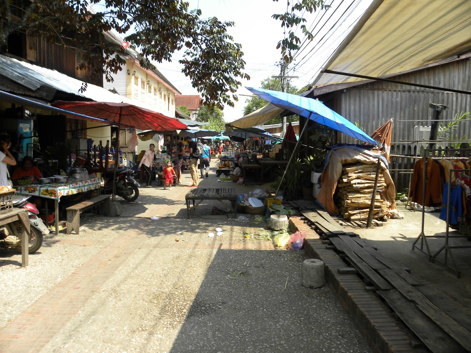 Na saída do templo, encontrei a Mimi, que conheci no dia anterior, caminhamos pelas ruas. Visitamos o “Morning market“, que já estava fechando. Disse-me que queria almoçar. Então procuramos a refeição que queria comer. Escolheu uma barraca na rua e pediu “noodles”. Tive que me despedir, pois estava na hora do checkout, entretanto, informei que retornaria para encontrá-la. Caminhei até o hotel, subi para o quarto, desci com a mala e pedi para guardá-la, juntamente com minha mochila, pois iria almoçar e voltaria no horário acordado.