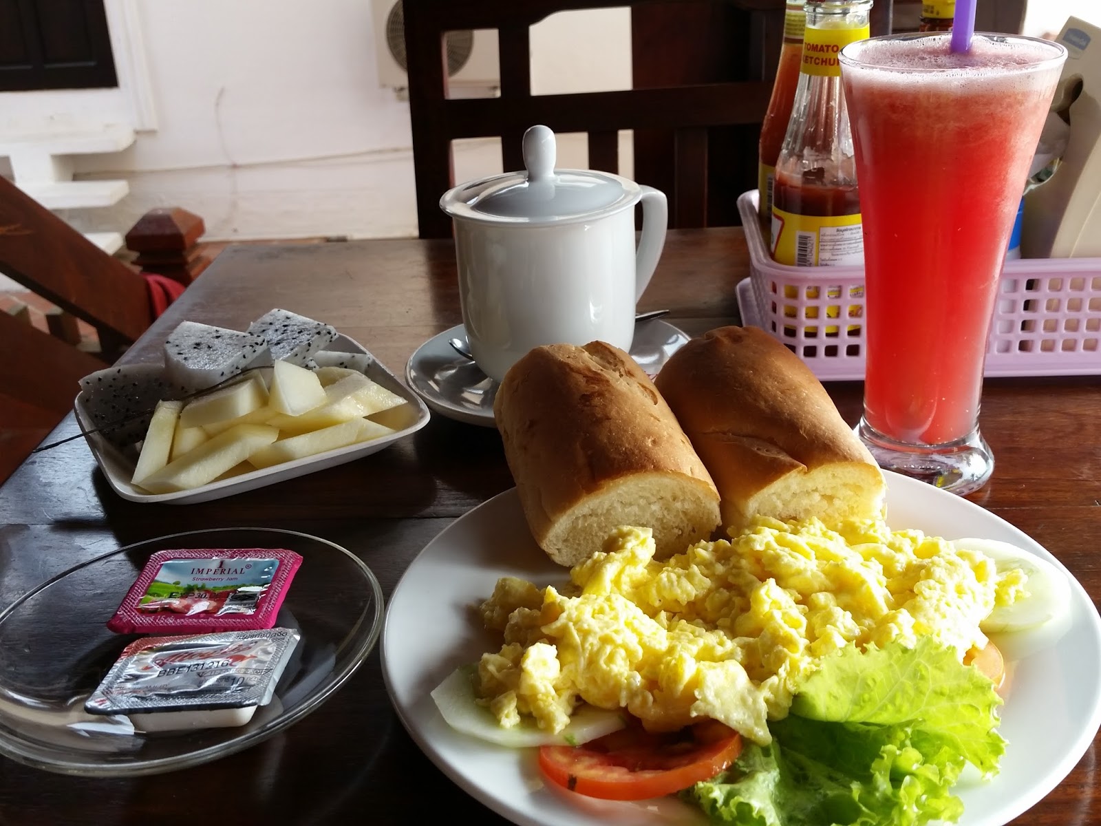 Retornei ao hotel por volta das 6:30 e aguardei o café da manhã, que era servido a partir das 7 horas. Meu voo para Bangkok sairia às 16:45. Informei ao gerente sobre o horário para que programasse o meu transfer. Disse que deveria estar no hall às 14:00, mas o checkout deveria ser feito ao meio-dia.
