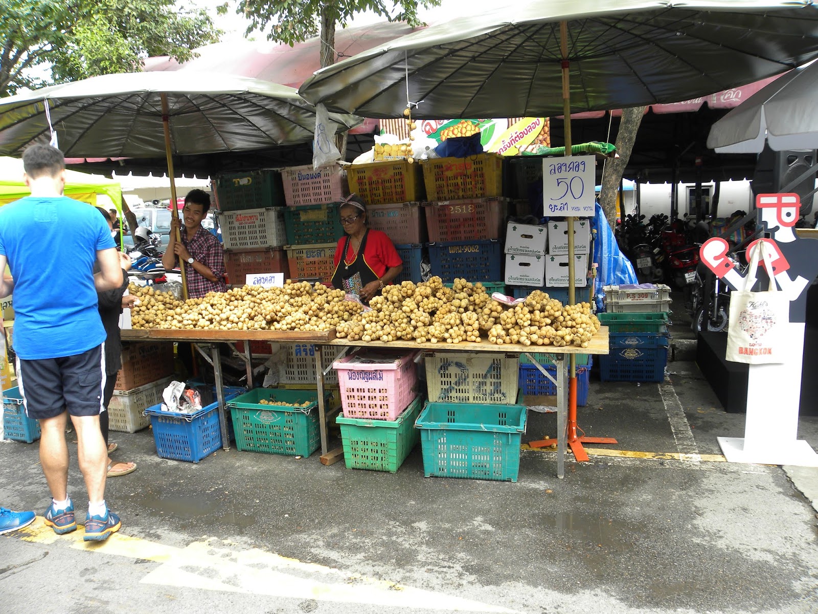No dia seguinte, acordei cedo, comi um biscoito que comprei no dia anterior e segui para a estação, porque queria visitar o Chatuchack Weekend Market, que funciona das 6h às 18h, apenas nos fins de semana. É possível chegar no mercado de Sky Train e metrô. A melhor opção é descer na penúltima estação da linha azul de metrô, a Kamphaengpecth Station (MRT), que deixa dentro do mercado. Vi muitas pessoas descendo da antepenúltima estação, talvez pela associação do nome, a Chatuchack Park, mas se descer nessa tem que andar uns 5 minuto, o mesmo se optar pelo Sky Train e descer na estação Mo Chit.