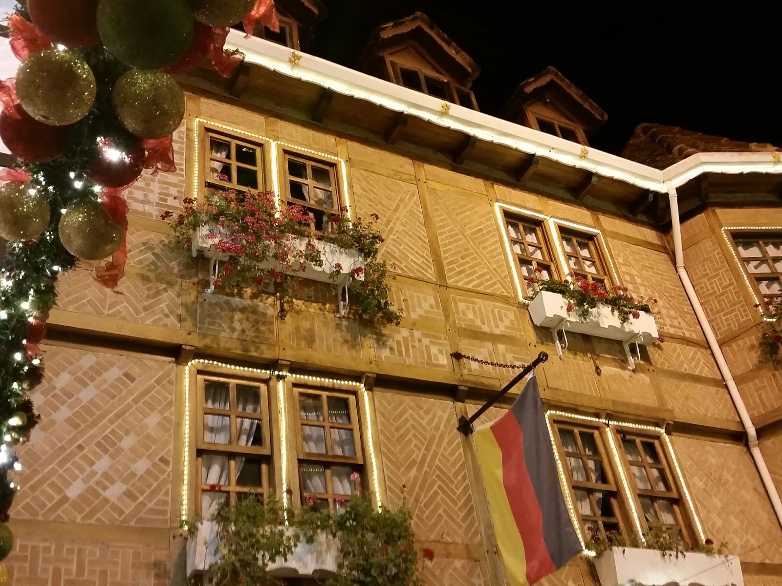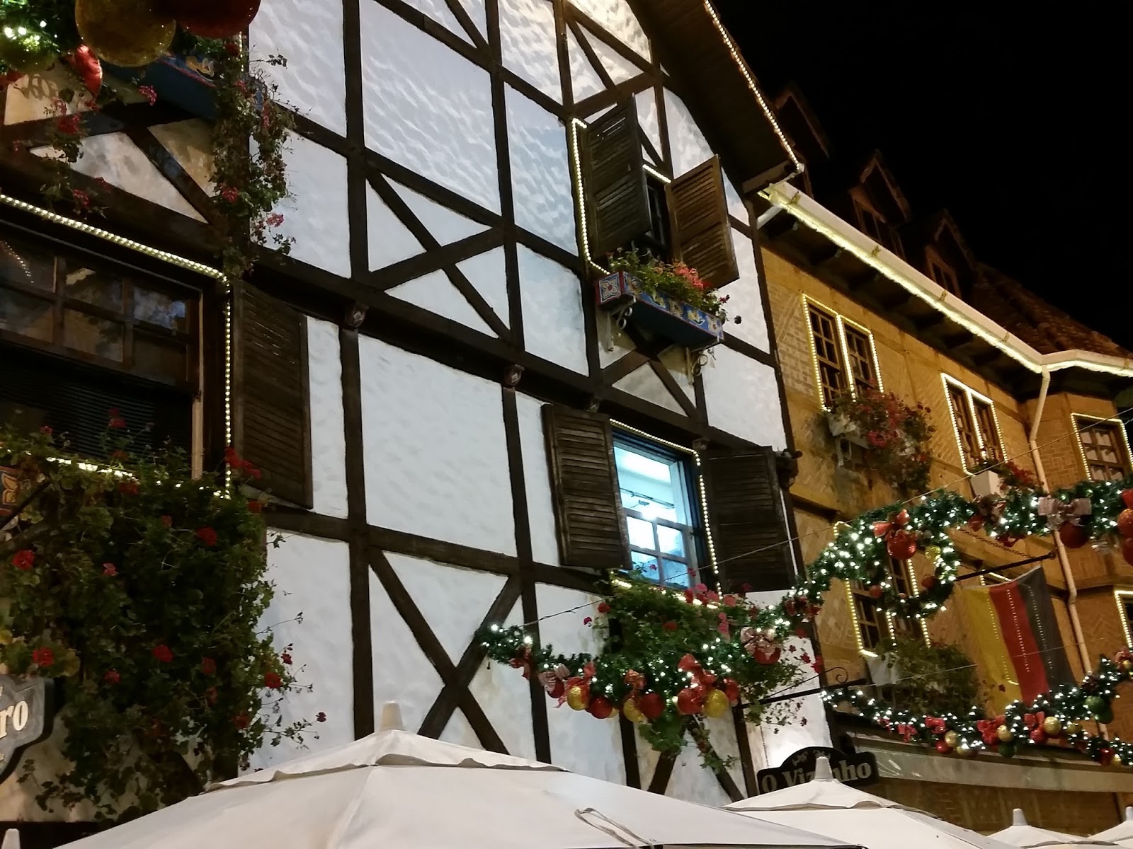 Caminhamos pelas ruas iluminadas, muitas lojas já estavam decoradas para o Natal. Entramos nas lojas de chocolates, compramos geleias, compramos óculos, na oferta da “Black friday”, e seguimos para o restaurante mais famoso da região: Baden Baden.