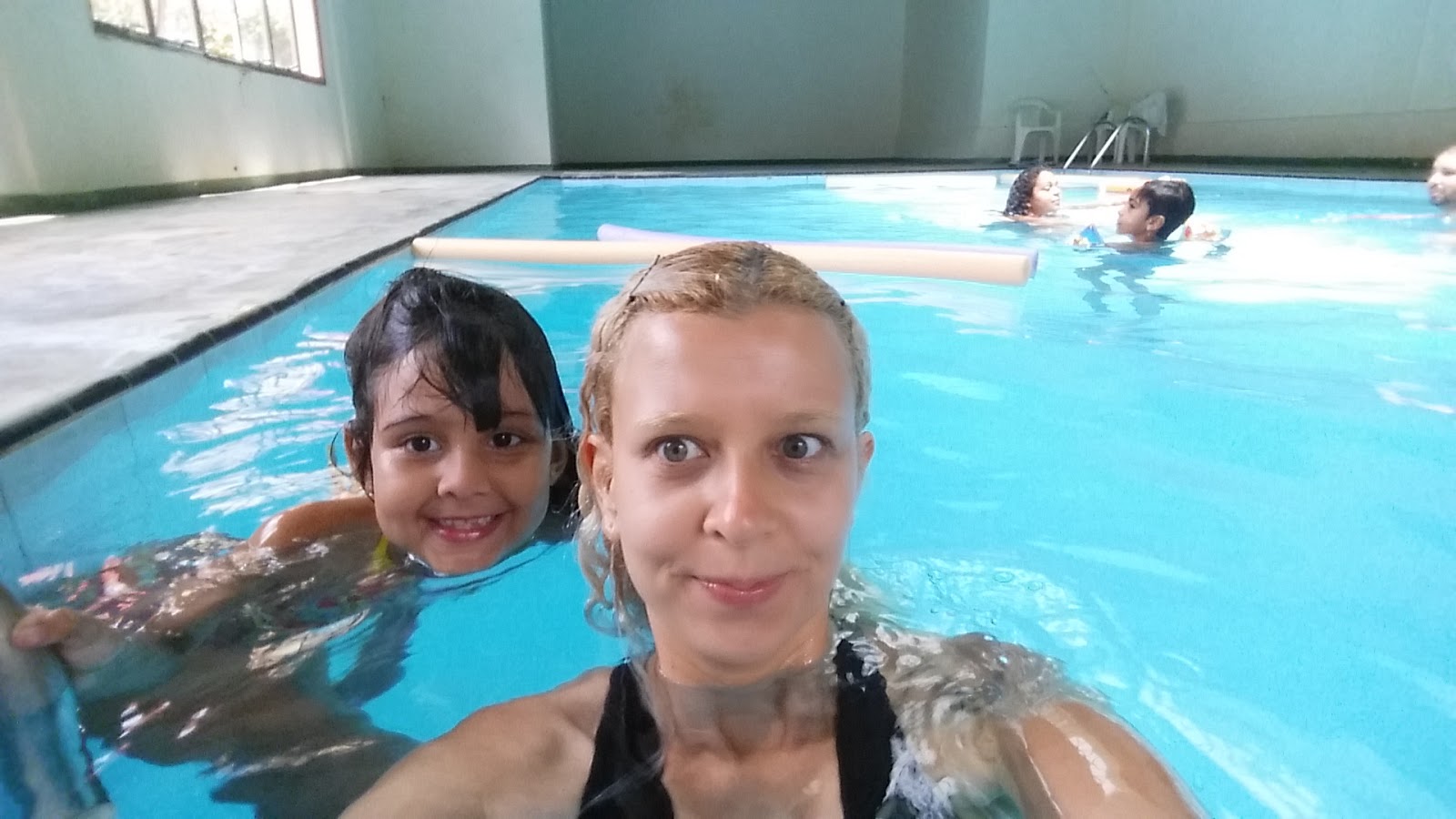 No retorno, eu e minha sobrinha aproveitamos a piscina aquecida até a hora do almoço. Tomamos banho e fizemos o check-out, mas novamente fomos ao Parque Capivari para que conseguisse andar no teleférico.