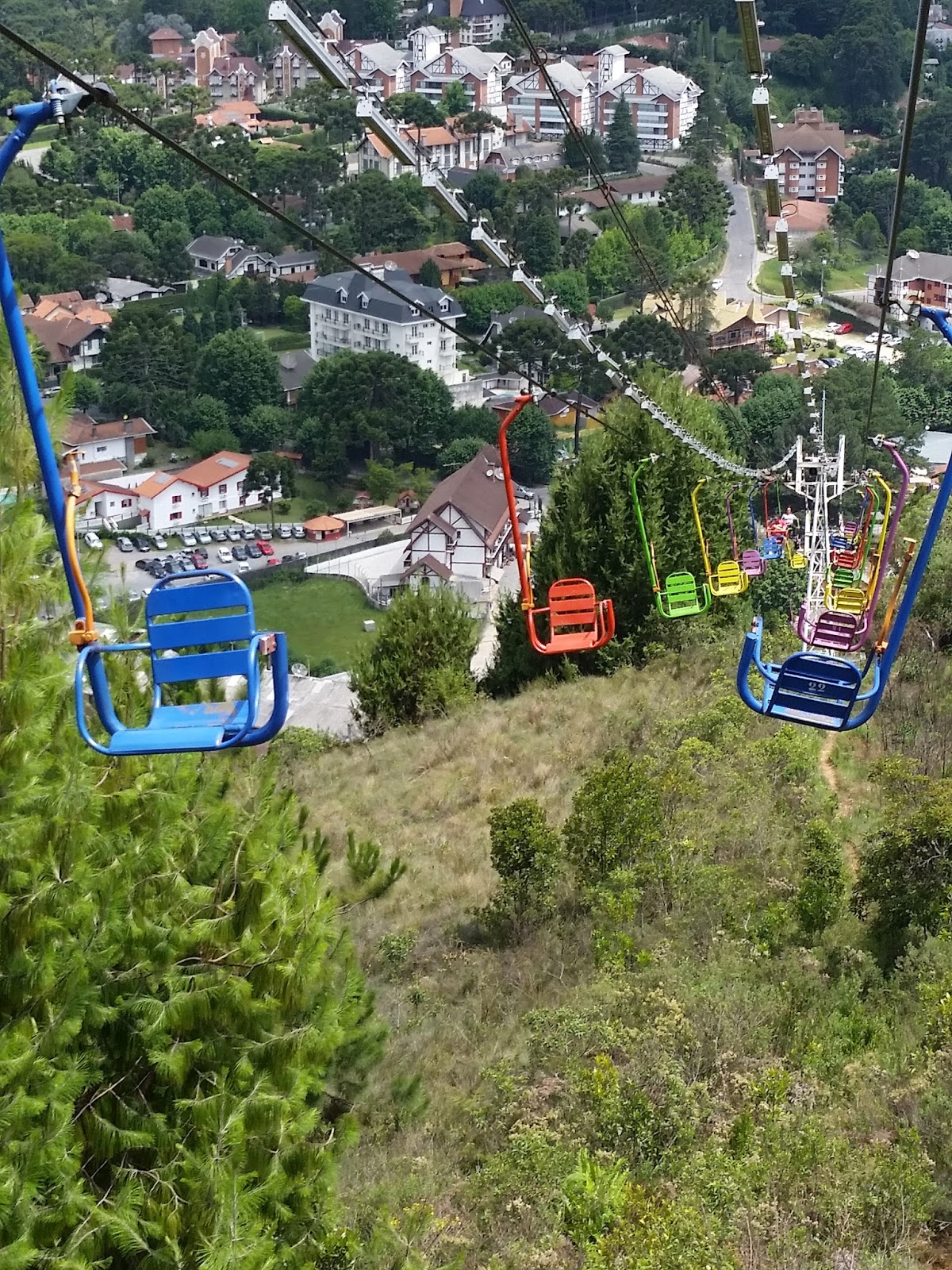 O passeio no teleférico é imperdível e custa apenas R$15,00. É preciso um pouco de habilidade para subir, pois a engrenagem não para: você fica num ponto e quando a cadeira passa você senta e fecha o a barra de ferro que te segura. O teleférico, inaugurado em 1970, leva até o Morro do Elefante, que fica a 1.800 metros de altitude. Chegando ao cume, a pessoa desce para apreciar a vista do alto do morro, depois retorna. É preciso guardar o ingresso (o meu estava no bolso, mas não sabia que teria que mostrá-lo novamente!).