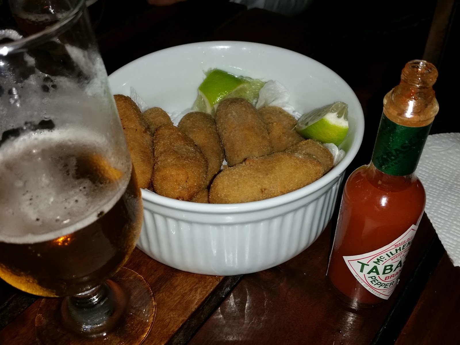 Como não era alta temporada na cidade, conseguimos um lugar com facilidade. Minha mãe, irmã e sobrinha foram num mês de junho e não conseguiram sentar (apesar dos vários andares). Pedimos croquete, suco e cerveja da casa.