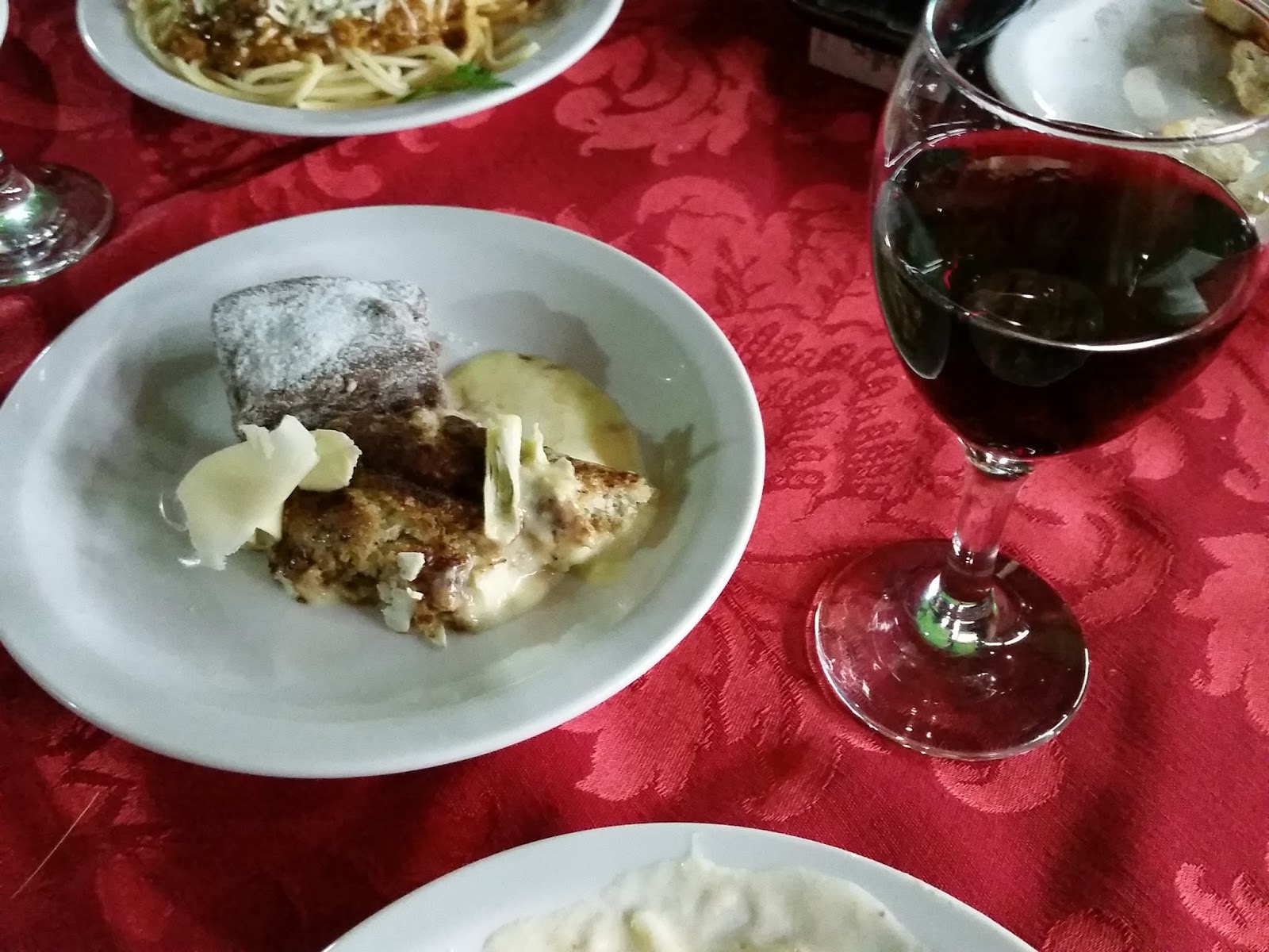 Novamente segui minha mãe e irmã nas compras no comércio, dessa vez nas inúmeras barraquinhas dentro do Parque Capivari, mas a chuva apertou e preferimos voltar para o hotel. Naquela noite tinha uma festa italiana, com comidas típicas e vinho.