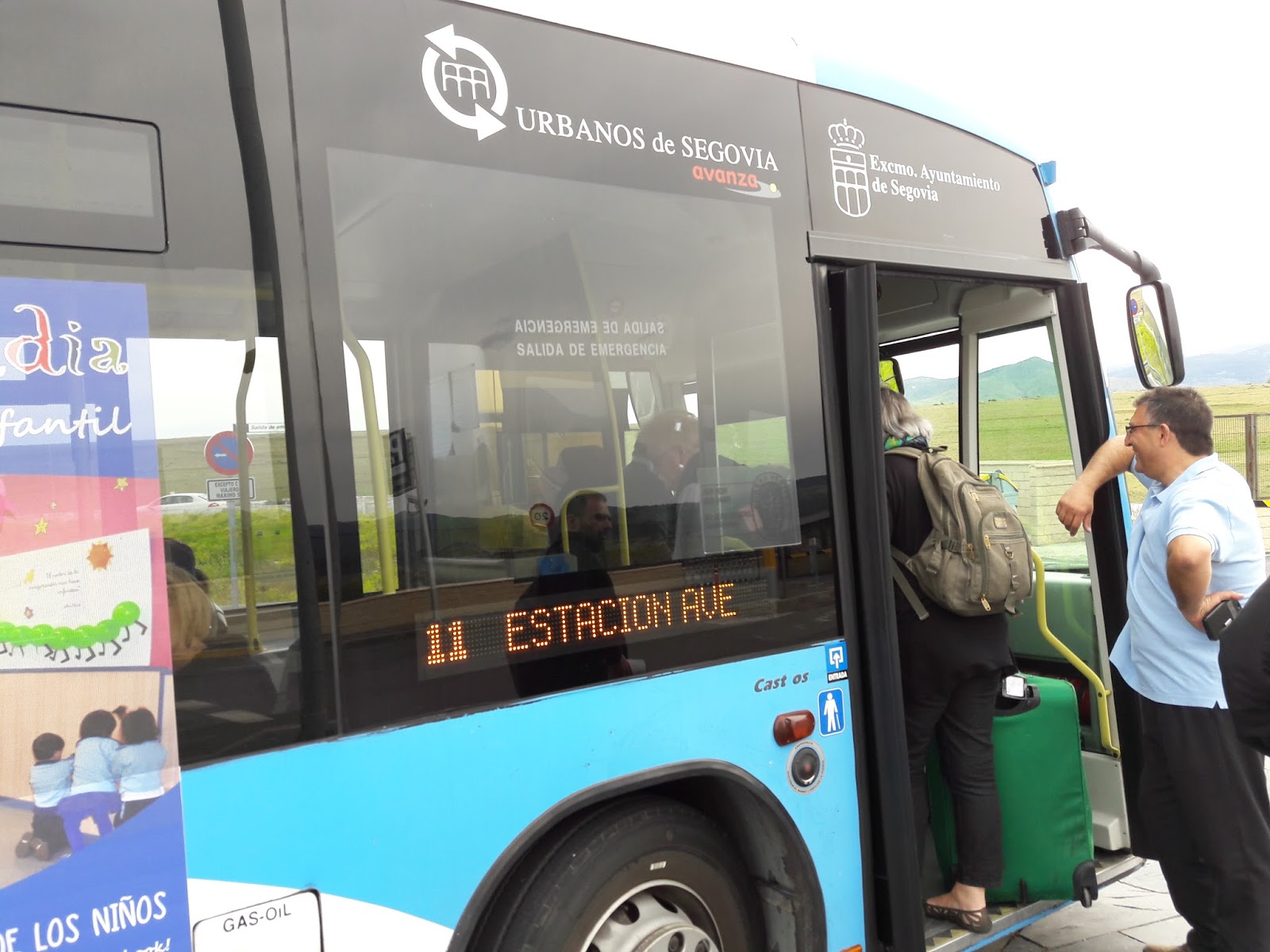 A Estação de Segóvia fica a 5 km de distância da cidade, portanto, foi necessário pegar o ônibus número 11. Bastou sair e já estava estacionado na porta da estação. Perguntei ao motorista o valor da passagem e disse 2 euros.
