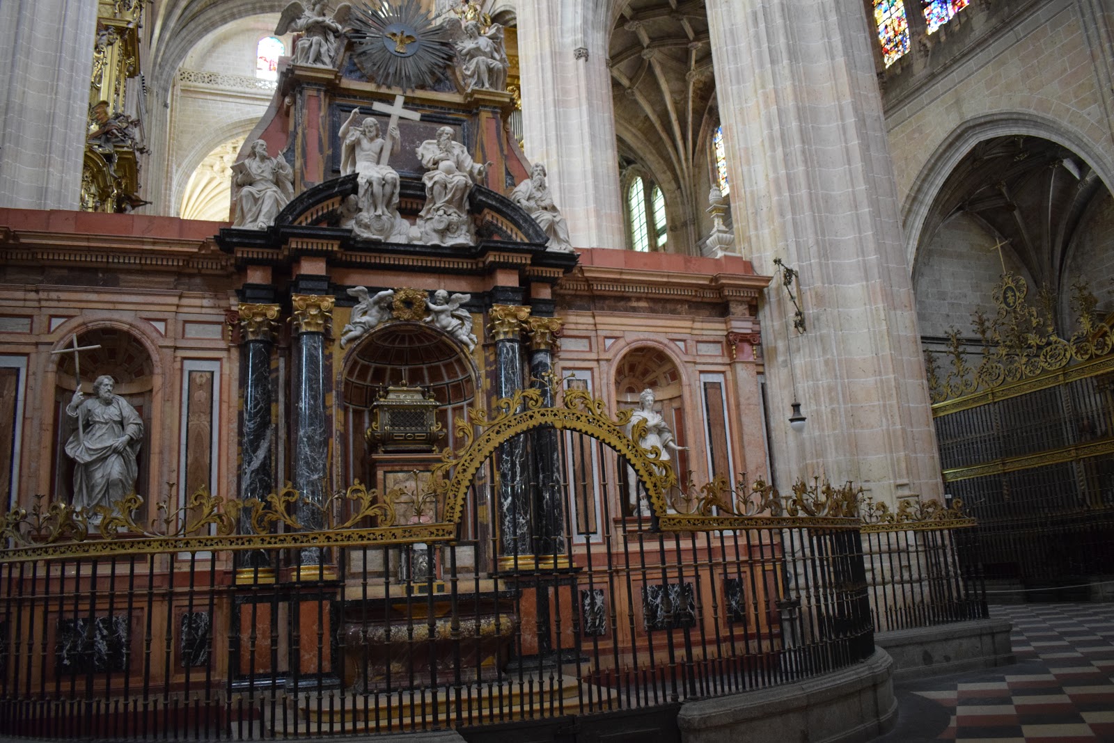 Chegamos no Mirador del Postigo e tiramos algumas fotos. Seguimos até a Plaza Mayor, Iglesia de San Miguel e entramos na Catedral de Segóvia, conhecida como “A dama das catedrais”, construída entre 1525-1577, depois da anterior ter sido totalmente destruída numa guerra em 1521. A fachada e torre totalizam 90 metros de altura.