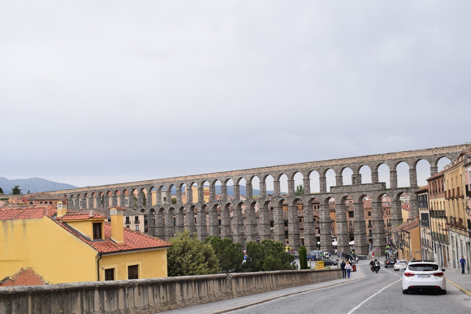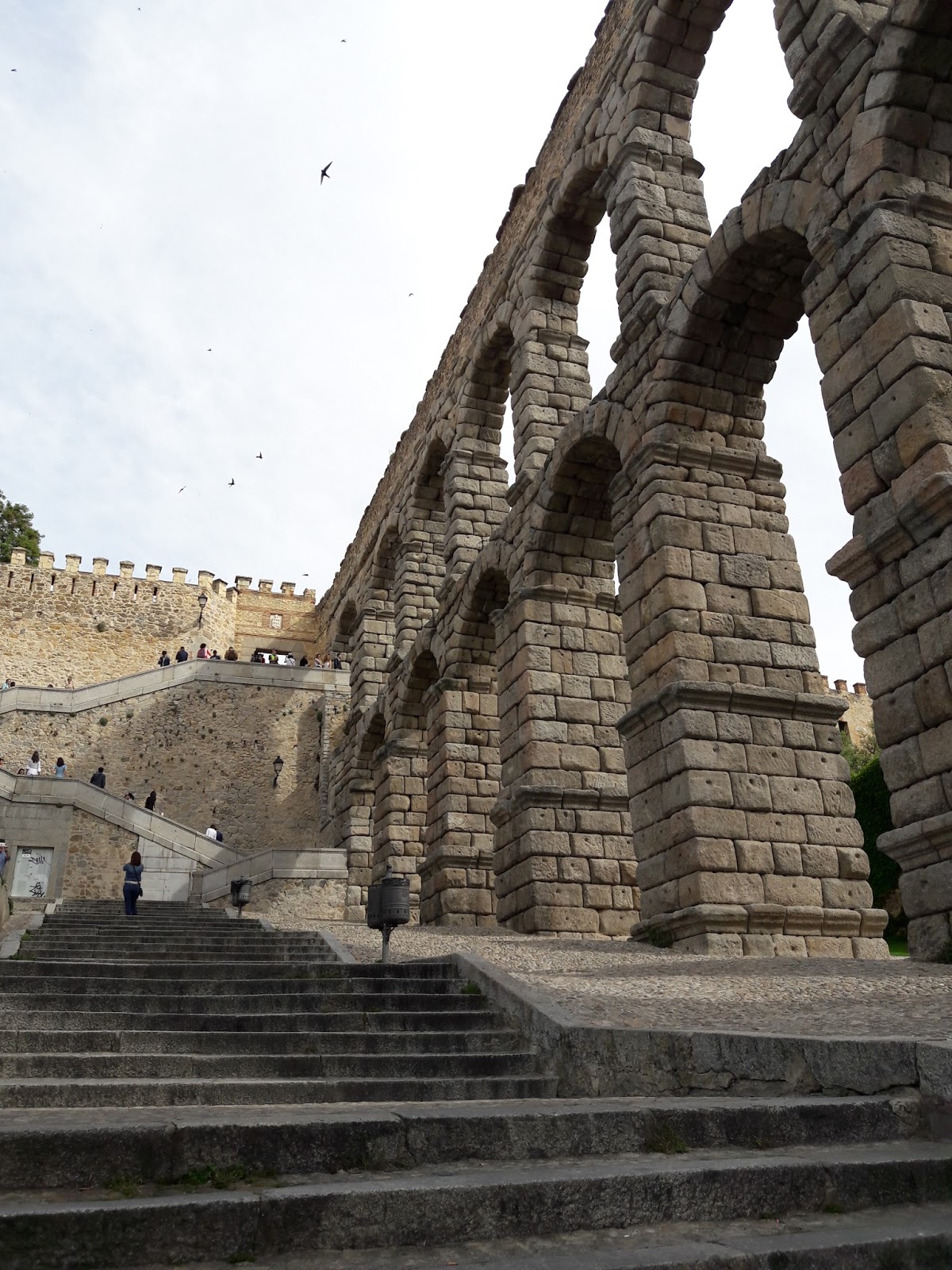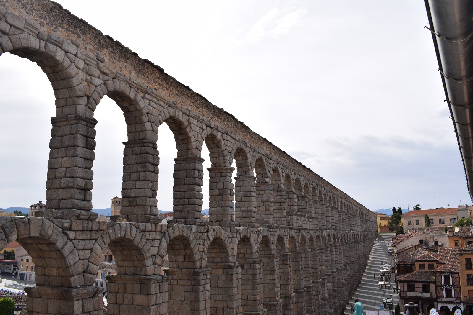 O grande monumento de Segóvia é o Aqueduto romano, sendo a obra romana mais importante na Espanha. A data de construção é desconhecida, mas acreditam que tenha sido construído no Século I ou II, ou seja, tem mais de 2.000 anos!!! São 818 metros de comprimento e mais de 170 arcos. A estrutura está totalmente preservada, pedra sobre pedra, sem cimento ou argamassa.