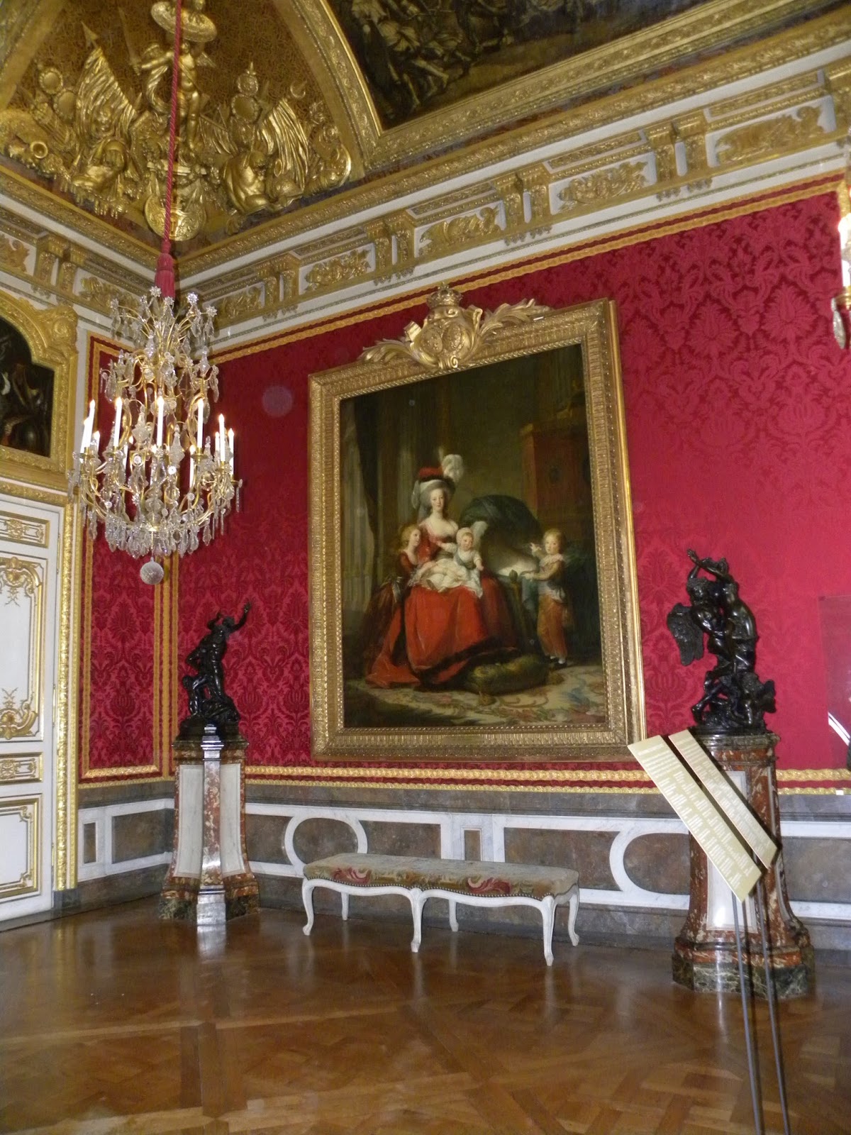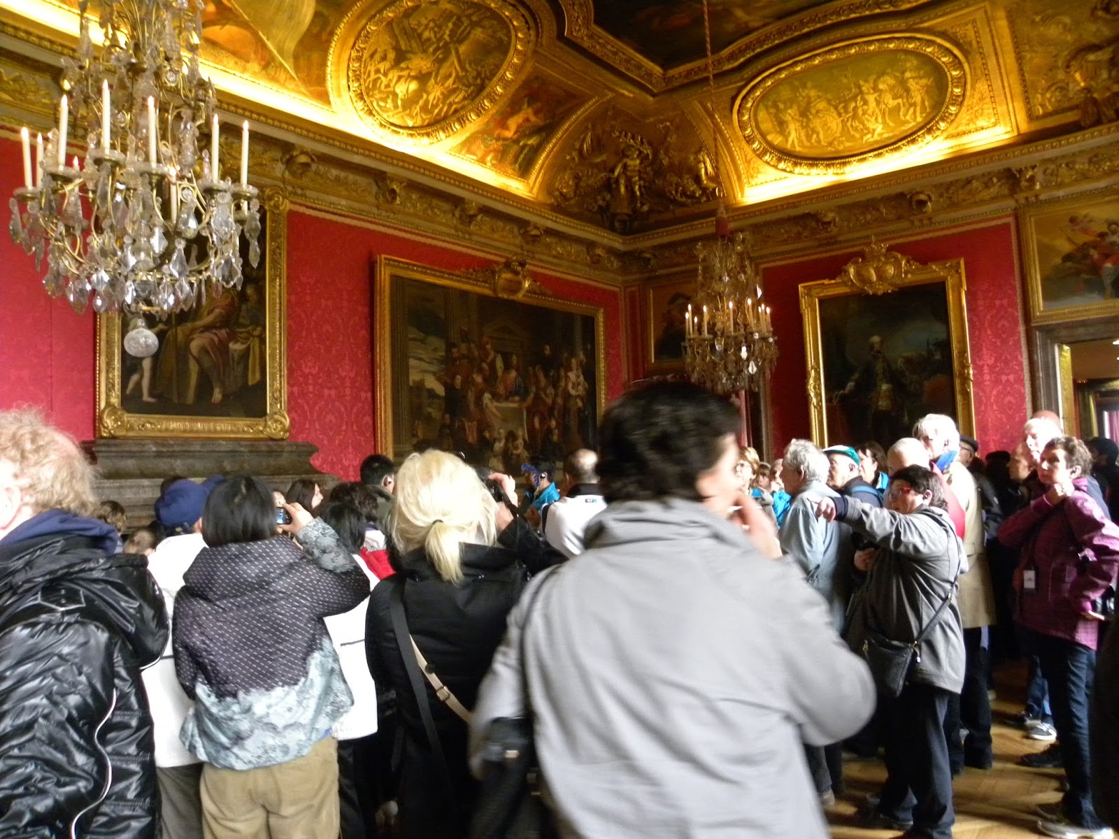 Comprei o ingresso que possibilitava a visita pelo palácio e jardins. No palácio encontrei uma multidão que caminhava em fila indiana e muitas vezes era impossível apreciar todos os detalhes de arquitetura e decoração de cada ambiente, principalmente o de Maria Antonieta.