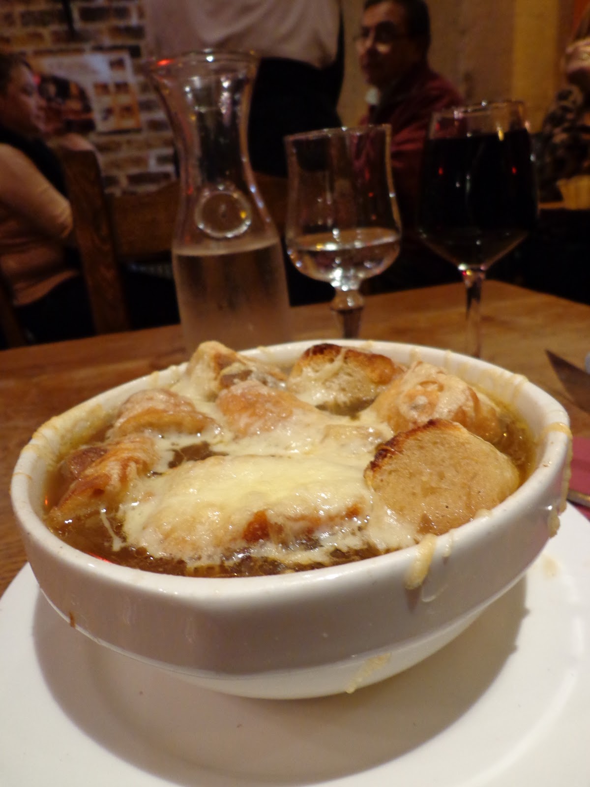 Naquele dia terminei num restaurante no Quartier Latin, mas não recordo o nome. Entrei e pedi um copo de vinho Bordeaux e a famosa “soupe d’oignon” (sopa de cebola) e de sobremesa fiquei com o clássico crème brûlée. Lembro que pensei em pedir escargot para experimentar, pois era barato em comparação com os outros pratos, mas não tive coragem.