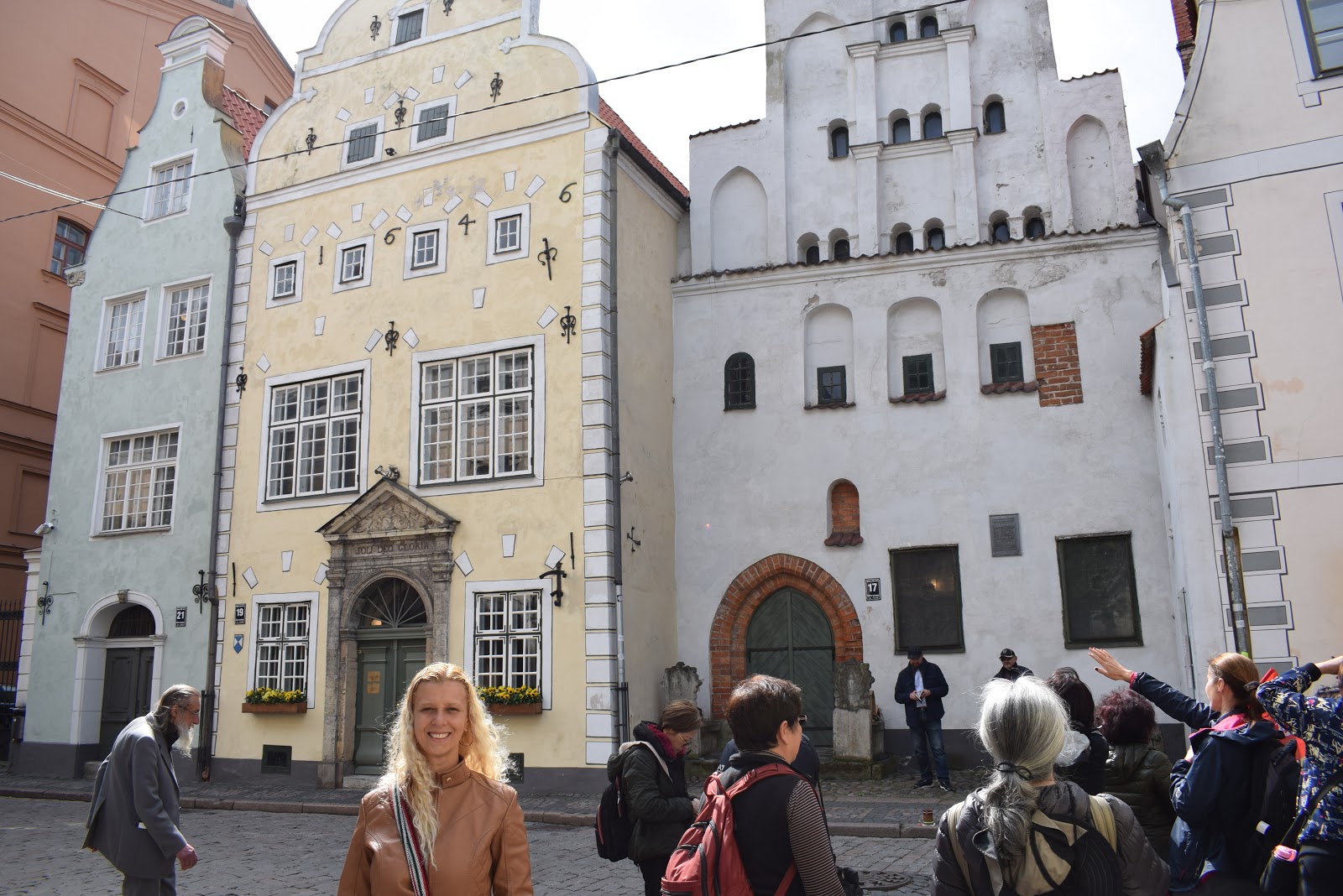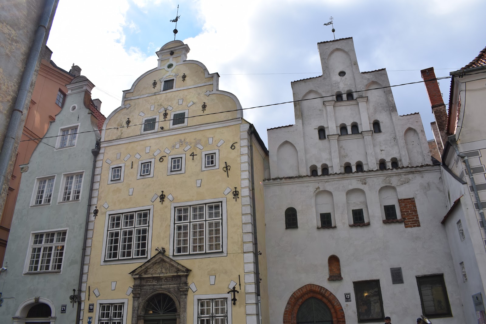 Tinha uma horda de turistas na frente dos prédios três irmãos (The three brothers), situados na rua Maza Pils números 17, 19 e 21. A mais antiga foi construída no século 15, a casa do meio foi edificada no século 16 no estilo maneirista holandês, por fim, uma casa barroca do século 17.