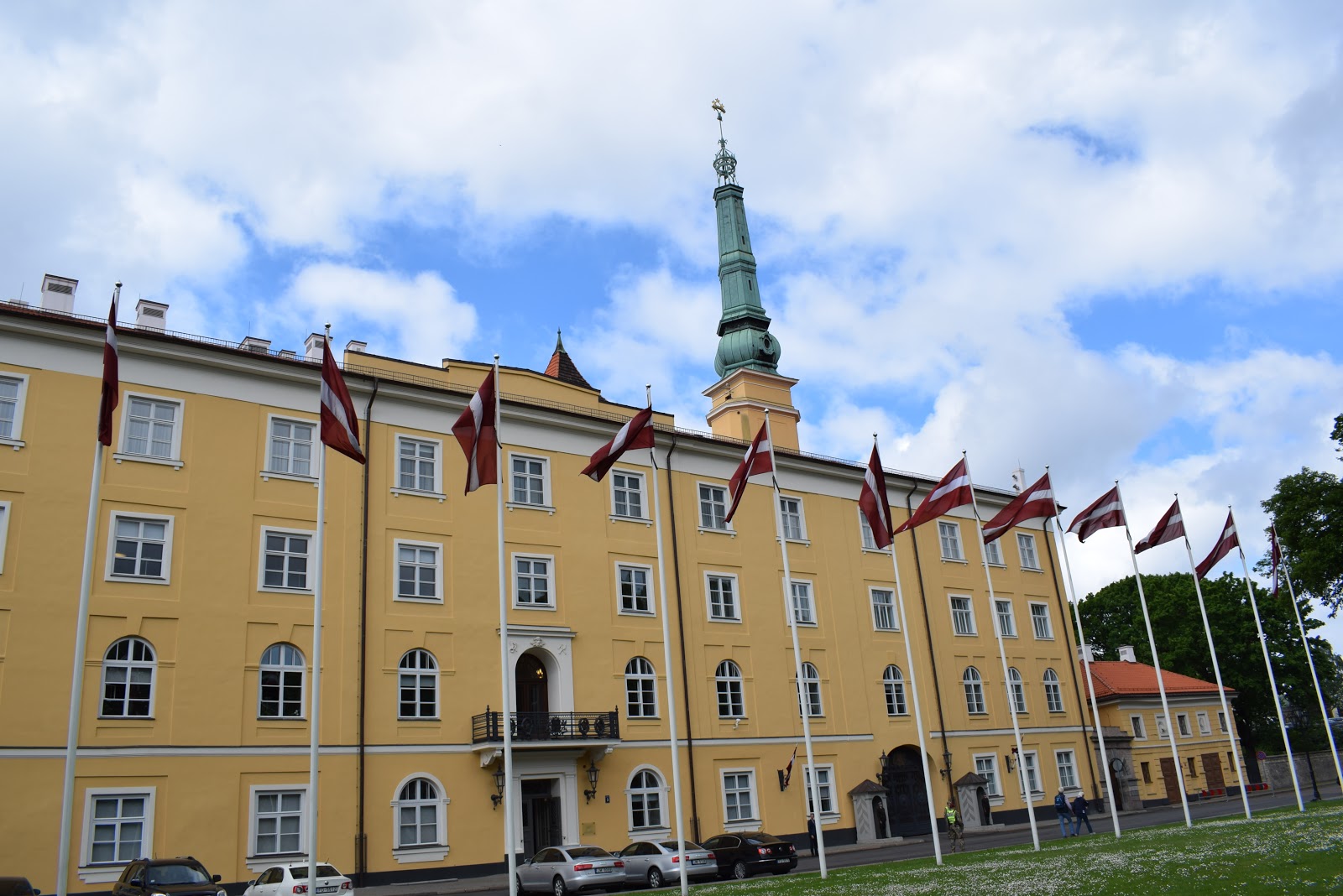 Passamos pela torre branca do Castelo de Riga, entrei em uma pequena igreja na proximidade e depois segui para ver o prédio do Parlamento.