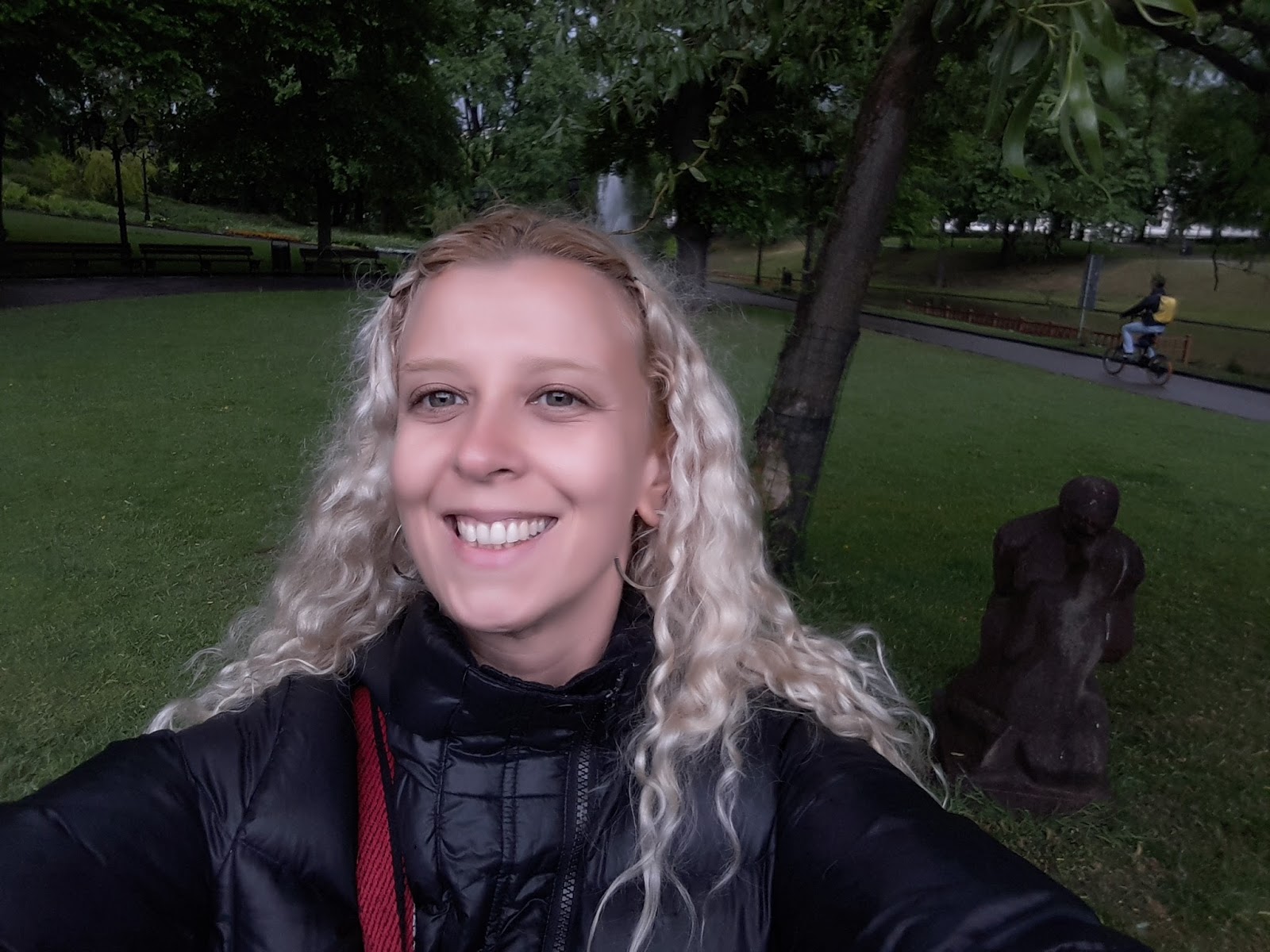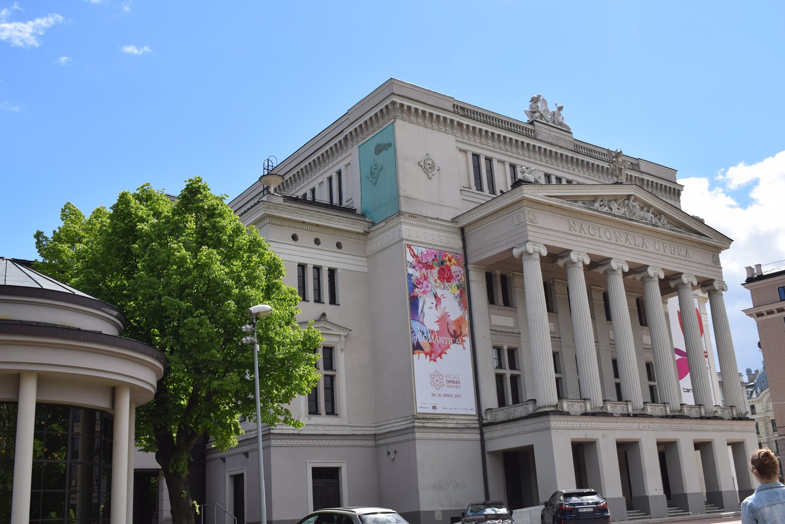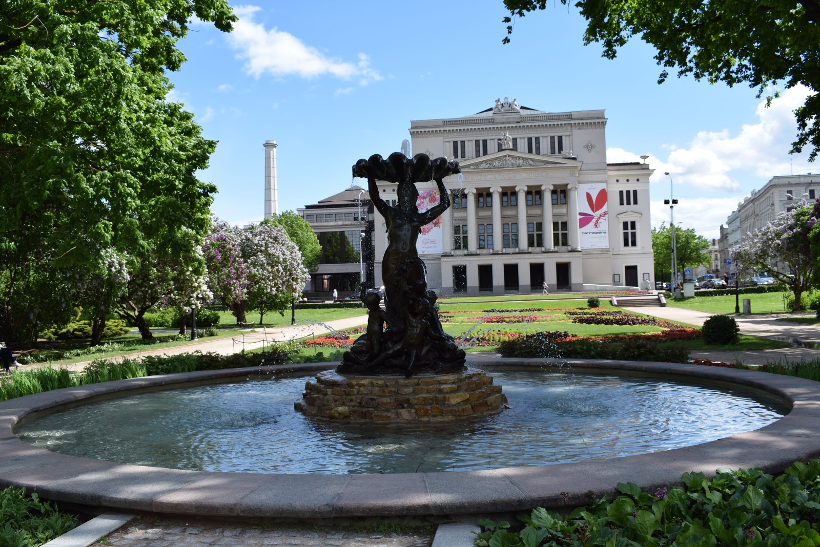 Saímos do mercado e decidimos passar o tempo no Kronvalda Parks. Descobrimos que tinha wi-fi grátis na frente do prédio Latvian National Opera. Sentamos no banquinho da praça e aproveitamos o sol.