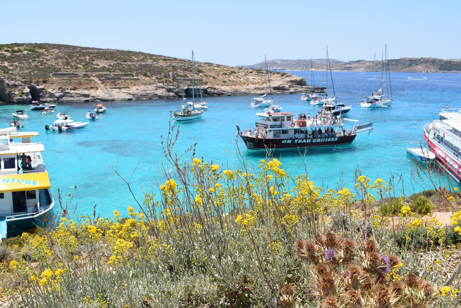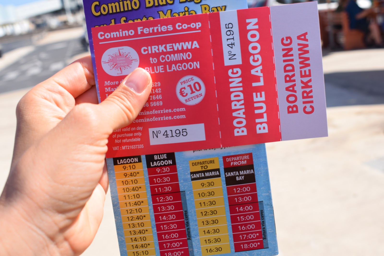 Exatamente às 10 horas chegamos no ponto final e nos deparamos com uma placa que indicava onde encontraríamos o escritório dos “ferries” para Comino. Compramos o ticket de ida e volta por 10 euros, que saia a cada 1 hora e fazia o percurso inverso a cada 30 minutos.