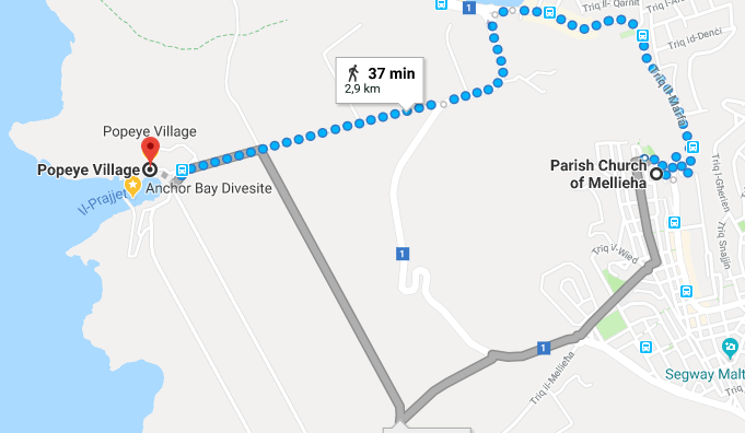 O google maps mostrou que teríamos que pegar dois ônibus para chegar no local. Pegamos o 41 até o centro de Mellieha e ficamos esperando por mais de 1 hora pelo ônibus 101, o único que deixa no local, mas o transporte não apareceu. Vários brasileiros passaram pelo ponto e decidiram ir a pé. Fomos informados que os ônibus não passariam ali naquele dia, pois o Primeiro Ministro Joseph Muscat, do partido dos trabalhadores, tinha vencido as eleições.