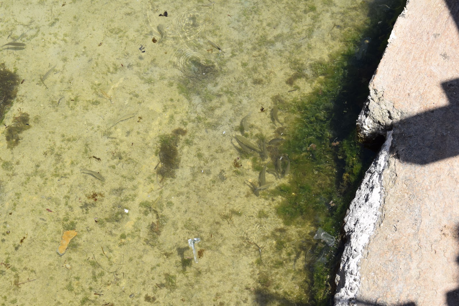 | A água tinha bastante lixo, mas também tinha peixes. |