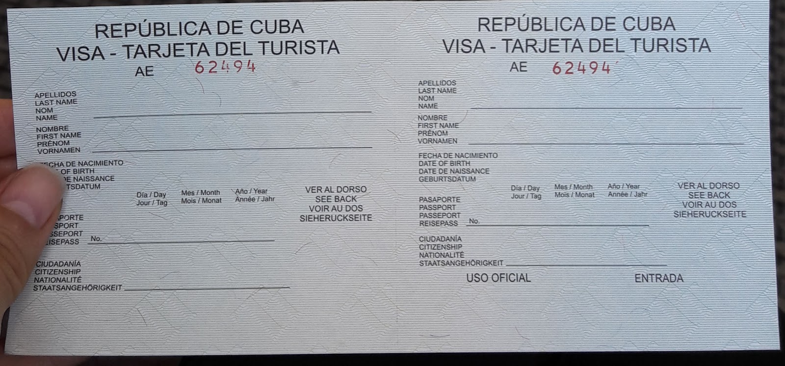 O visto é um papel denominado “Tarjeta del Turista”, que vem numerado, deve ser preenchido e entregue no controle de imigração em Havana. Os dados que devem ser preenchidos são: sobrenome, nome, data de nascimento, número do passaporte e nacionalidade.
