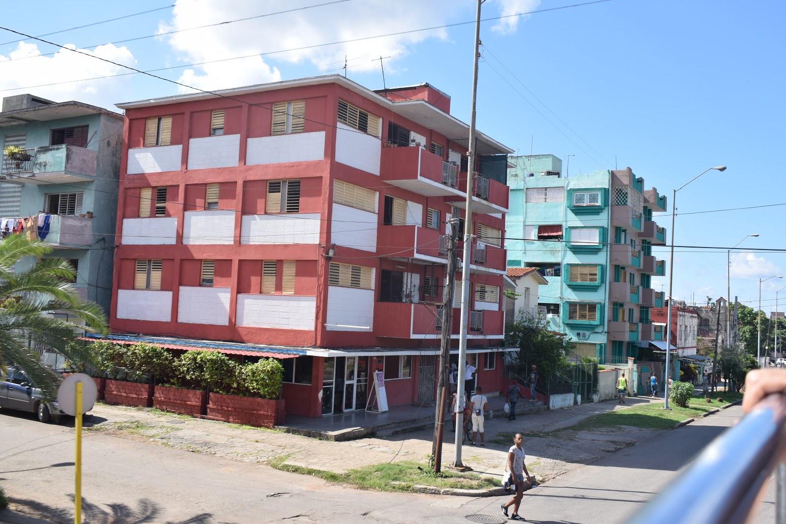 Em seguida, caminhamos até o ponto do ônibus, que demorou uns 15 minutos. E ninguém respeitou a fila. O retorno é realizado basicamente pelo mesmo caminho, quando é possível conhecer, mesmo que superficialmente, o bairro de Vedado, que tem mansões, cinema e muitas pessoas circulando.