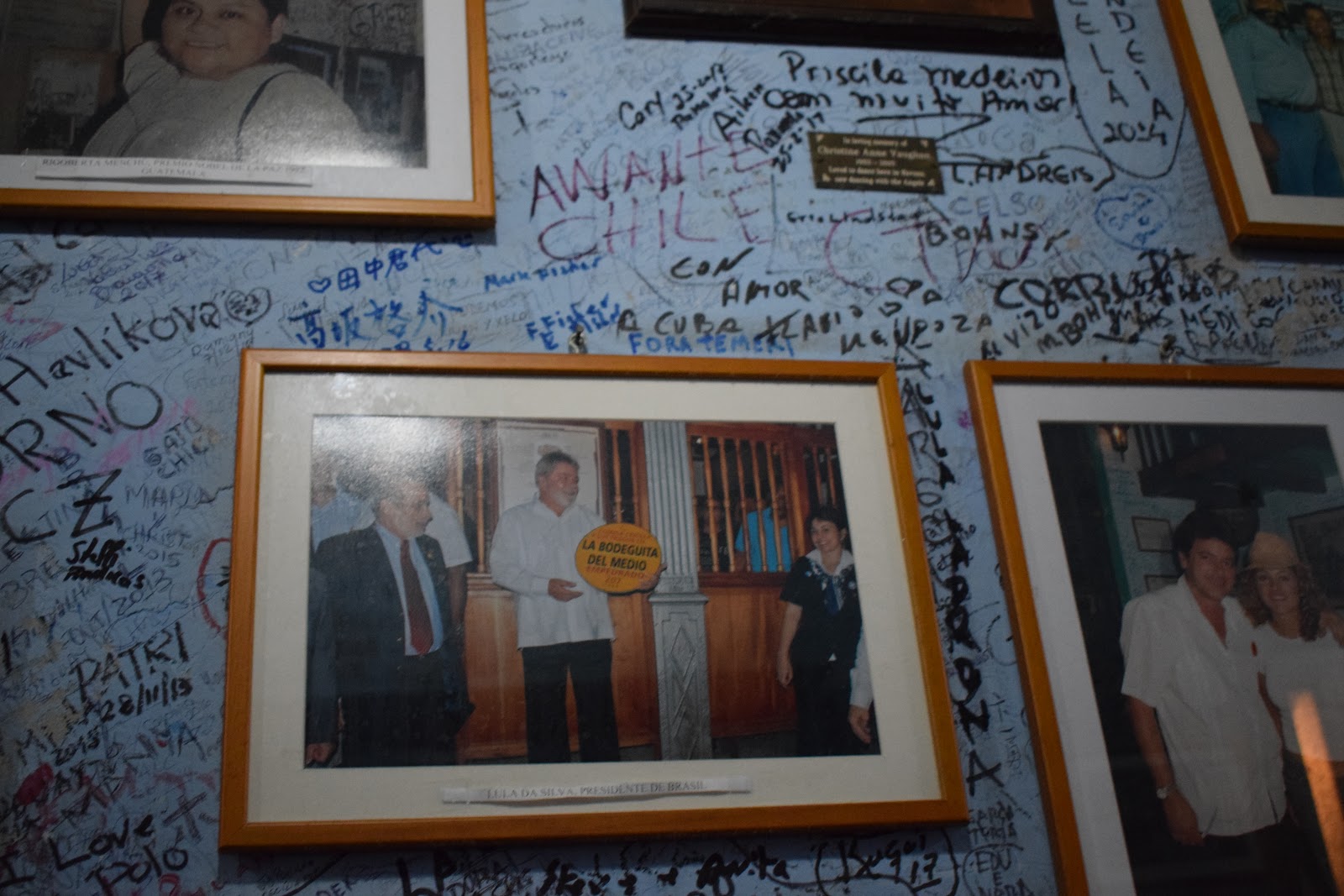 No retorno, finalmente conhecemos um dos símbolos de Havana: La bodeguita del Medio. O restaurante ficou famoso em razão do seu mojito, bebida feita com rum, água com gás, hortelã e açúcar. Ernest Hemingway eternizou o lugar com sua frase “my mojito in la bodeguita del medio. My daiquiri in el floridita.” O papel foi emoldurado e fica exposto no primeiro andar do estabelecimento. No local já estiveram Pablo Neruda, Salvador Allende, entre outros.