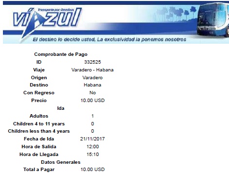 Enquanto planejava a viagem, deixei para adquirir a passagem Havana-Varadero no site da Viazul, que é a única companhia de transporte rodoviário para turistas. Meu amigo estava sem o cartão internacional, logo, esperamos mais uma semana, contudo, só encontramos passagem de volta (custa 10 CUC), tendo em vista que a ida no horário noturno não nos interessava. Mandamos e-mail para a empresa, que respondeu rapidamente, dizendo para comprarmos na rodoviária com alguns dias de antecedência – só disponibilizavam um pequeno percentual online.