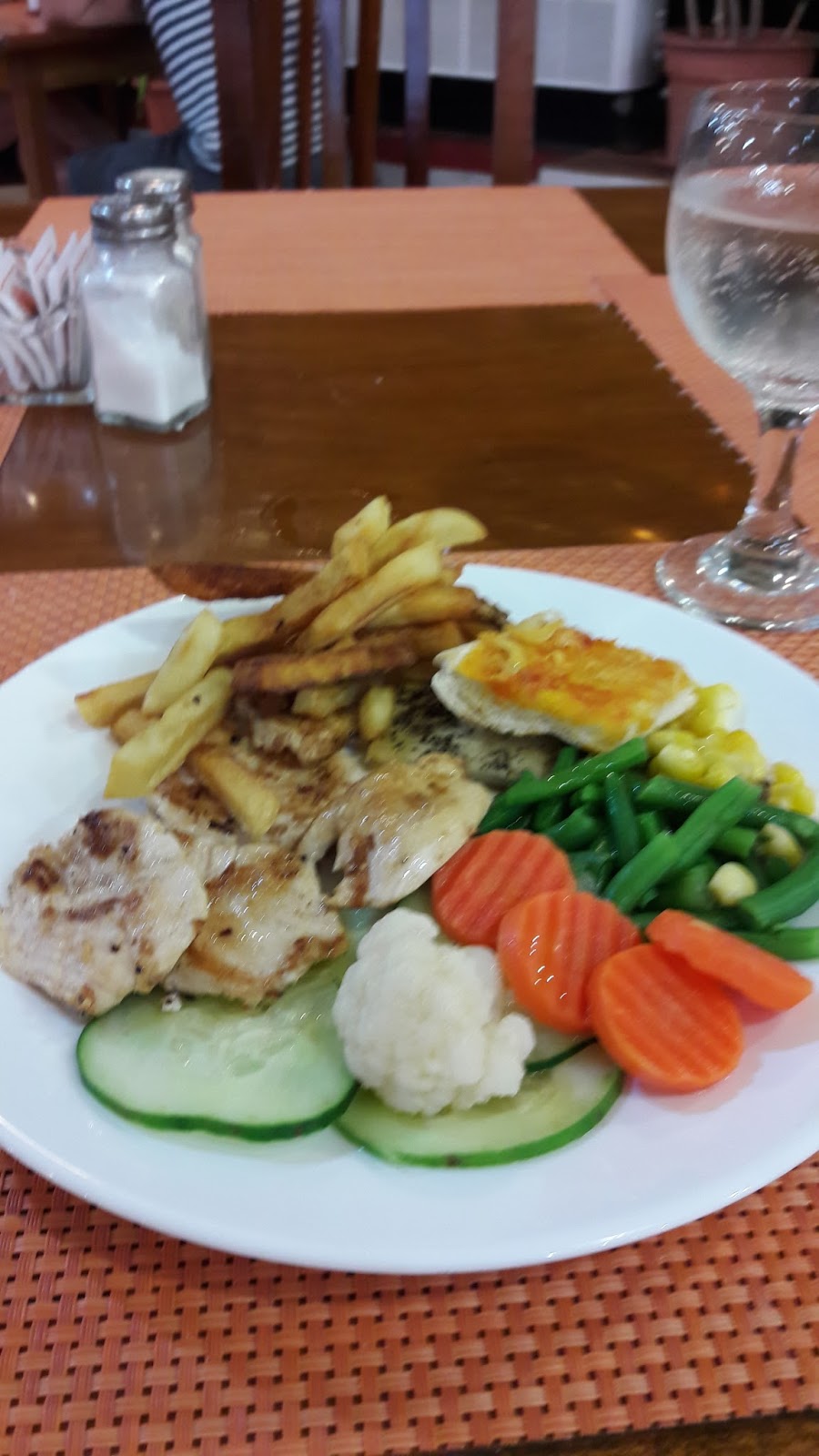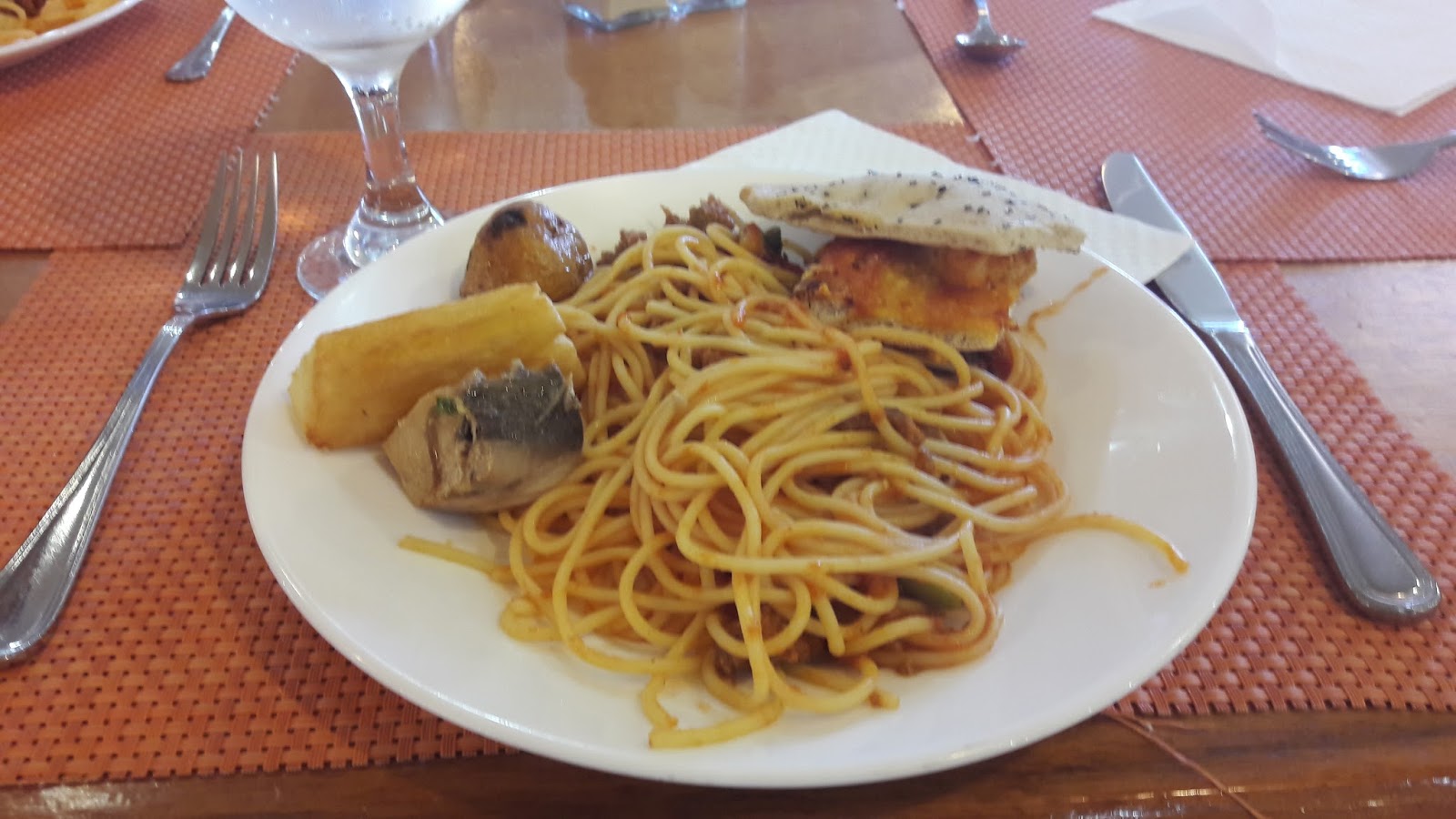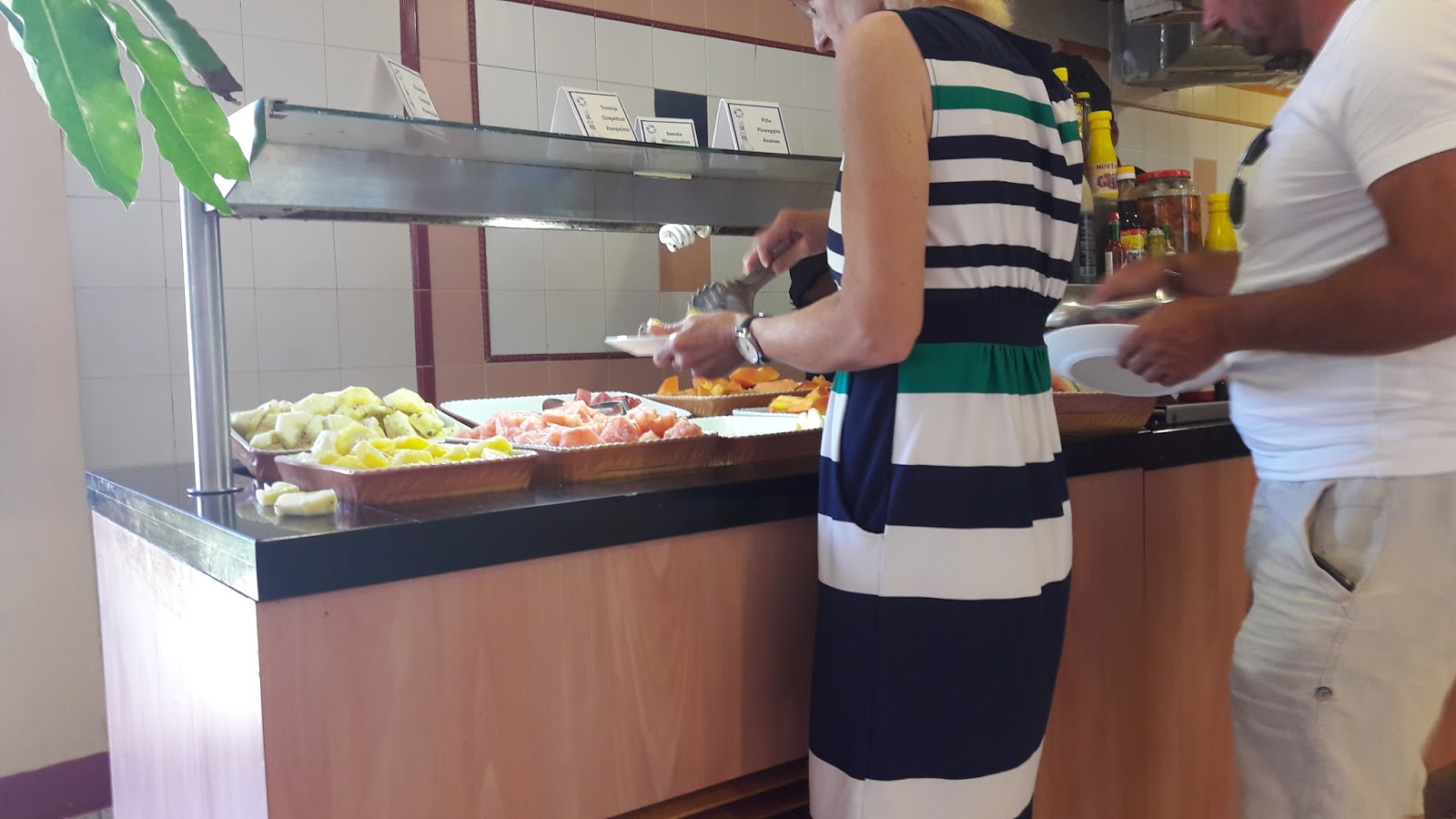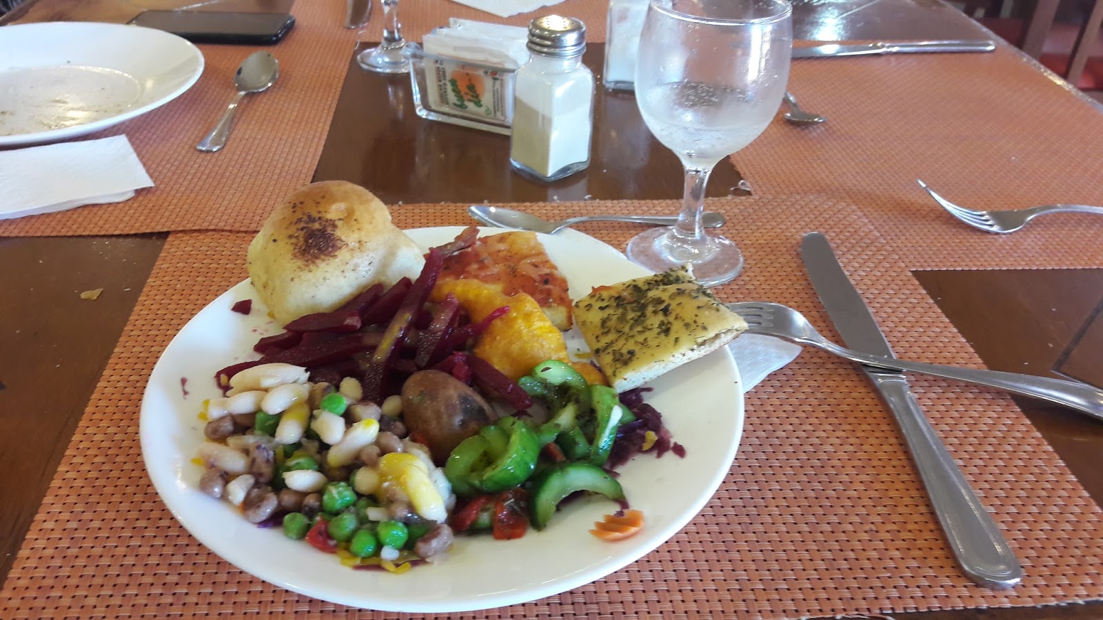 Estava apreensiva com a comida servida, mas almoçamos no restaurante principal (Las Dalias) e não tenho do que reclamar. Embora a comida não seja tão saborosa, tinha um leque com muitas opções. Diversas ilhas de comidas. Optei pelos alimentos feitos na hora. Tinha a opção de peixe, frango, porco, que era colocado na chapa na hora. Além de massa feita na hora. Muitos vegetais, sobremesas, pães, queijos, pizzas, sorvetes. Máquina de refrigerante local. Máquina de cappuccino. Os garçons eram muito simpáticos e o ambiente estava sempre limpo.