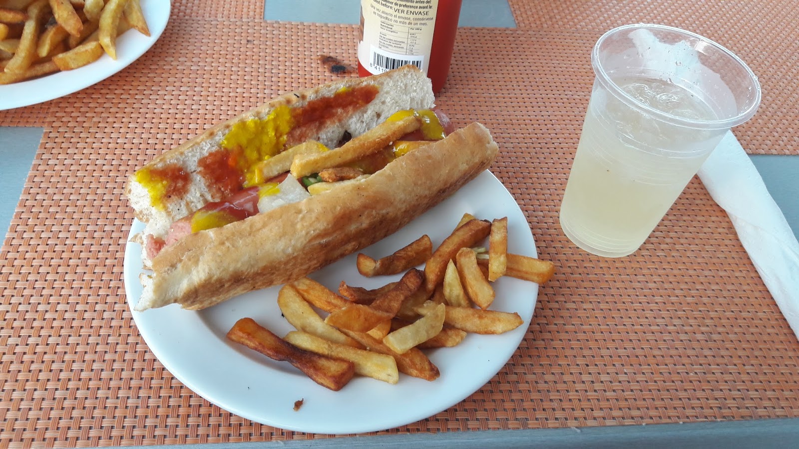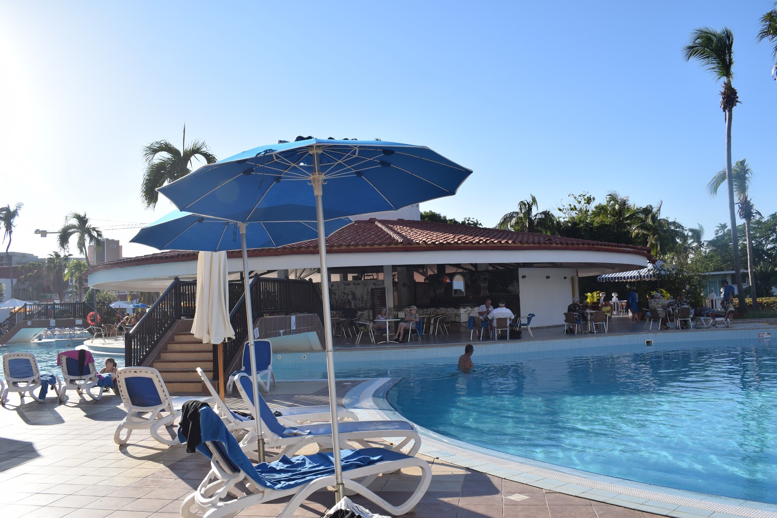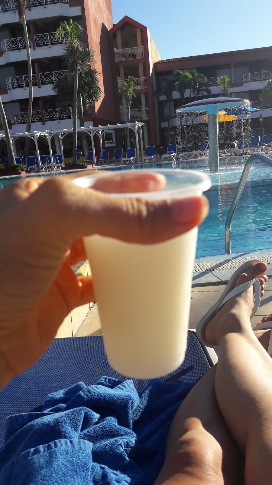 Ao deixar a praia, ficamos na área da piscina, eu bebi piña colada, mojito, enquanto meu amigo permaneceu fiel ao chopp. Aproveite a proximidade com a lanchonete e peguei um hot dog com batatas fritas.